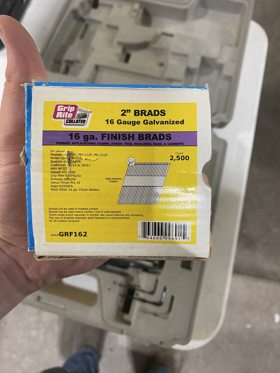 I’m selling my 16 gauge Finish Nail gun! It’s been a great gun just got too many so some have to go. It worked good, has 2 busted screws that are an easy fix and needs new gaskets. It comes with a case and a 3/4 full box of 2” brads!