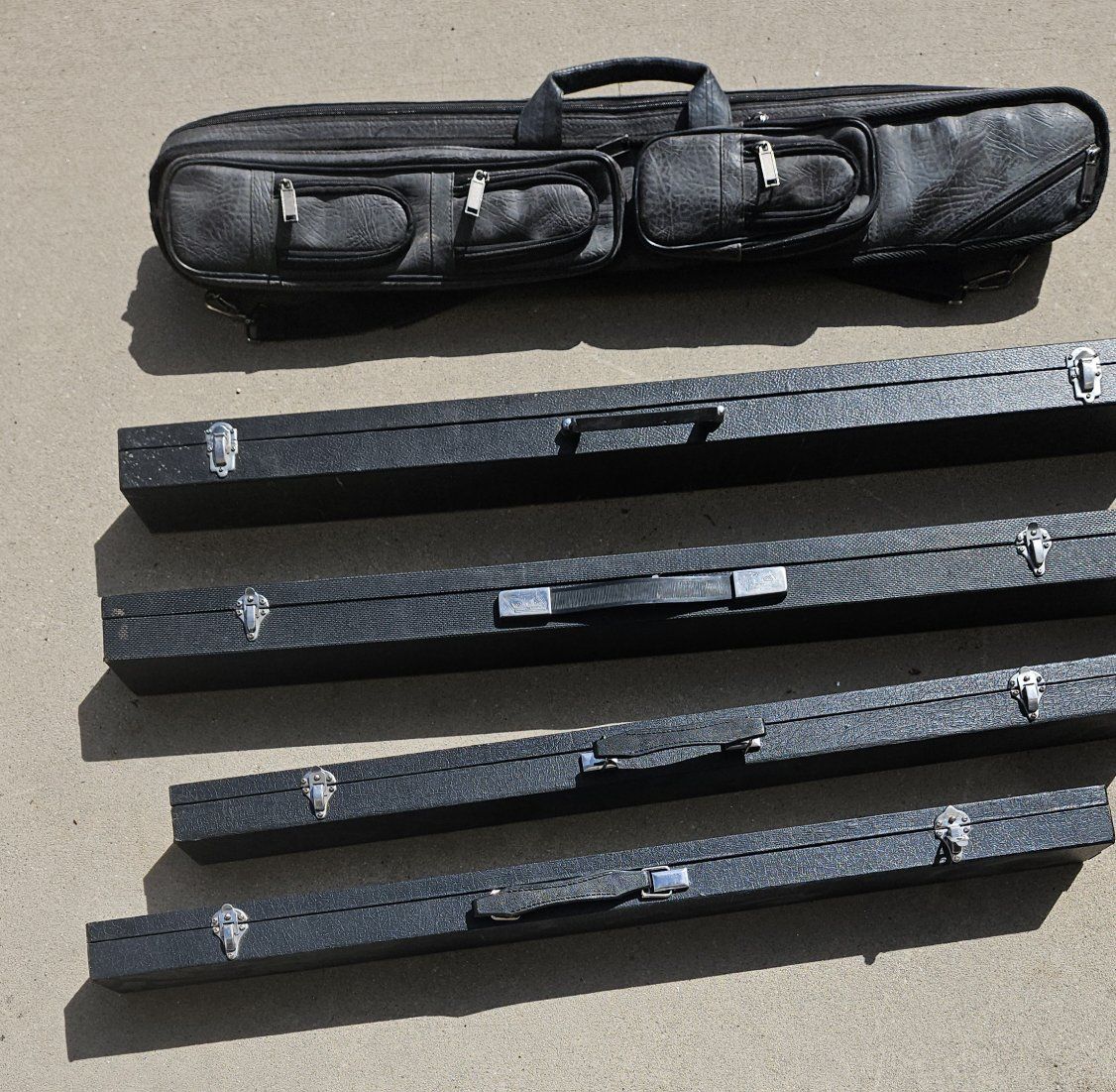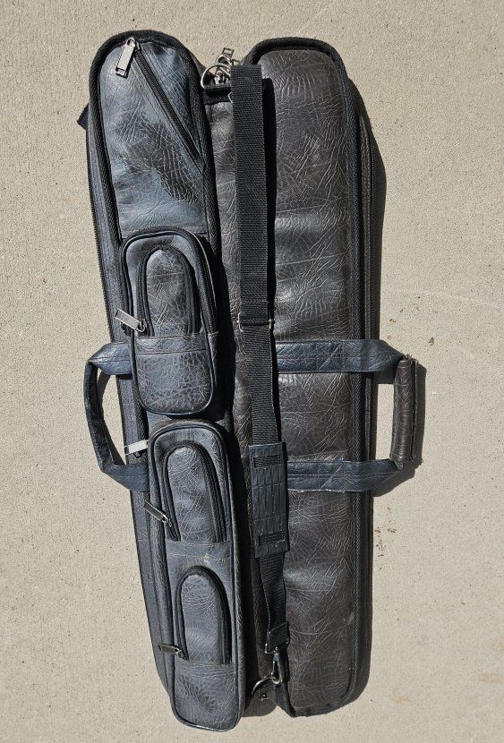 VenmoHolds 2 cues, 2 piece cues and 10 more compartments for billiards items. Black naugahide, handles. Good shape. Ogden area.