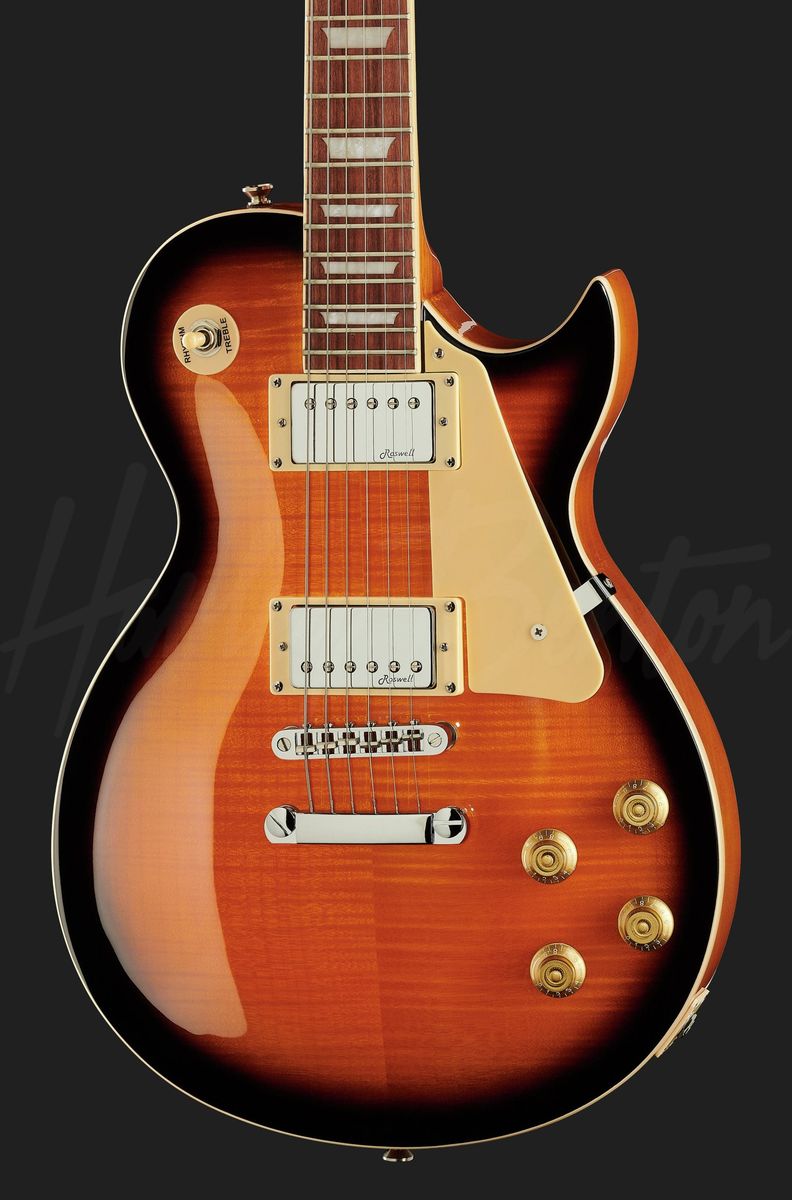 VenmoGreat Les Paul-style guitar featuring a vintage burst arched flamed maple top, okoume body, Roswell LAF Alnico-5 humbuckers, and push/pull volume knobs for coil split.