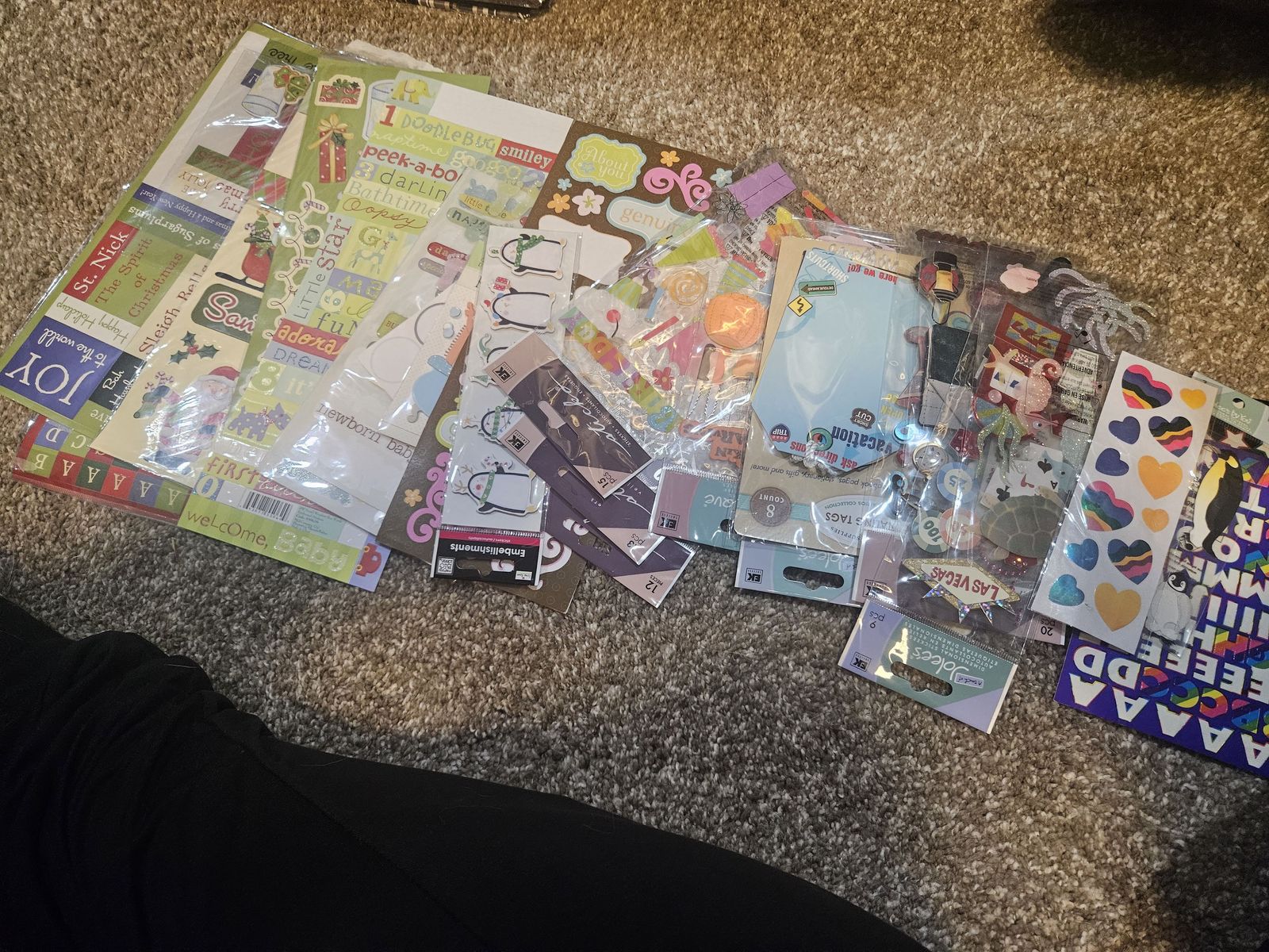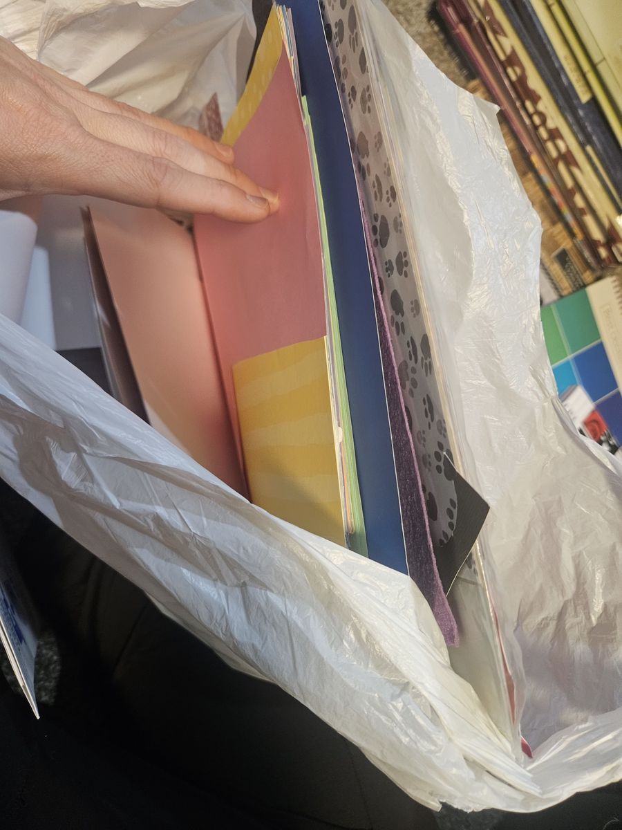 VenmoRoller tote bag, stacks of stickers, 8 books of different papers, stack of letters/ numbers papers, 5 scrapbook album. Selling all together.