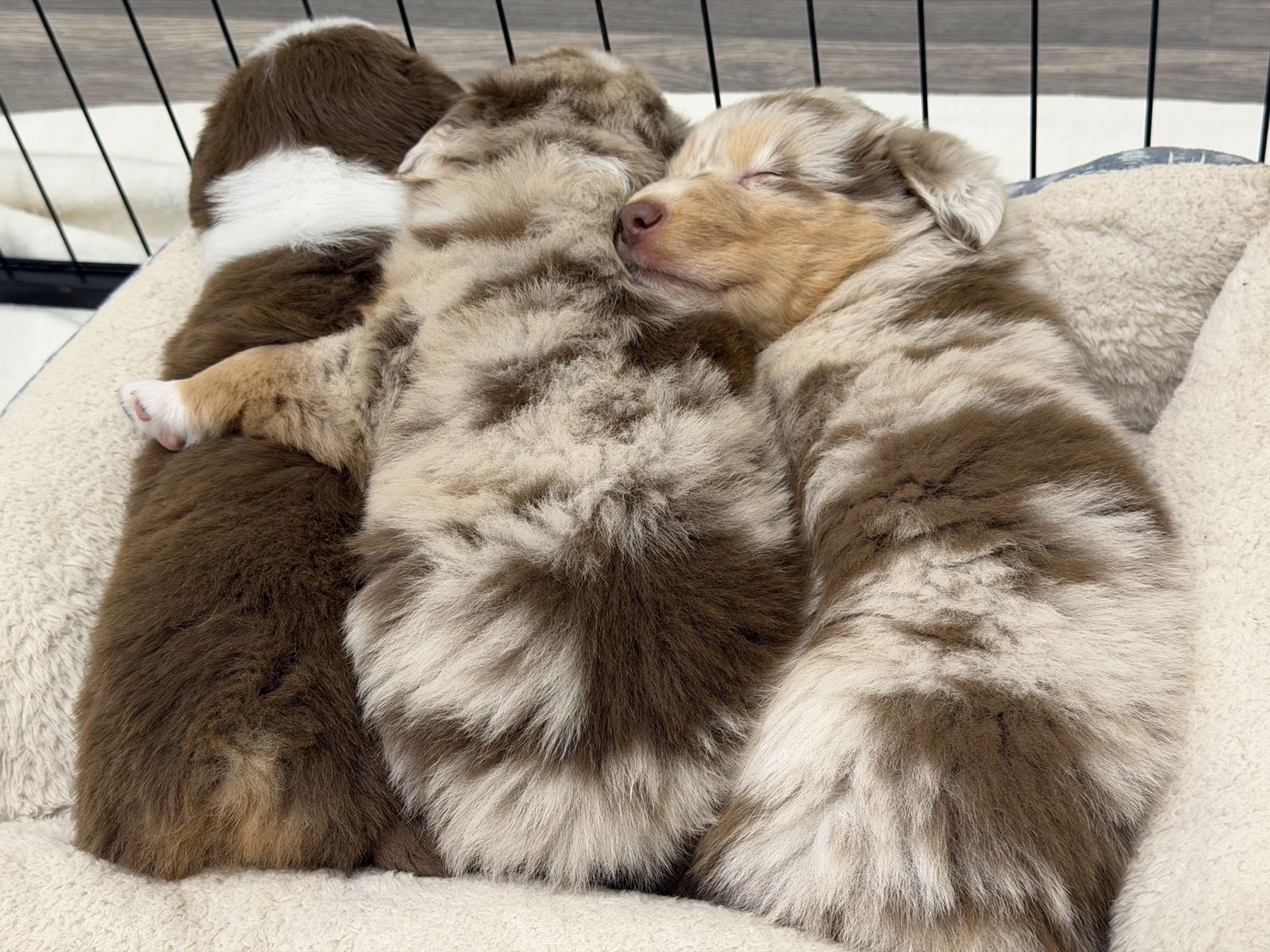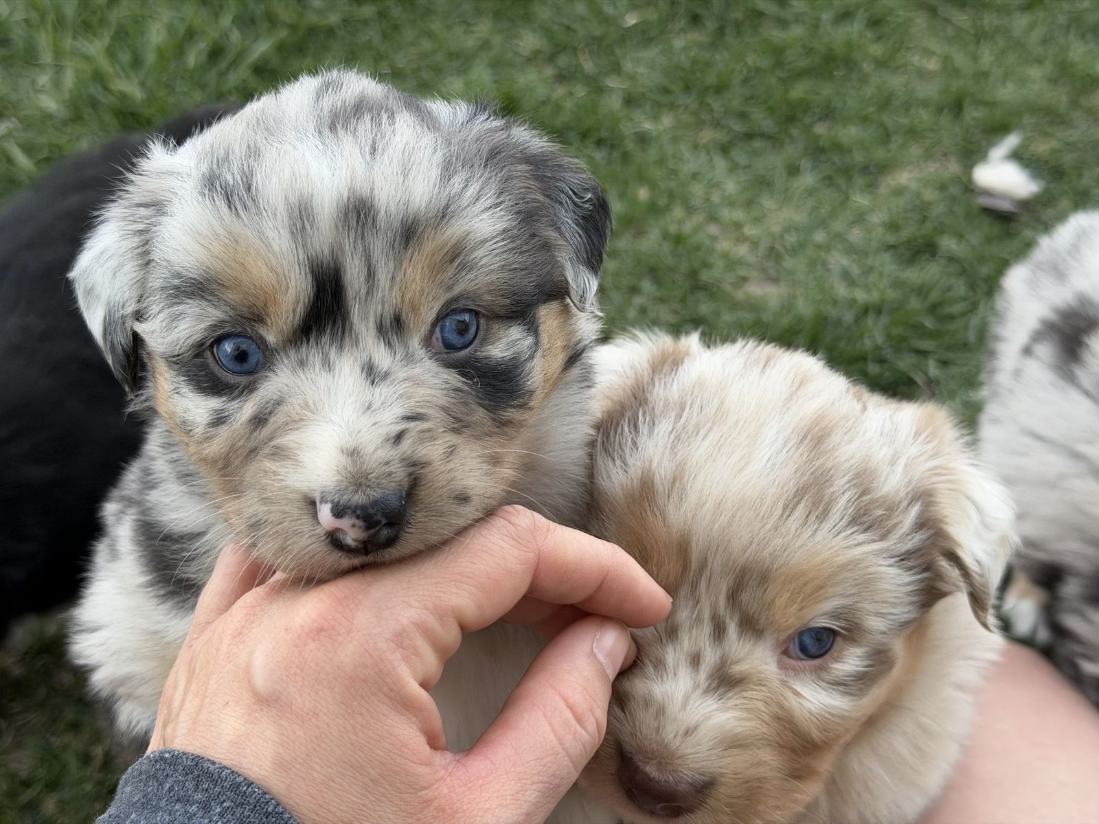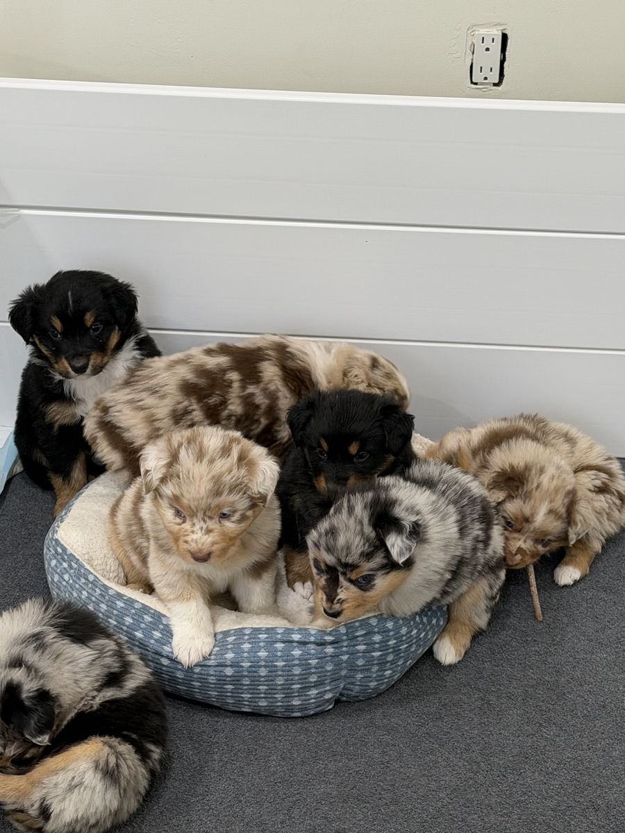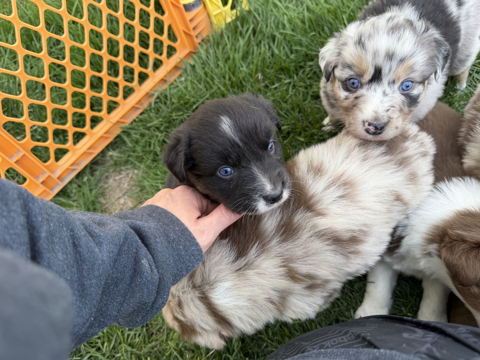 VenmoAKC Australian Shepherd puppies available! Born March 12 and ready to go home May 7 (3 males, 6 females). Raised in our home using Puppy Culture methods with daily handling, these pups are well-socialized, confident, and affectionate—great for active families or companions. Parents are AKC registered, health tested, and have excellent temperaments. Puppies come with first vaccinations, deworming, a 1-year health guarantee, 30 days of free health insurance, and a starter pack. Tricolor $1,200, Merle $1,800. $200 non-refundable deposit to reserve. Pickup starting May 7, transport options available at buyer’s expense.