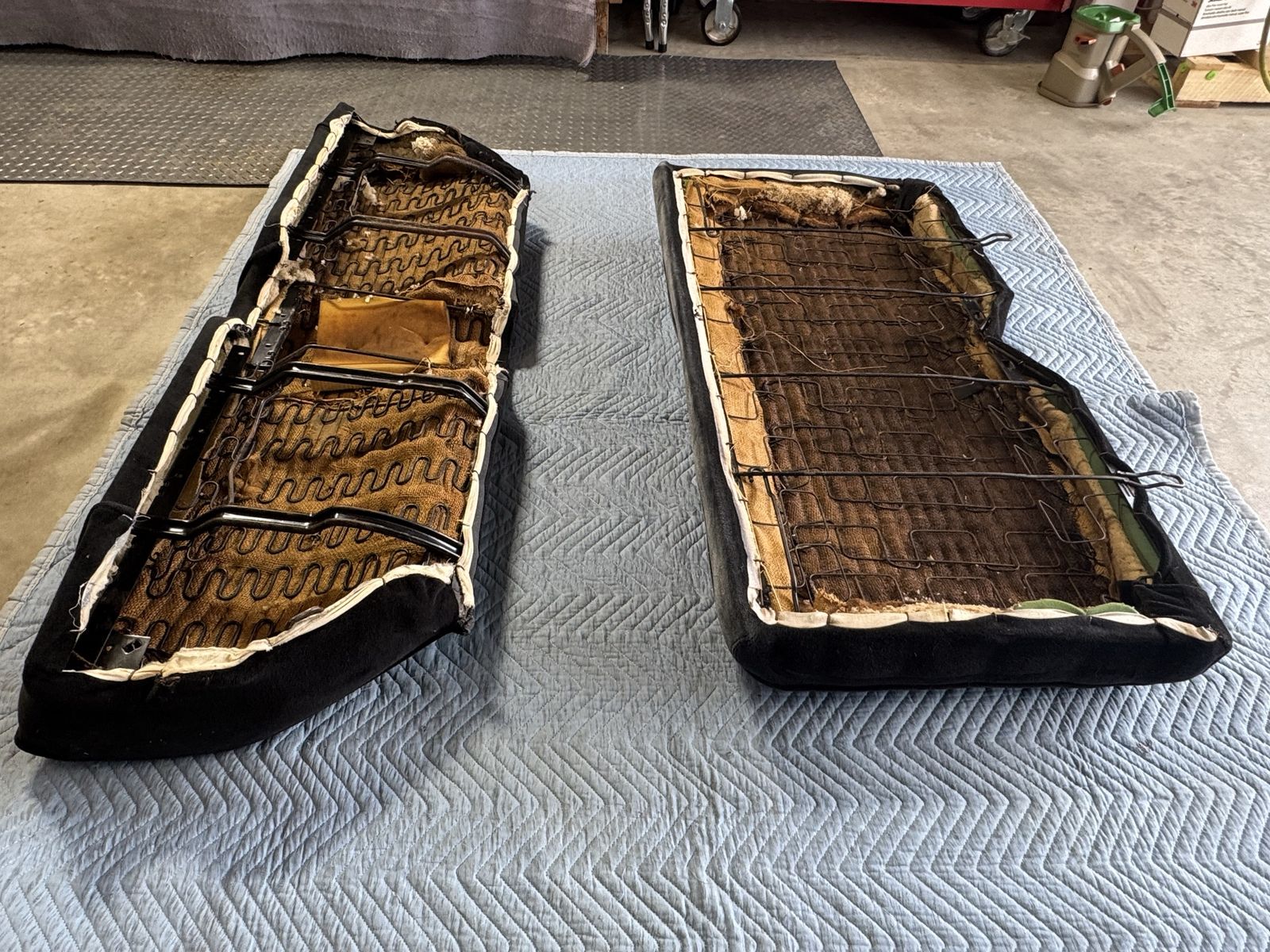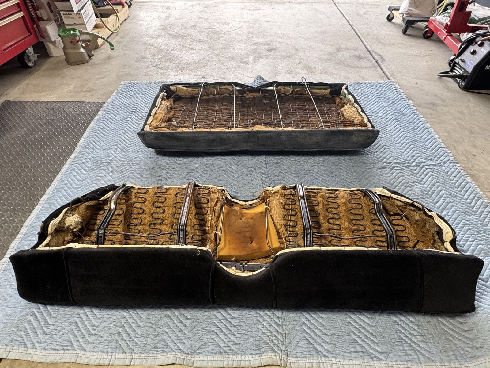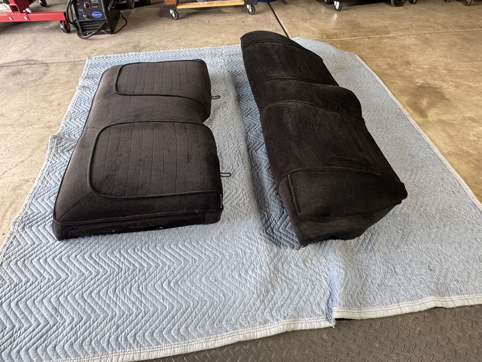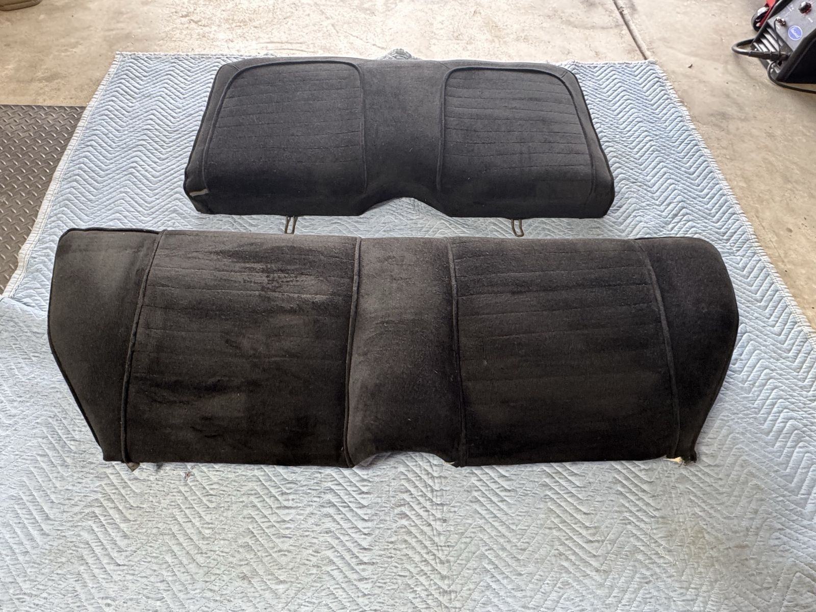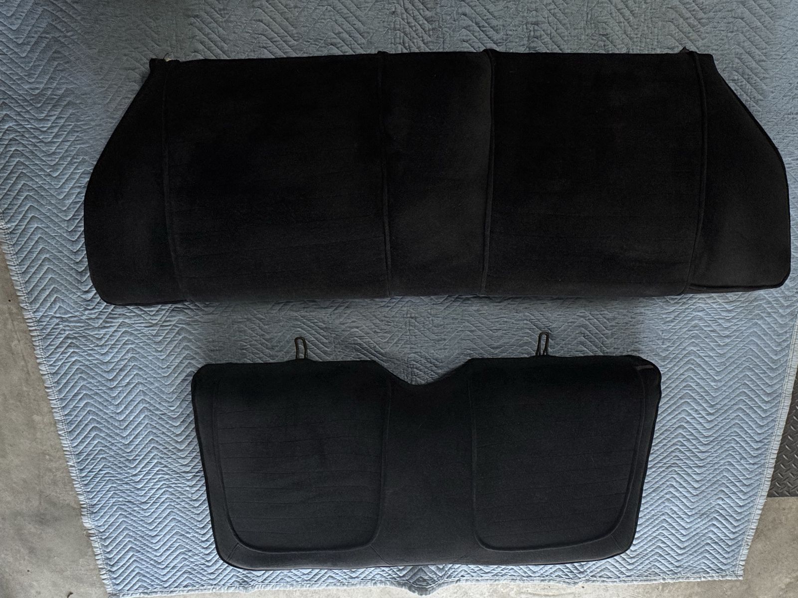 Excellent condition, ready to install. This rear seat set will fit 64-66 mustang coupes. It is a black velour material.