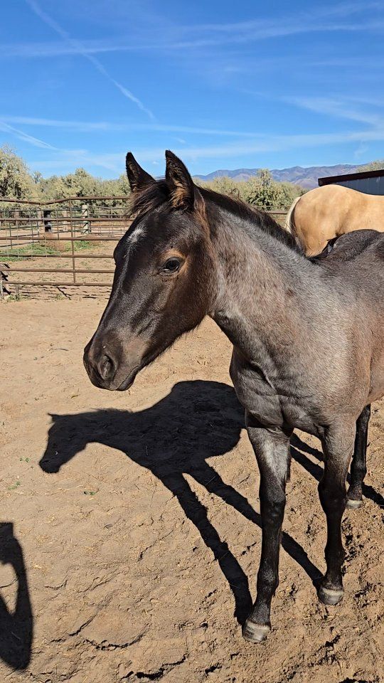 VenmoJune 2025 blue roan colt. AQHA registered. Super friendly, easy to catch in a 50 acre pasture, going to be 15+ HH and stout. This guy could take you places in the future! Think he would make a great Cow Horse, he's wanted to track the donkey since they were turned out together at 2 months. LOL. Sire is a money earner, dam is as mellow as they come. Come see him, you won't be disappointed!
