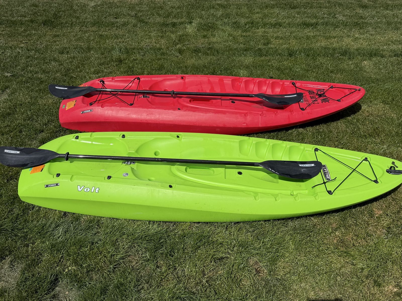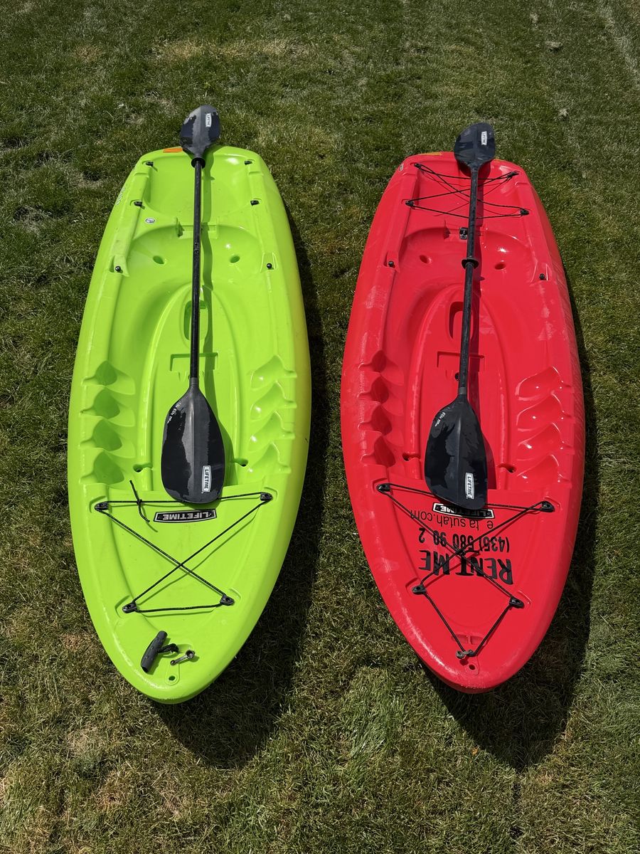 VenmoSelling two Lifetime kayaks in great condition. Each kayak has a 225 lb weight capacity, making them perfect for casual paddling, lakes, and calm rivers.