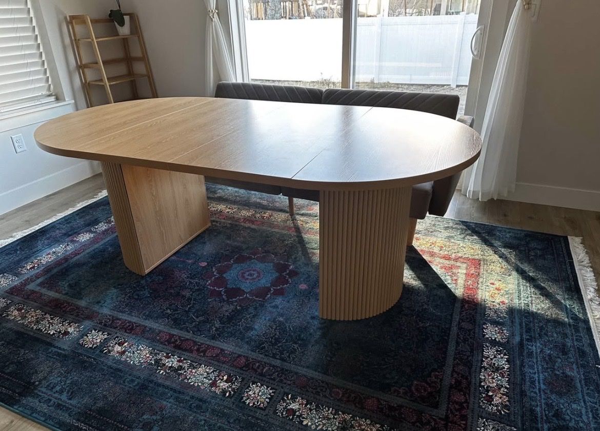 Like new beautiful table with two leafs and sits up to 8 comfortably. 41-78”