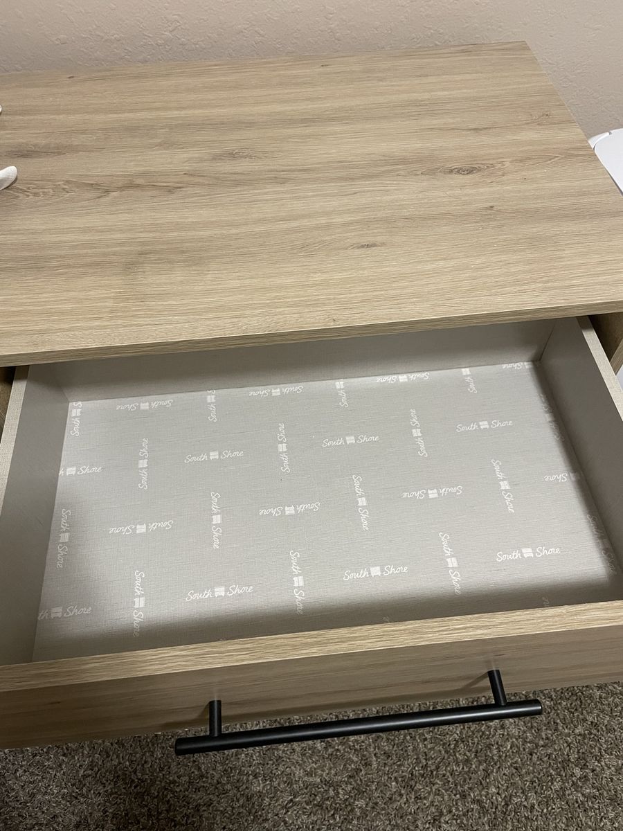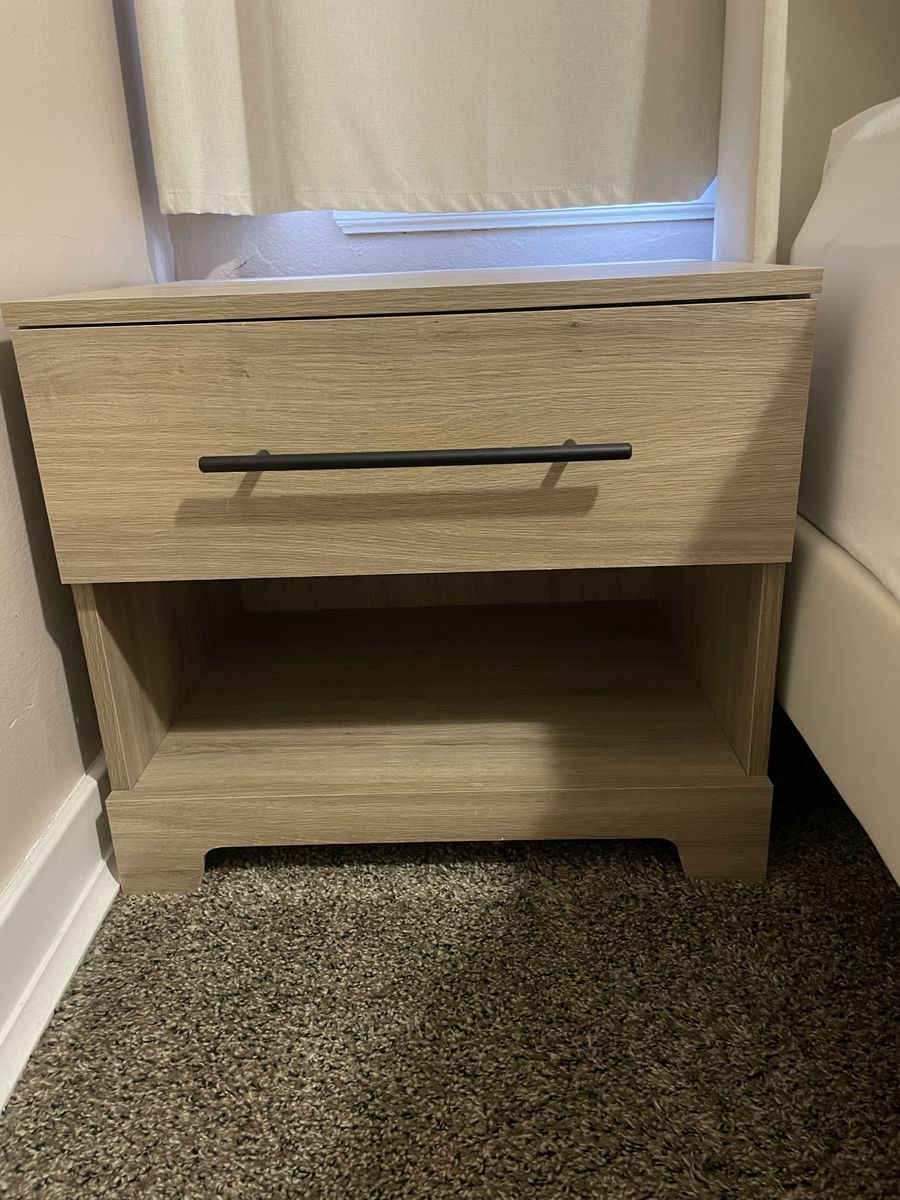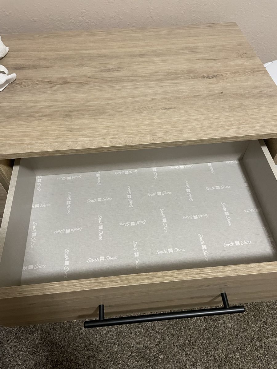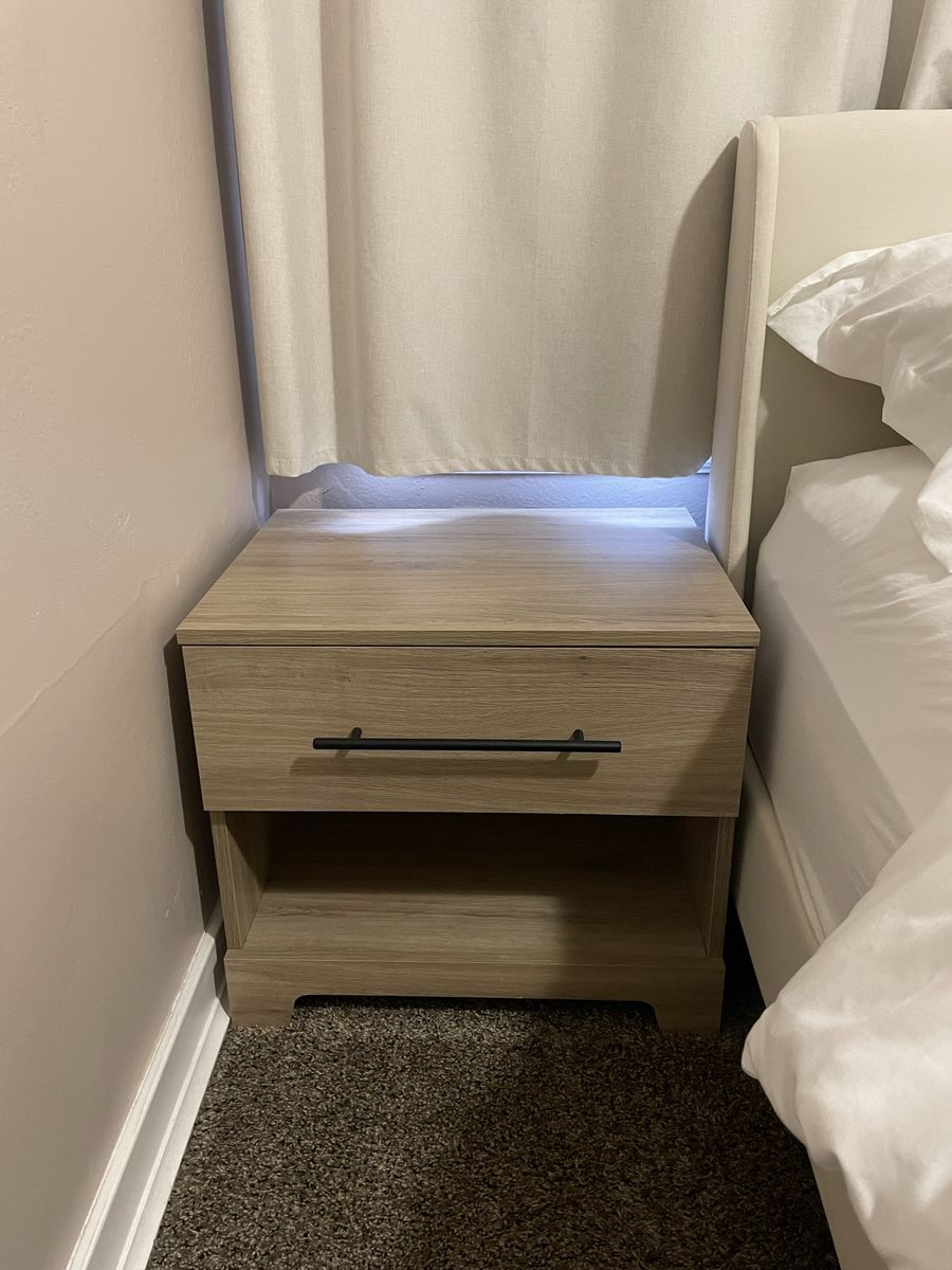 Great condition dresser and two nightstands. Hoping to sell as a set. Retails for $415 plus tax. Only thing is very light peeling at some of the dresser drawers. (In pictures) heavy and sturdy.