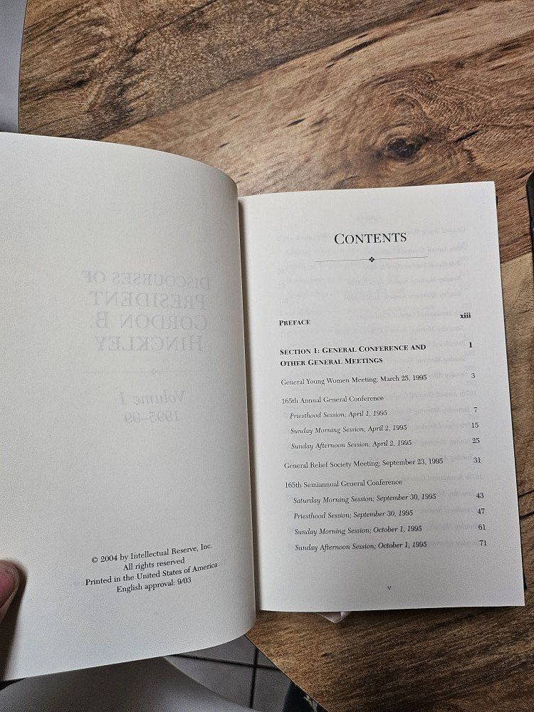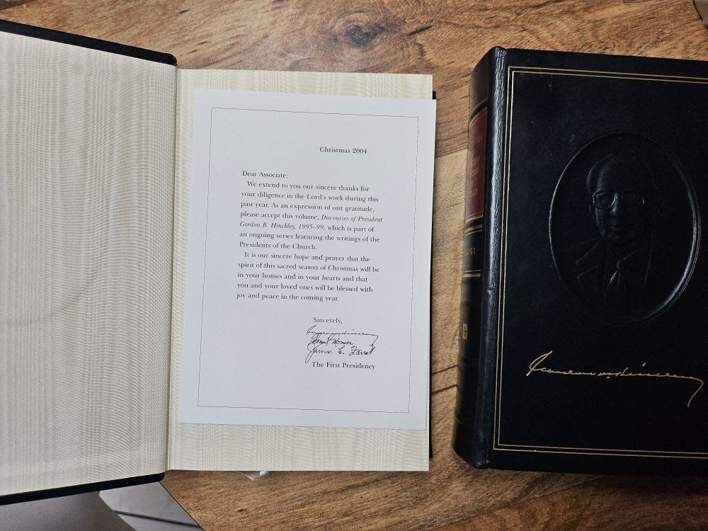 VenmoSpecial Editions of volume 1 and 2 Discourses of President Gordon B. Hinkley. All practically brand new abd include a letter indicating then as a christmas gift to a church employee from first Presidency of the LDS church atbthe time. The signatures are printed not signed unfortunately but still a cool little but of history to them.