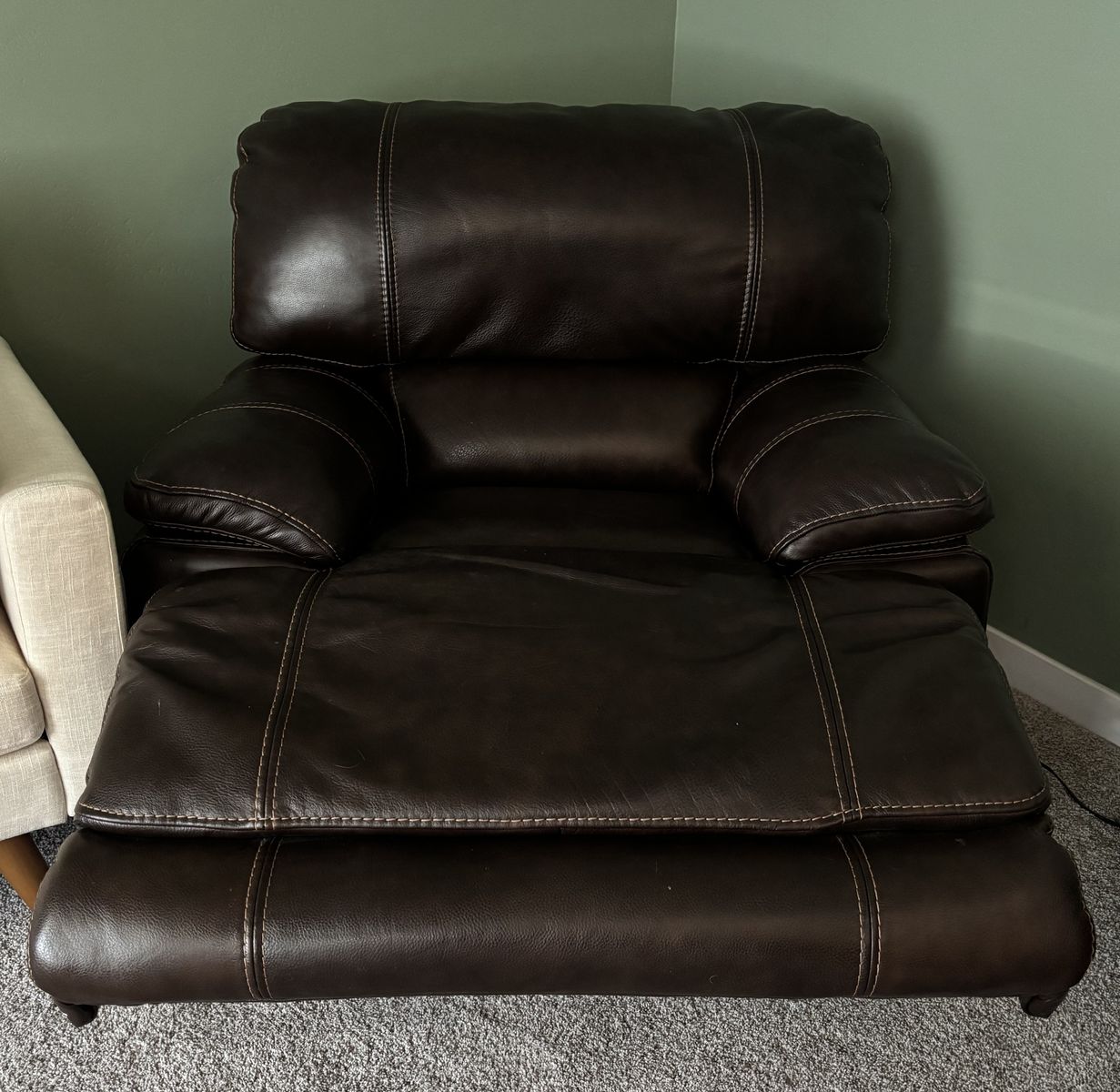 Venmolarge brown leather electric recliner in EXCELLENT condition. Fully reclines and will automatically stop anywhere in between. It doesnt fit in my space anymore, so it needs to go. Asking $590 obo. Pick up only. Cash only. Text is best. 801-520-0353.