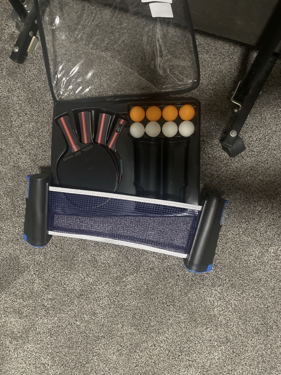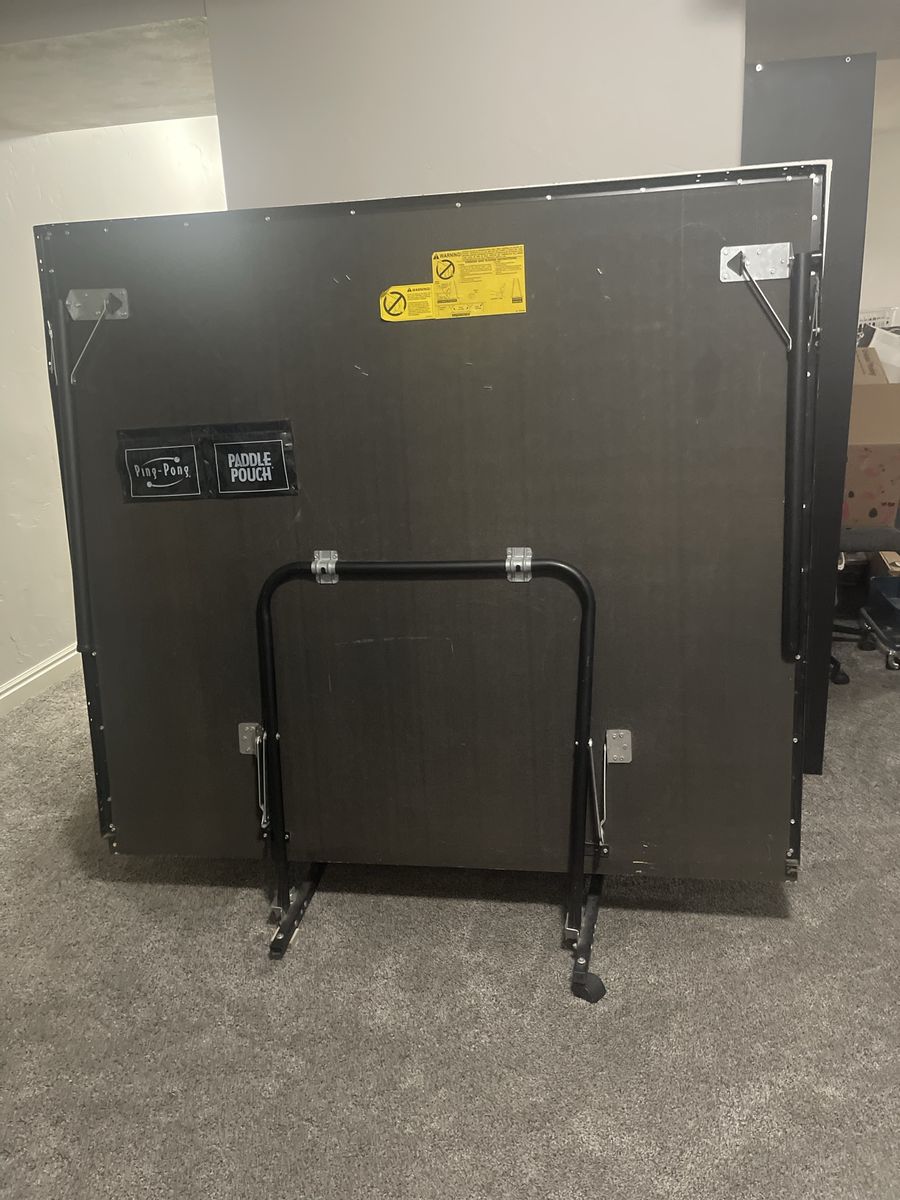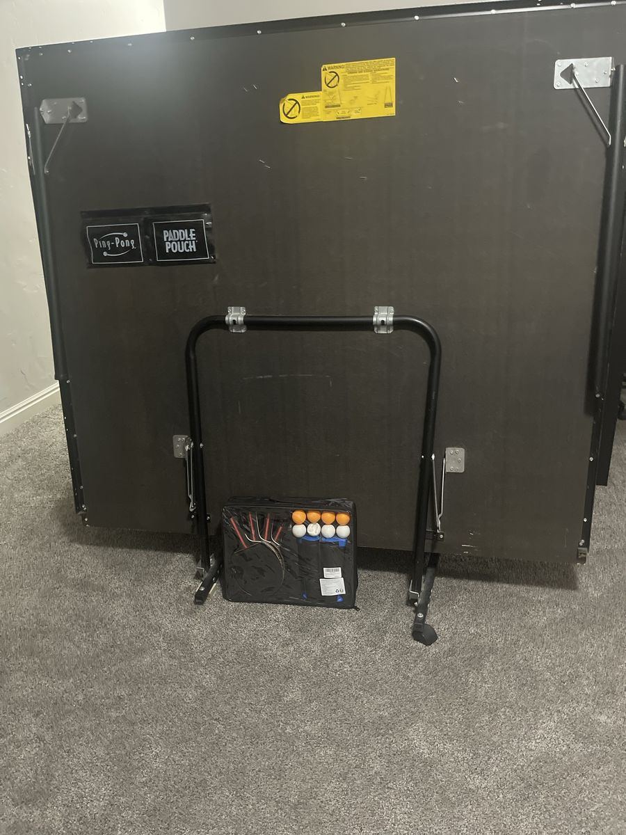 VenmoIn good shape but needs a replacement caster on bottom left. We are including new ping pong paddles, retractable net and balls.