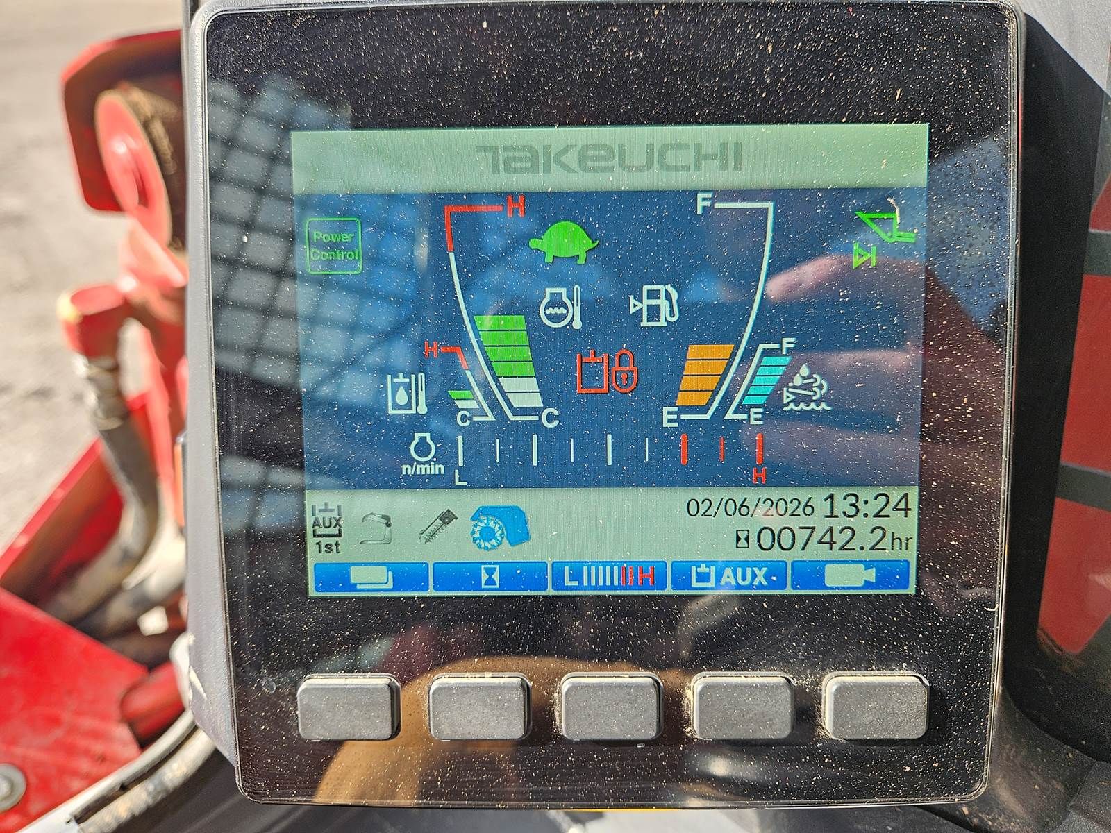 Heavy-duty Takeuchi TL12R2 high-flow track skid steer with 742 hours. Built for power and performance, this machine is ideal for demanding applications like land clearing, construction, and material handling.