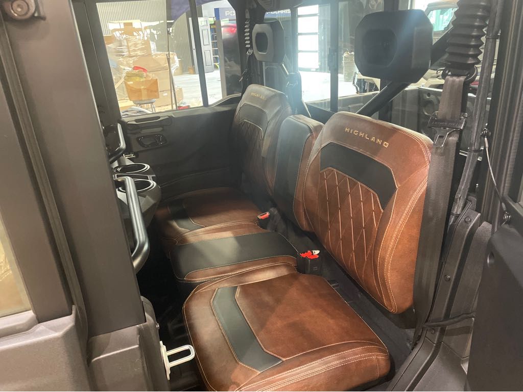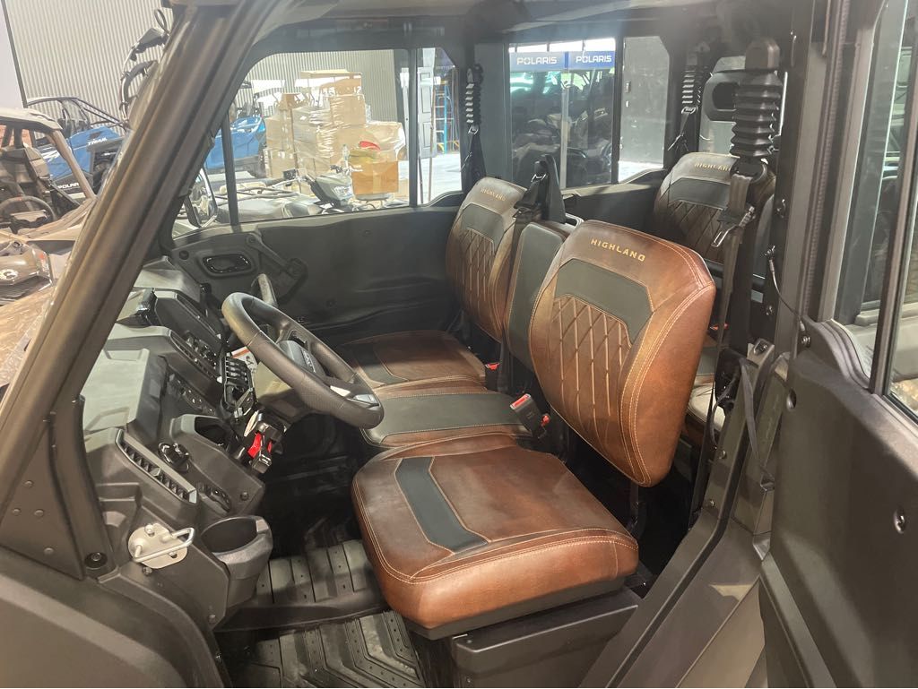 The U10 XL Pro Highland is designed to handle bigger teams and bigger tasks with ease. Its premium cabin, complete with a factory-installed HVAC system, delivers year-round comfort. The spacious interior features seating for up to six, a sound-dampening headliner, sealed power windows, and an electric tip-out windshield that keeps noise, dust, and weather outside. Under the hood, a robust 998cc liquid-cooled three-cylinder engine provides smooth, dependable power. With unmatched capacity, premium features, and rugged performance, the U10 XL Pro Highland is in a league of its own. Engine Type: In-Line Displacement: 60.9 cu. in. (998 cc) Cooling: Liquid Fuel System: Gas Front Suspension: Independent A-Arm Front Brakes: Hydraulic Disc Front Tire: CST 29 x 9 - 14 Rear Suspension: Independent Double A-Arm Rear Brakes: Hydraulic Disc Rear Tire: CST 29 x 11 - 14 Dry Weight: 2374 lb. (1076.8 kg.) Wheelbase: 112.5 in. (2857.5 mm) Front Travel: 11 in. (279.4 mm) Rear Travel: 10.4 in. (264.2 mm) Ground Clearance: 13 in. (330.2 mm) Fuel Capacity: 11.8 gal. (44.7 L) Box Capacity: 1000 lbs. (453.6 kg.) Towing Capacity: 2500 lb. (1134 kg.) Drive System: Continuously Variable (CVT) Speedometer: Standard Tachometer: Standard Odometer: Standard