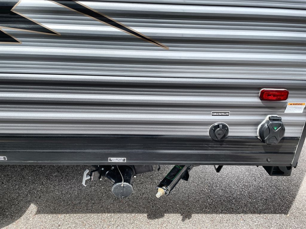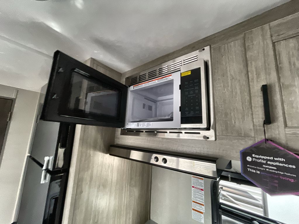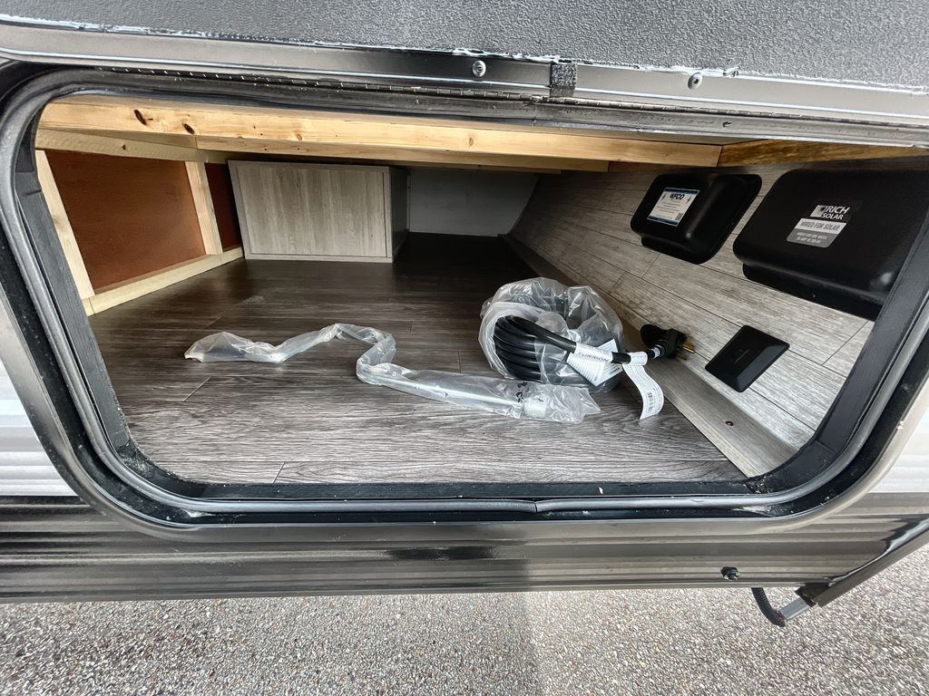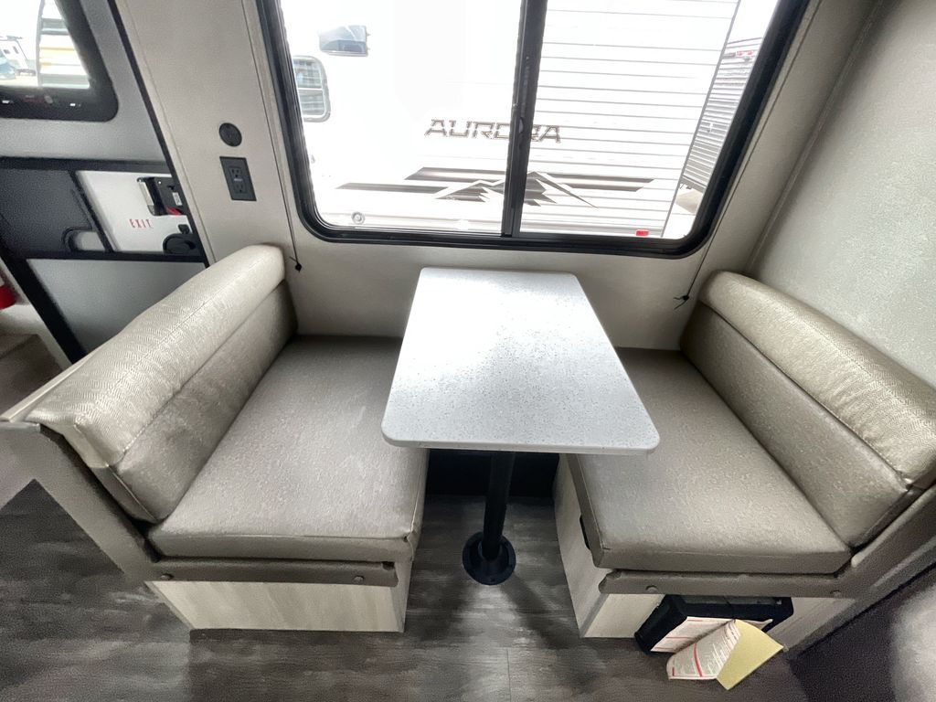 Comfortability, usability, and quality is what you will find in each one of these Forest River Aurora Light travel trailers! They are designed with a superior build and packed full with industry leading, functional, and distinctive standard features. The diamond plate rock guard will protect your unit from road debris and the nitrogen filled radial tires, which keep their pressure longer, offer better fuel economy. You will also find upgraded JBL Elite exterior speaker outside, an electric awning with multicolor lights and remote, plus flush mount baggage doors for easy packing. The interiors are beautifully designed with matte black kitchen and bath faucets, black nightshades in the living room, and GE kitchen appliances!