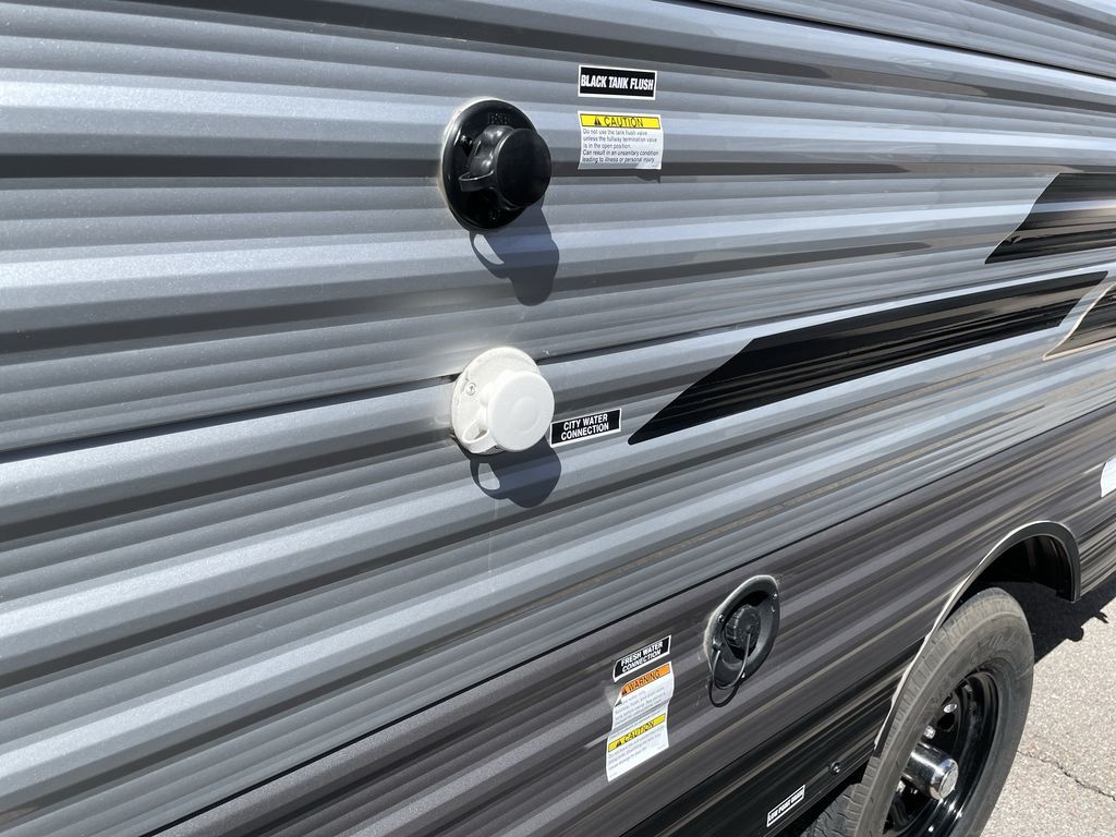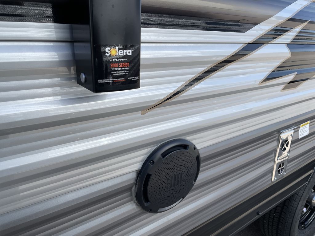 Comfortability, usability, and quality is what you will find in each one of these Forest River Aurora Light travel trailers! They are designed with a superior build and packed full with industry leading, functional, and distinctive standard features. The diamond plate rock guard will protect your unit from road debris and the nitrogen filled radial tires, which keep their pressure longer, offer better fuel economy. You will also find upgraded JBL Elite exterior speaker outside, an electric awning with multicolor lights and remote, plus flush mount baggage doors for easy packing. The interiors are beautifully designed with matte black kitchen and bath faucets, black nightshades in the living room, and GE kitchen appliances!