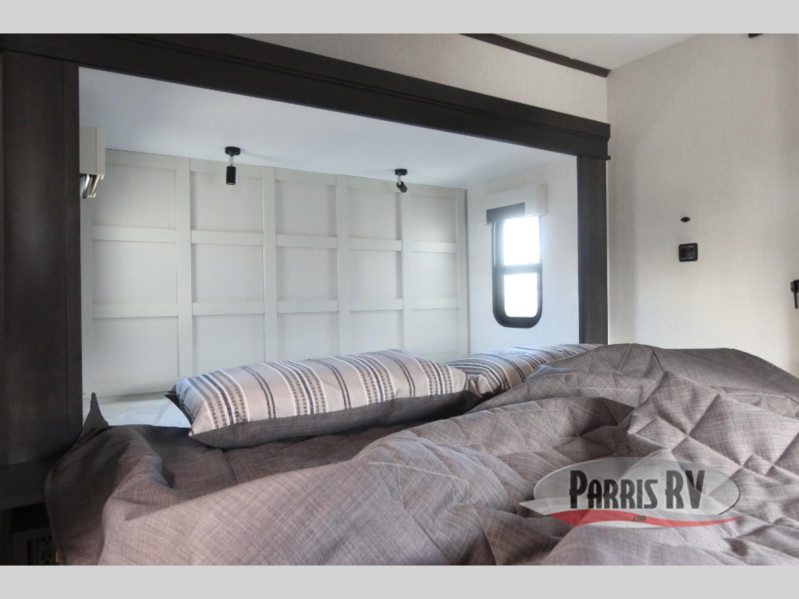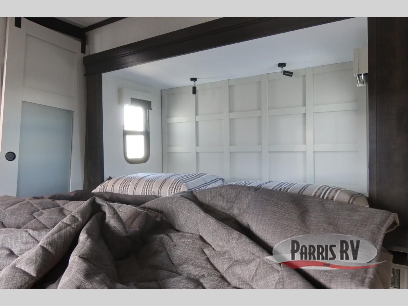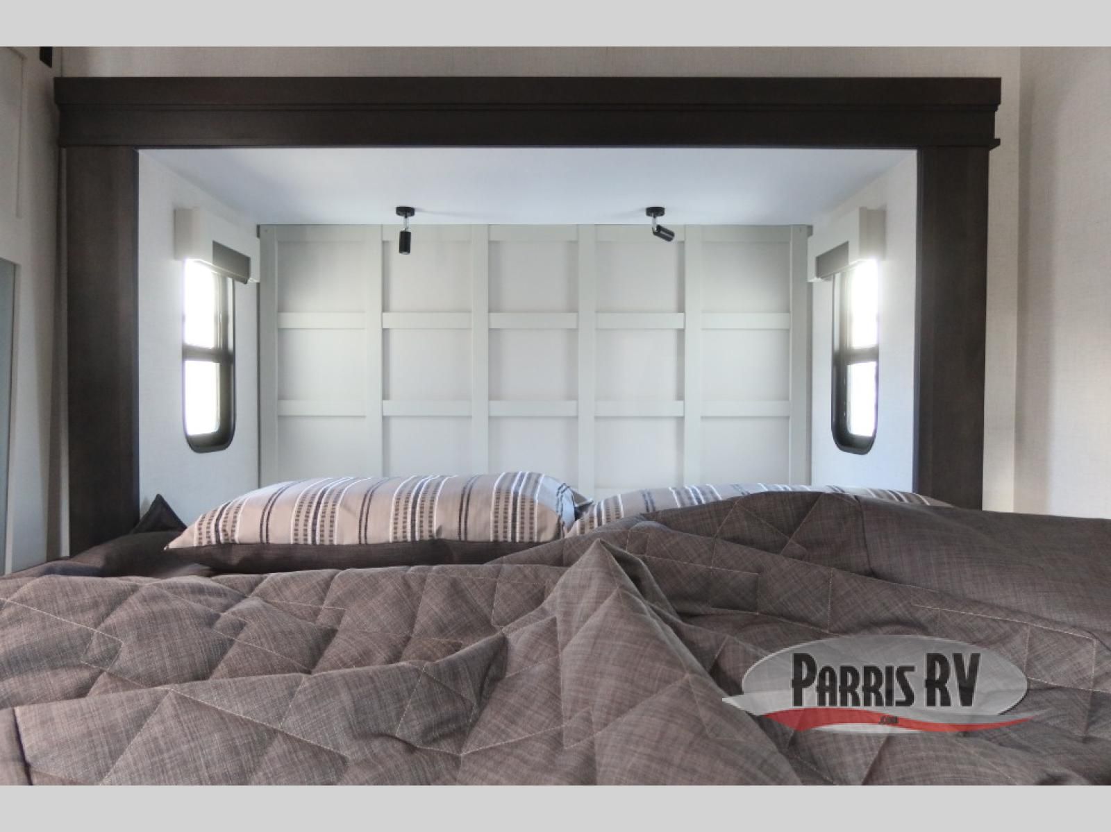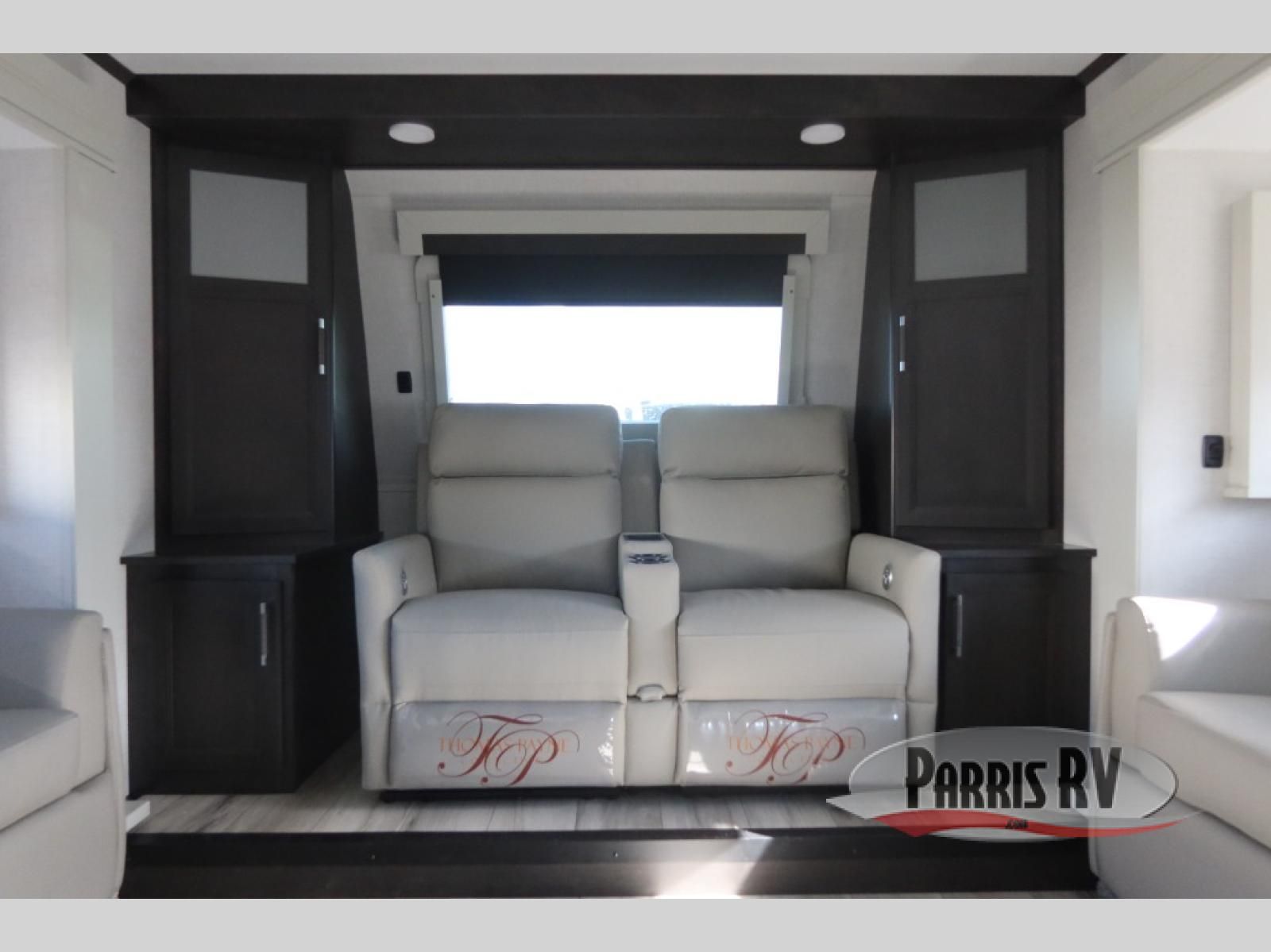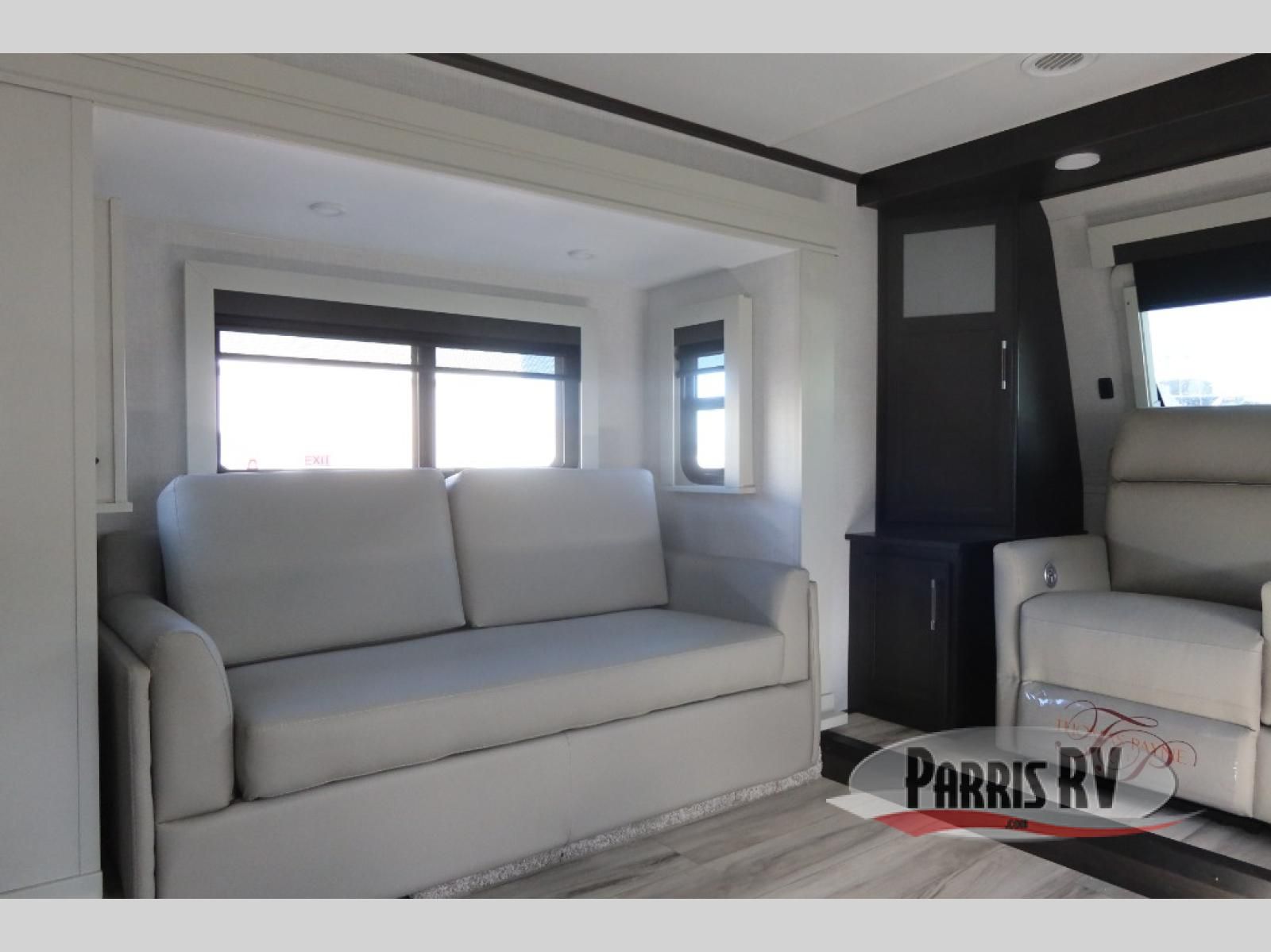 Find the comfort and luxury in this fifth wheel! Imagine your morning coffee on the spacious middle kitchen, and prepping your favorite breakfast on your kitchen island with a sink, making for a good meal-prep zone for endless cooking possibilities. You can start your favorite movie queued up in the living room with dual hide-a-bed sofas and a fireplace that sets the mood for comfort and delight every day. When it is time to unwind, your private rear bedroom welcomes you with a king bed, smart storage, and soft lighting that turns travel into rest**,** featuring a master bathroom with all you need to freshen up and treat yourself with plenty of storage, a dual sink vanity, and space for a washer/dryer prep for your convenience.