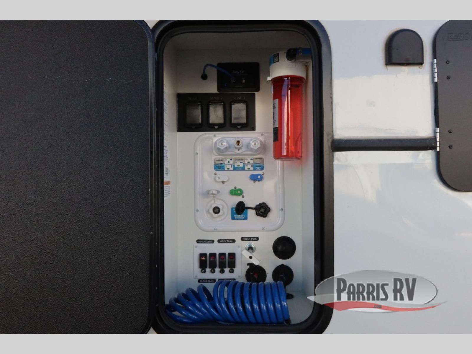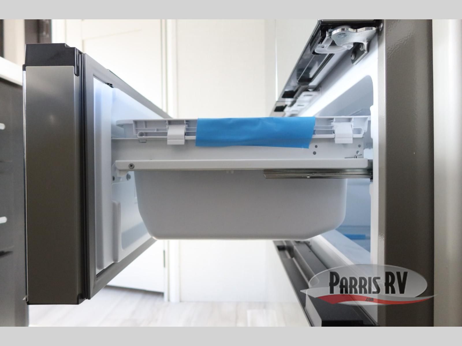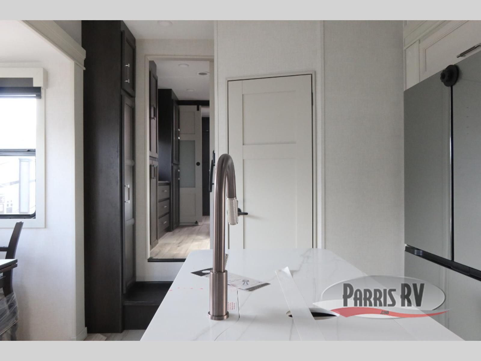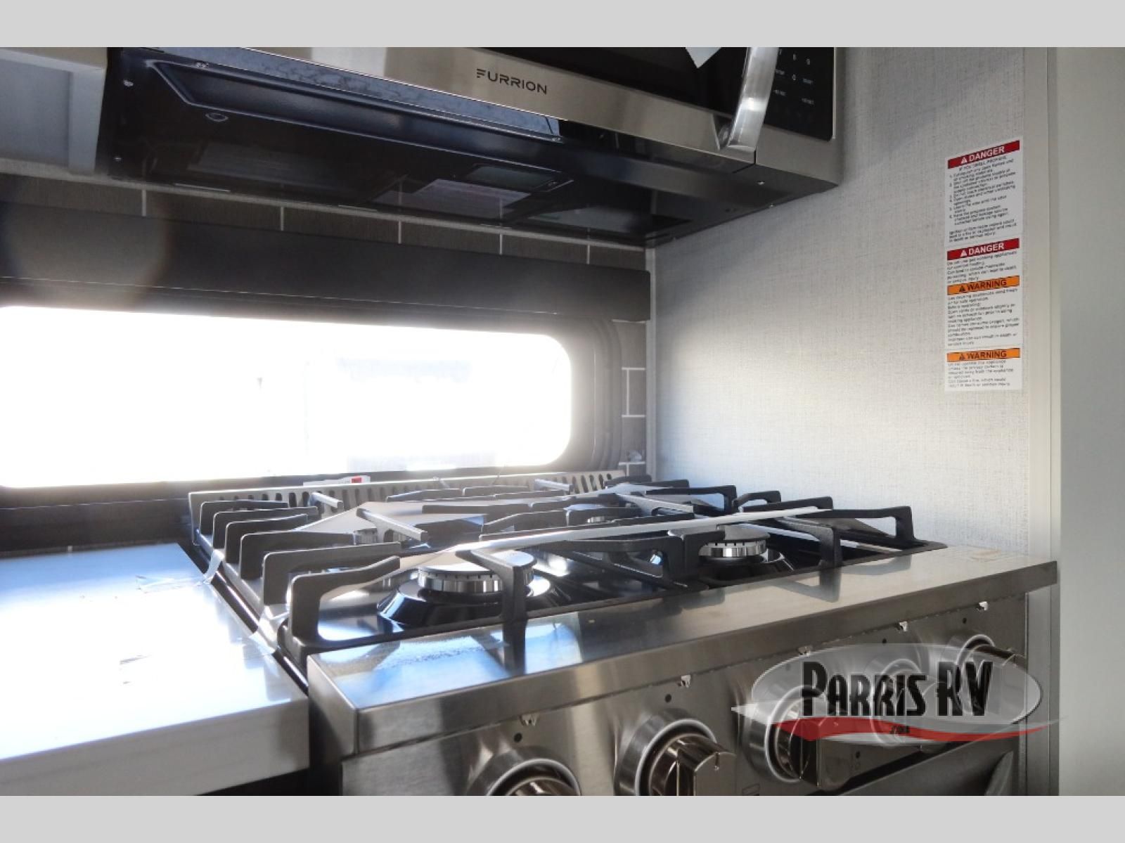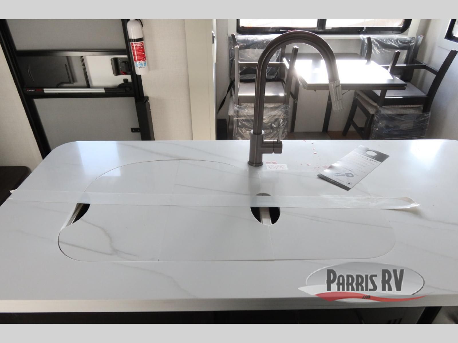 Find the comfort and luxury in this fifth wheel! Imagine your morning coffee on the spacious middle kitchen, and prepping your favorite breakfast on your kitchen island with a sink, making for a good meal-prep zone for endless cooking possibilities. You can start your favorite movie queued up in the living room with dual hide-a-bed sofas and a fireplace that sets the mood for comfort and delight every day. When it is time to unwind, your private rear bedroom welcomes you with a king bed, smart storage, and soft lighting that turns travel into rest**,** featuring a master bathroom with all you need to freshen up and treat yourself with plenty of storage, a dual sink vanity, and space for a washer/dryer prep for your convenience.