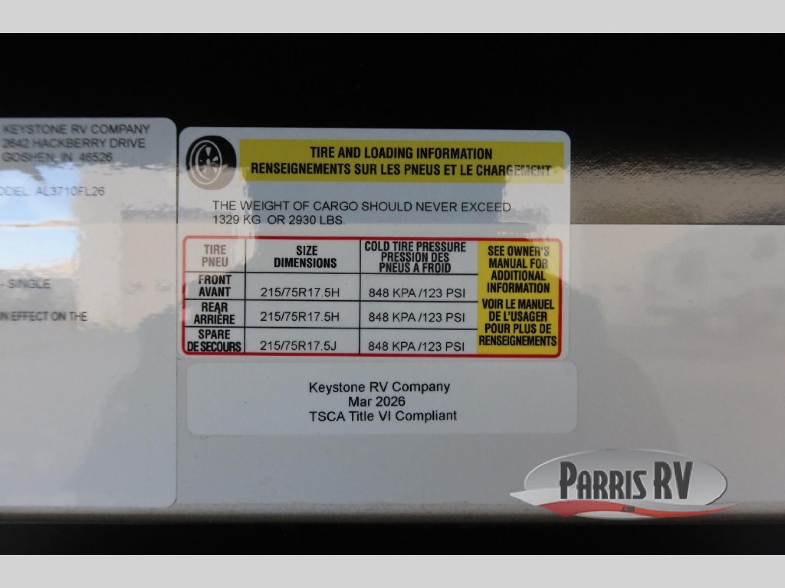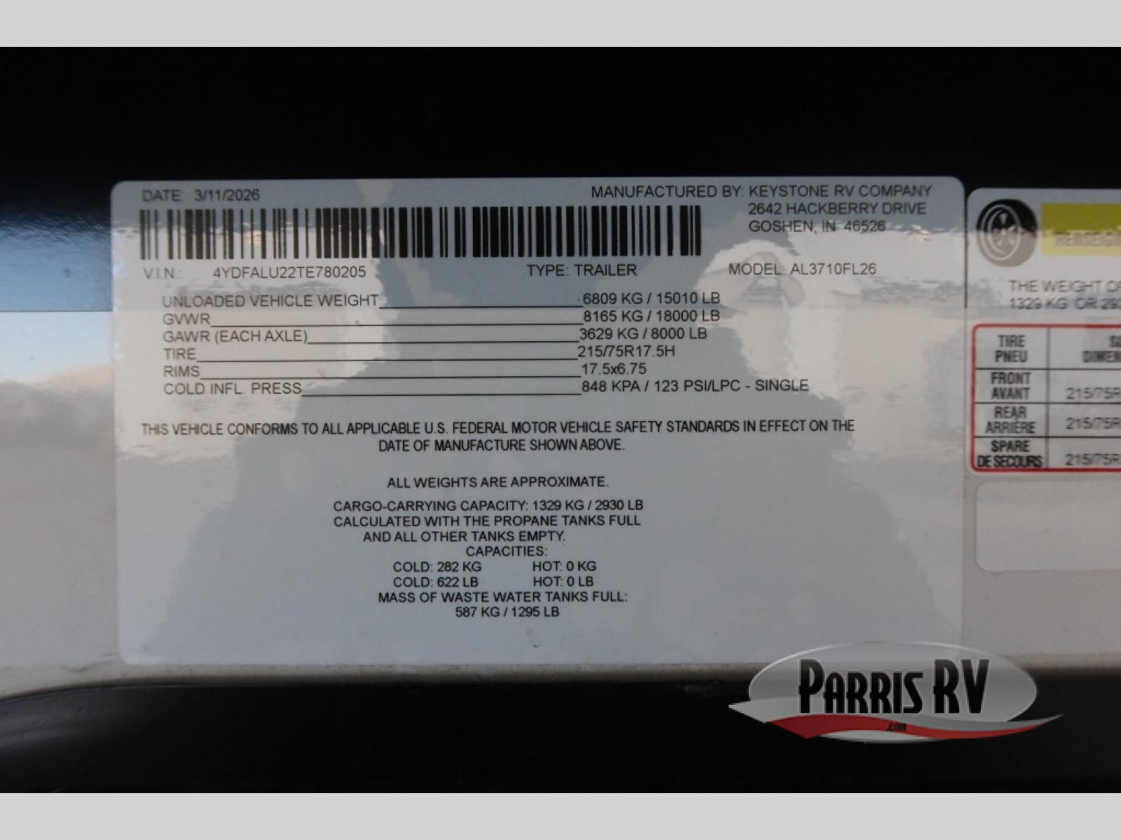Keystone RV Alpine fifth wheel 3710FL highlights: