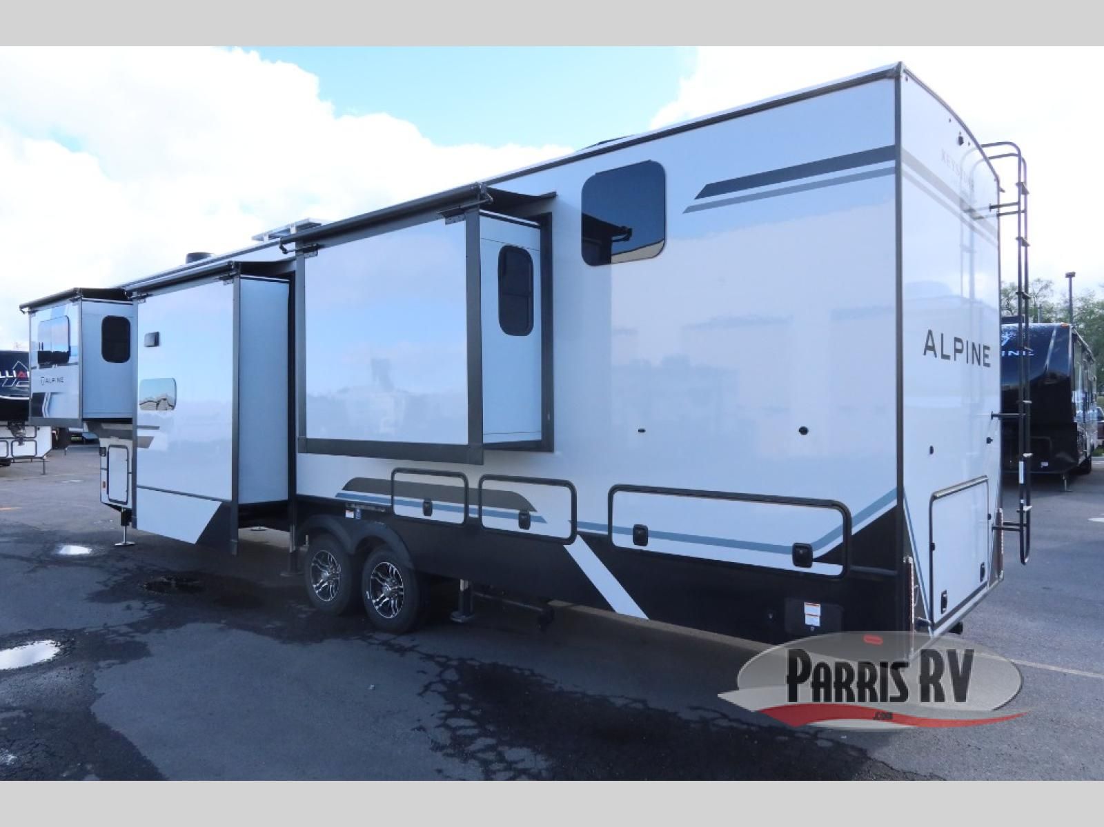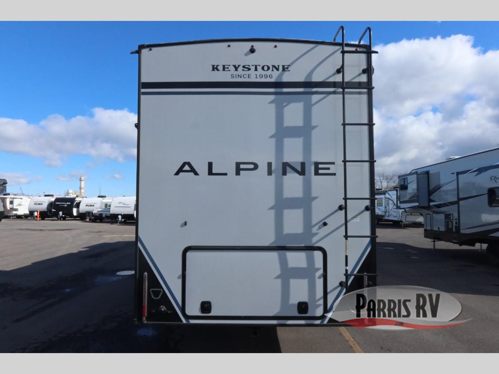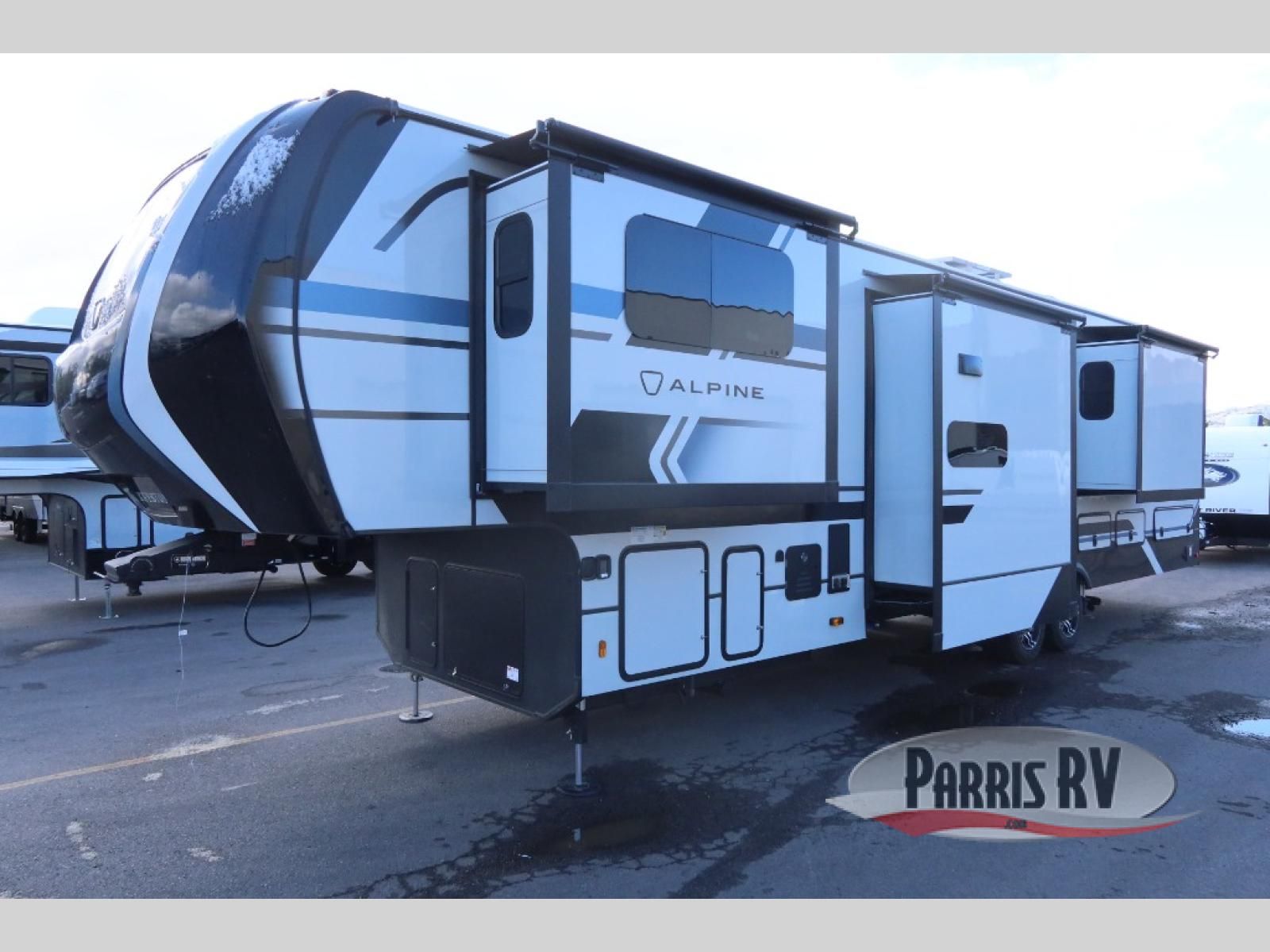 Luxury is not an option; it is a standard with each one of these Keystone RV Alpine fifth wheels! A 100" wide body construction will create an open, residential feeling, and cutting-edge technology will provide a hassle-free camping experience. The Tru-Fit slide construction is more durable and minimizes motor structural stress, as well as resists leaking, and the Blade Pure airflow system provides residential comfort with its high-performance. Each fifth wheel includes day/night roller shades, stunning solid wood cabinet doors, luxurious crown molding, and solid surface countertops in the kitchen. The exterior also includes an outside shower with hot and cold water, Lippert strut assisted SolidSteps, large, tinted safety glass windows, and many more conveniences!