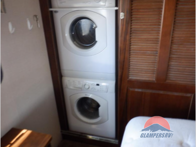 In the rear bedroom the king bed is on a slide or you can choose an optional queen. Across from the bed there is a dresser, and along the rear wall of the room you will find a wardrobe, dresser, and a closet washer/dryer prep, and so much more!
