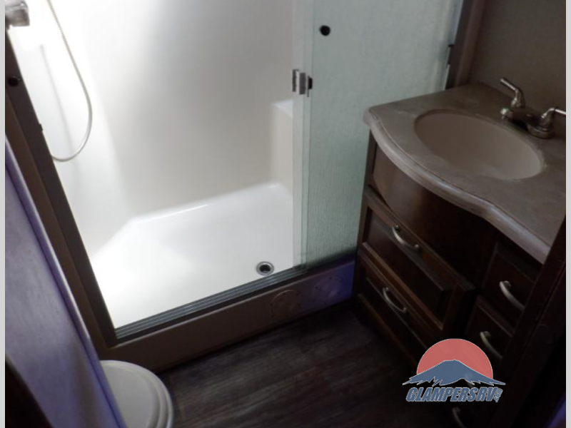 The Estate Package is available on this model. A few features included in this package are, a two burner induction stove top, double drawer dishwasher, three air conditioners, lighted kitchen backsplash, and so much more! You can even choose exterior colors in Gun Metal or Pinot Girgio.