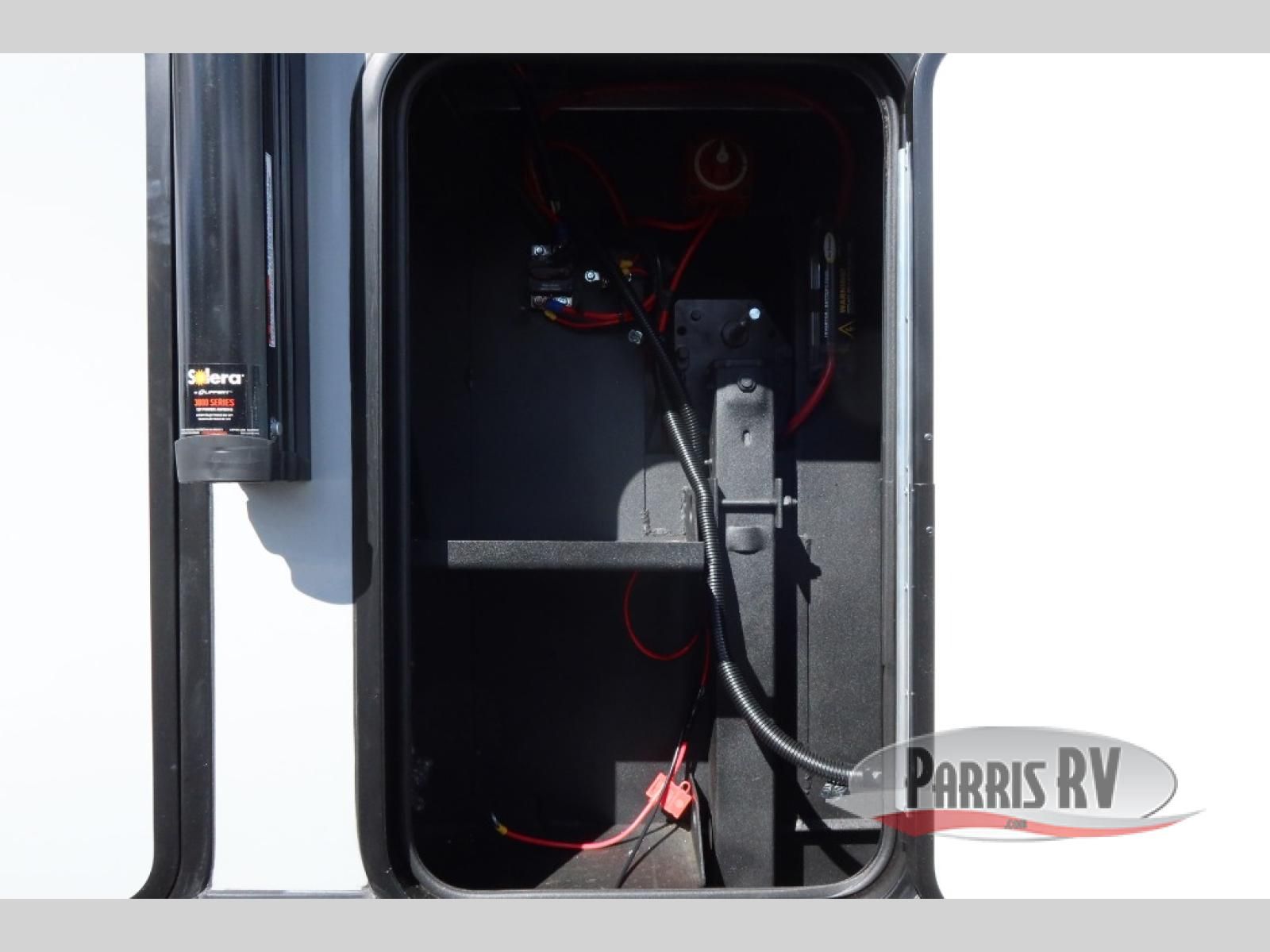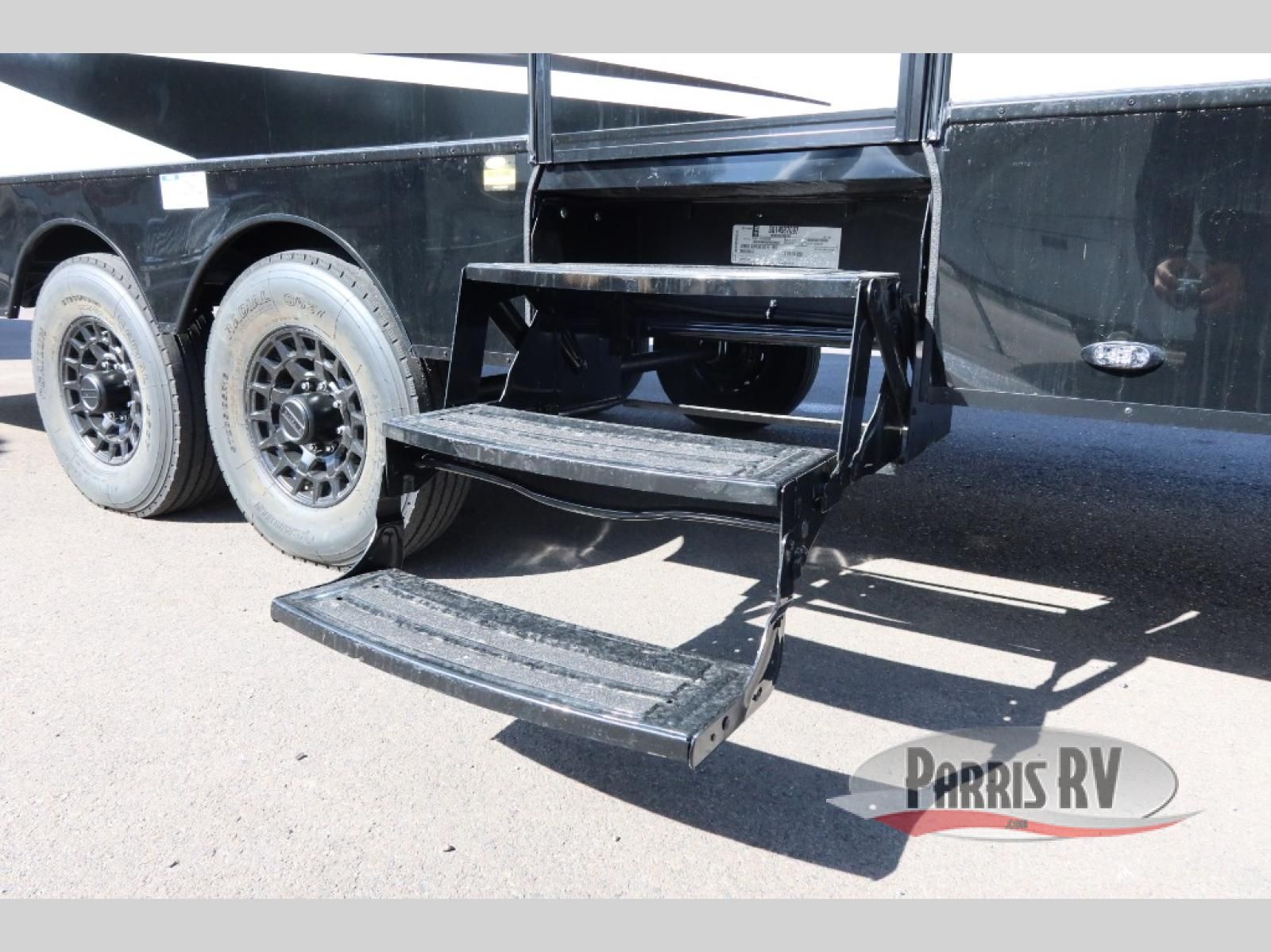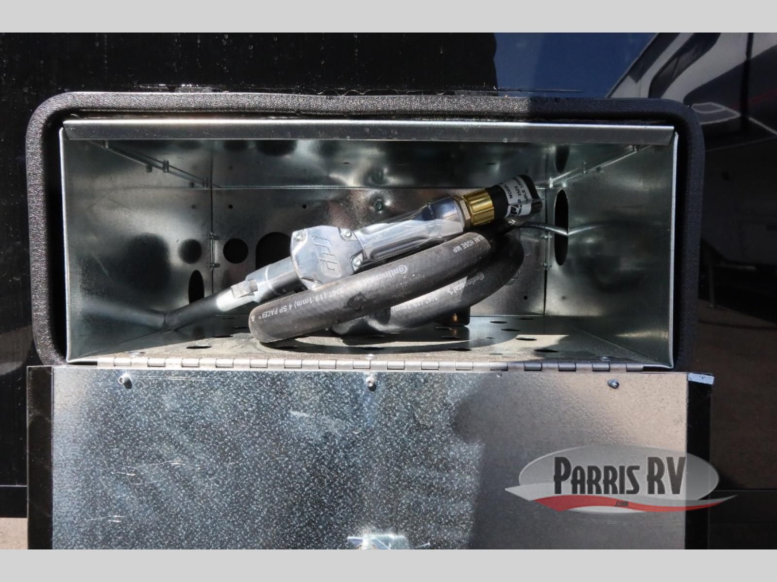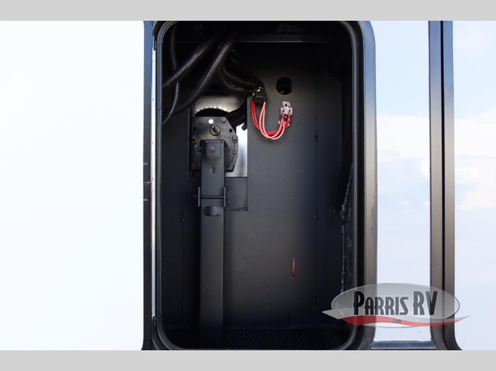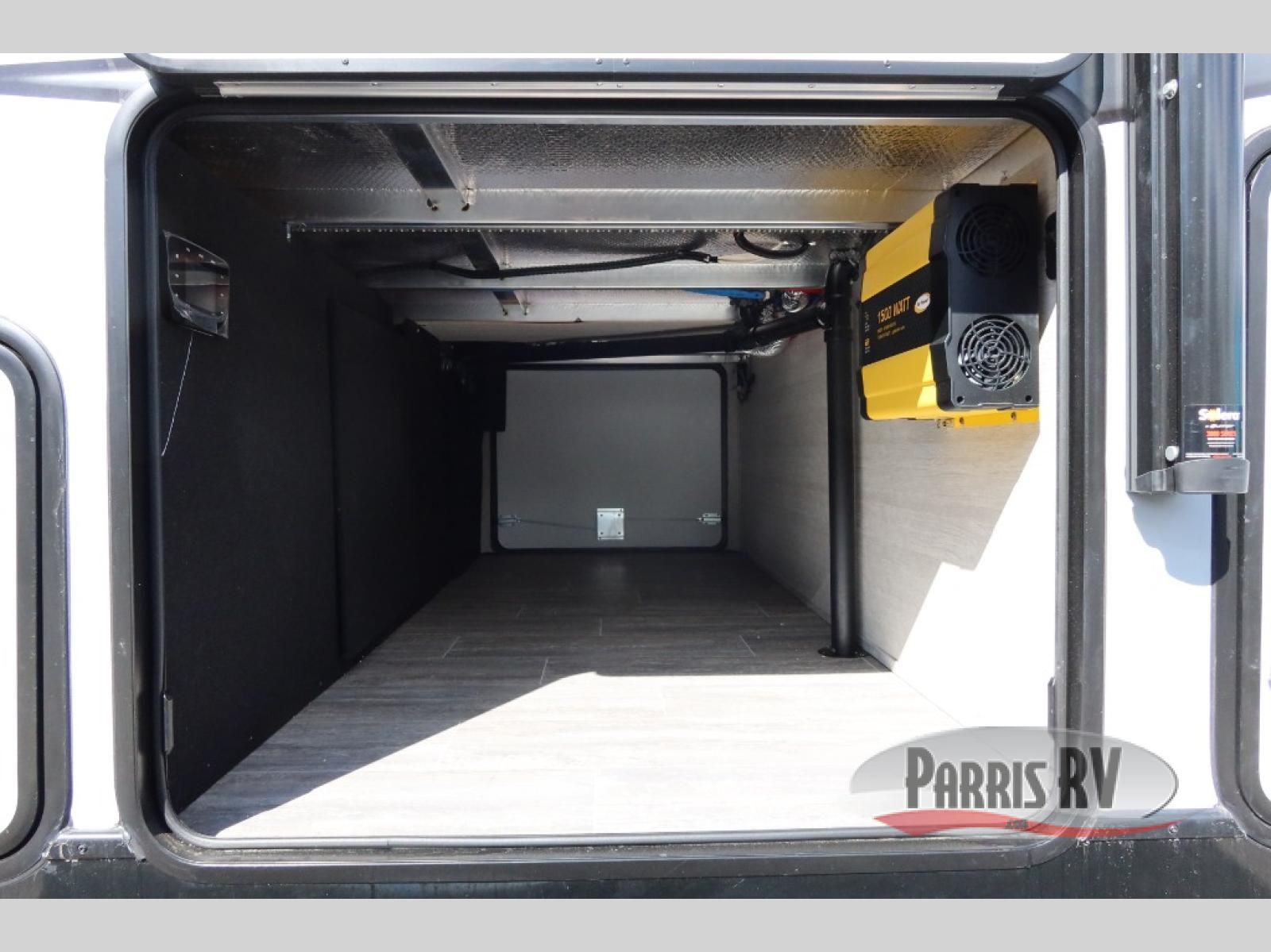 Wherever you decide to camp, this toy hauler is sure to bring fun. There is a front master bedroom with an RV king bed and a nightstand, plus a vanity/wardrobe slide that will provide more space. Your guests can sleep on the power queen bed after the toys are unloaded from the 16' 4" garage, and in the morning, they can relax on the power sofa bed under the top bed. The kitchen includes everything you need each day to prepare meals; a three burner cooktop, microwave oven, and an extra large double door refrigerator. You'll also appreciate the slam-door luggage compartments to store your larger camp gear, the 40 gallon fuel station to keep your toys ready to go, and the power awning with LED lights for an outdoor living space!