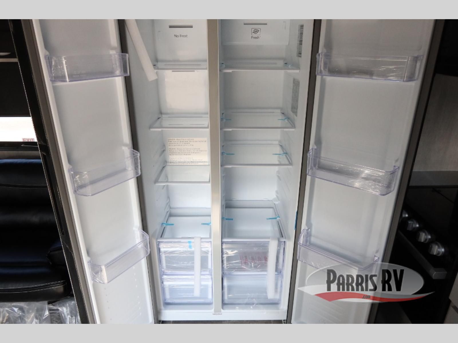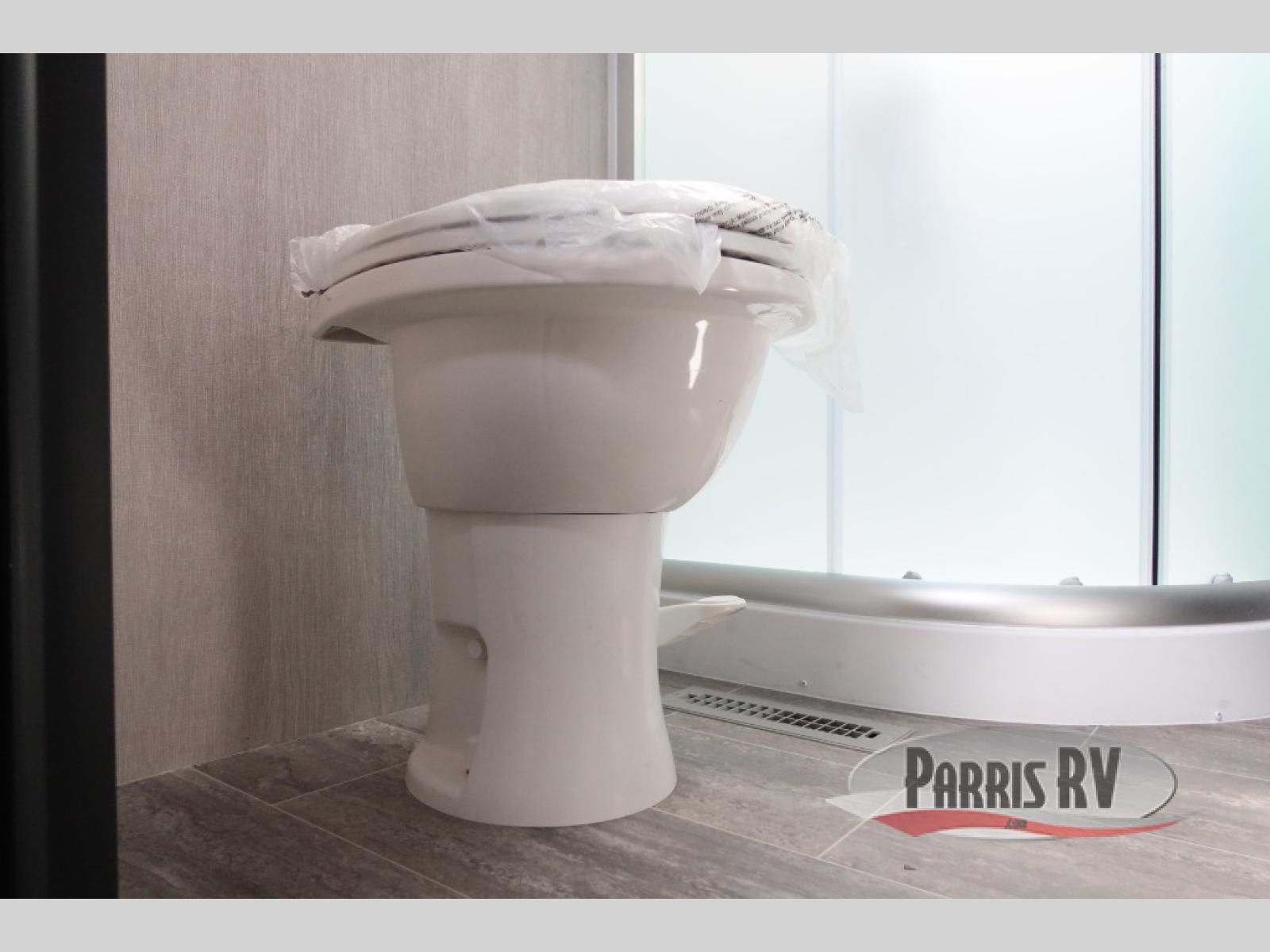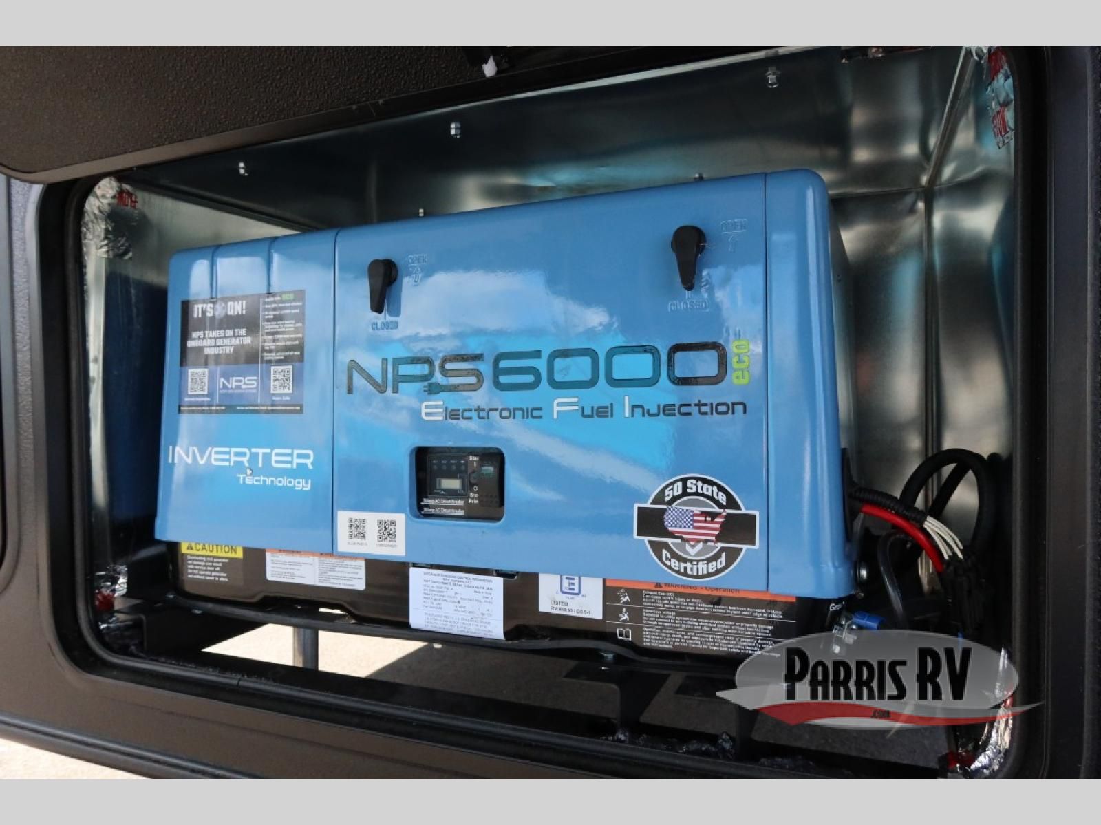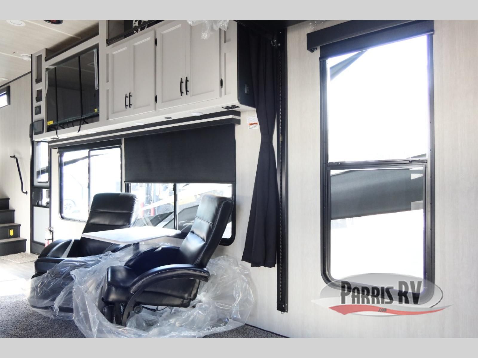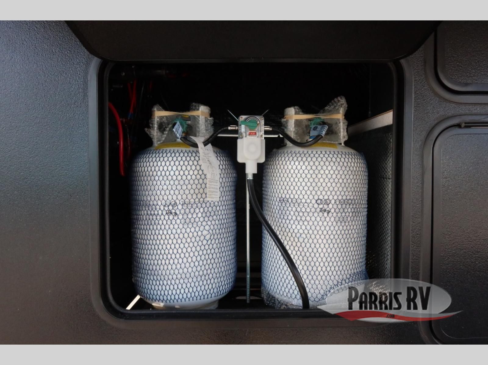 Wherever you decide to camp, this toy hauler is sure to bring fun. There is a front master bedroom with an RV king bed and a nightstand, plus a vanity/wardrobe slide that will provide more space. Your guests can sleep on the power queen bed after the toys are unloaded from the 16' 4" garage, and in the morning, they can relax on the power sofa bed under the top bed. The kitchen includes everything you need each day to prepare meals; a three burner cooktop, microwave oven, and an extra large double door refrigerator. You'll also appreciate the slam-door luggage compartments to store your larger camp gear, the 40 gallon fuel station to keep your toys ready to go, and the power awning with LED lights for an outdoor living space!
