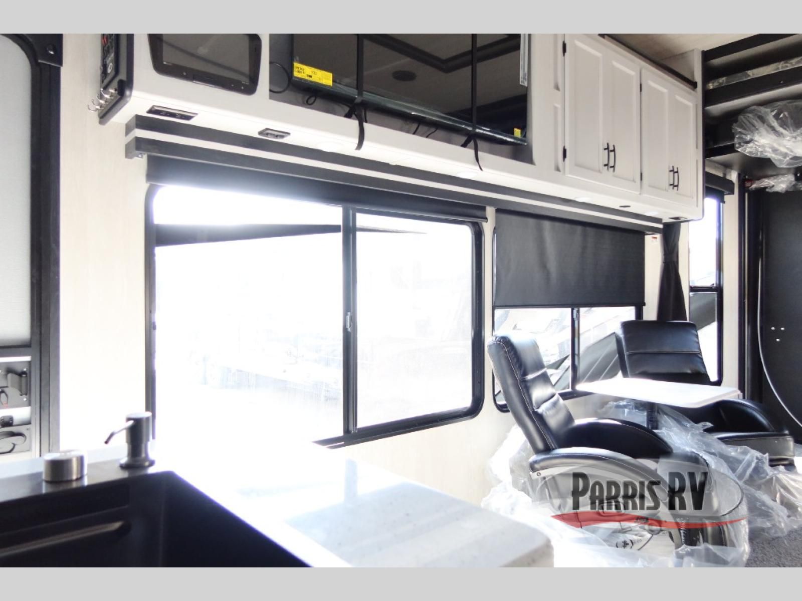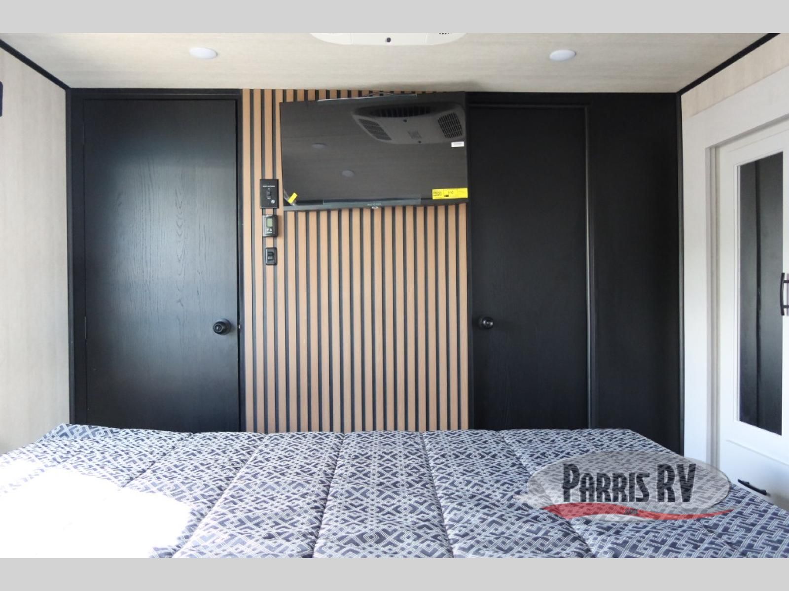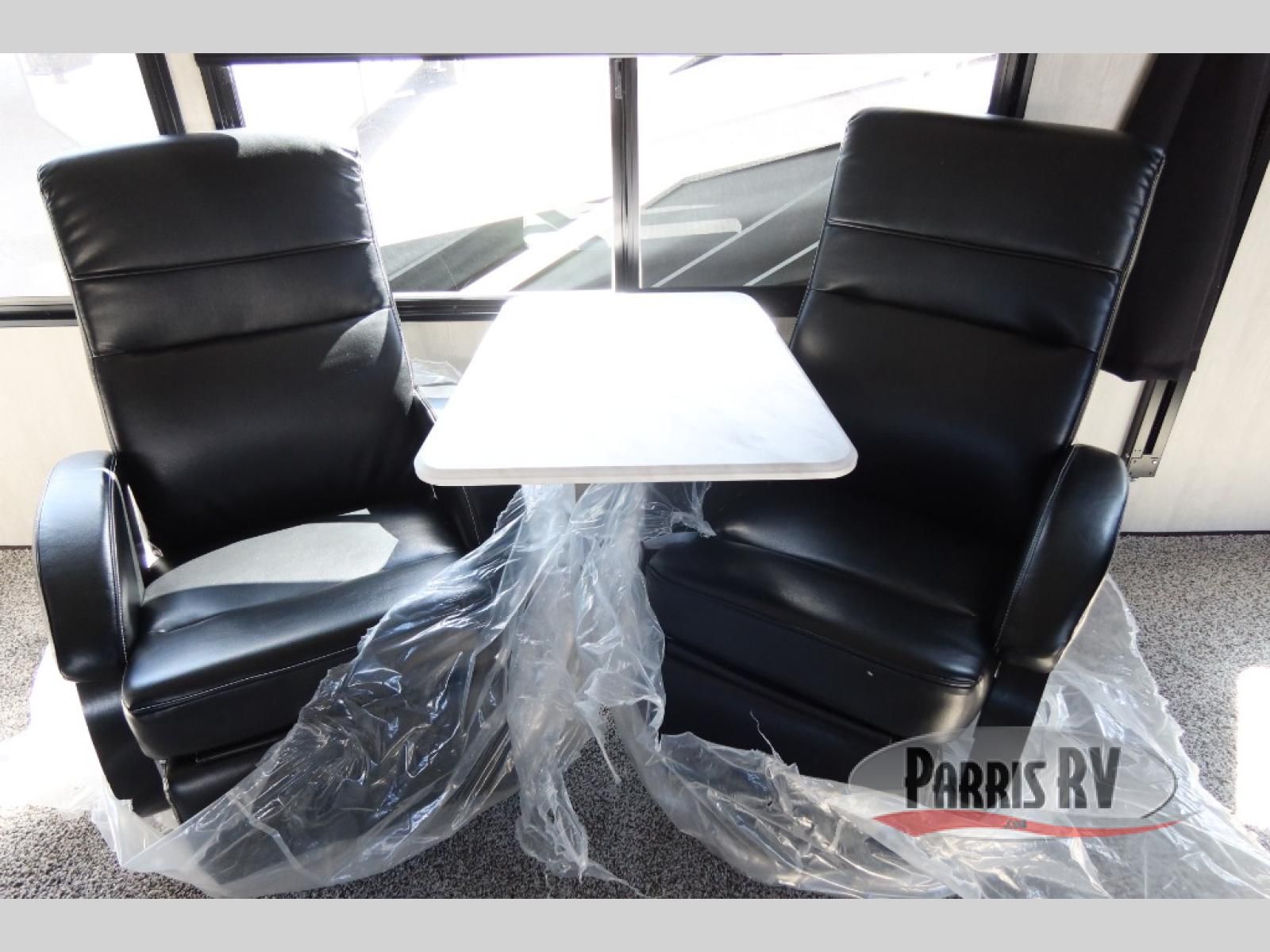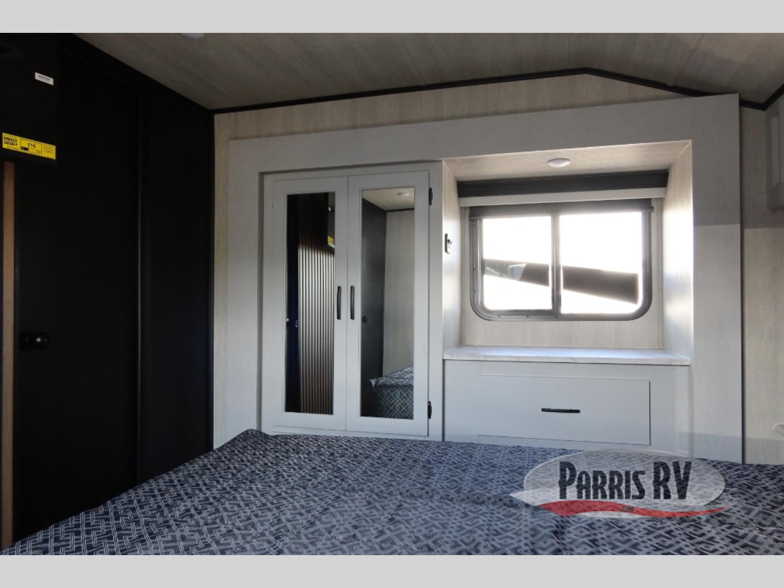 Wherever you decide to camp, this toy hauler is sure to bring fun. There is a front master bedroom with an RV king bed and a nightstand, plus a vanity/wardrobe slide that will provide more space. Your guests can sleep on the power queen bed after the toys are unloaded from the 16' 4" garage, and in the morning, they can relax on the power sofa bed under the top bed. The kitchen includes everything you need each day to prepare meals; a three burner cooktop, microwave oven, and an extra large double door refrigerator. You'll also appreciate the slam-door luggage compartments to store your larger camp gear, the 40 gallon fuel station to keep your toys ready to go, and the power awning with LED lights for an outdoor living space!