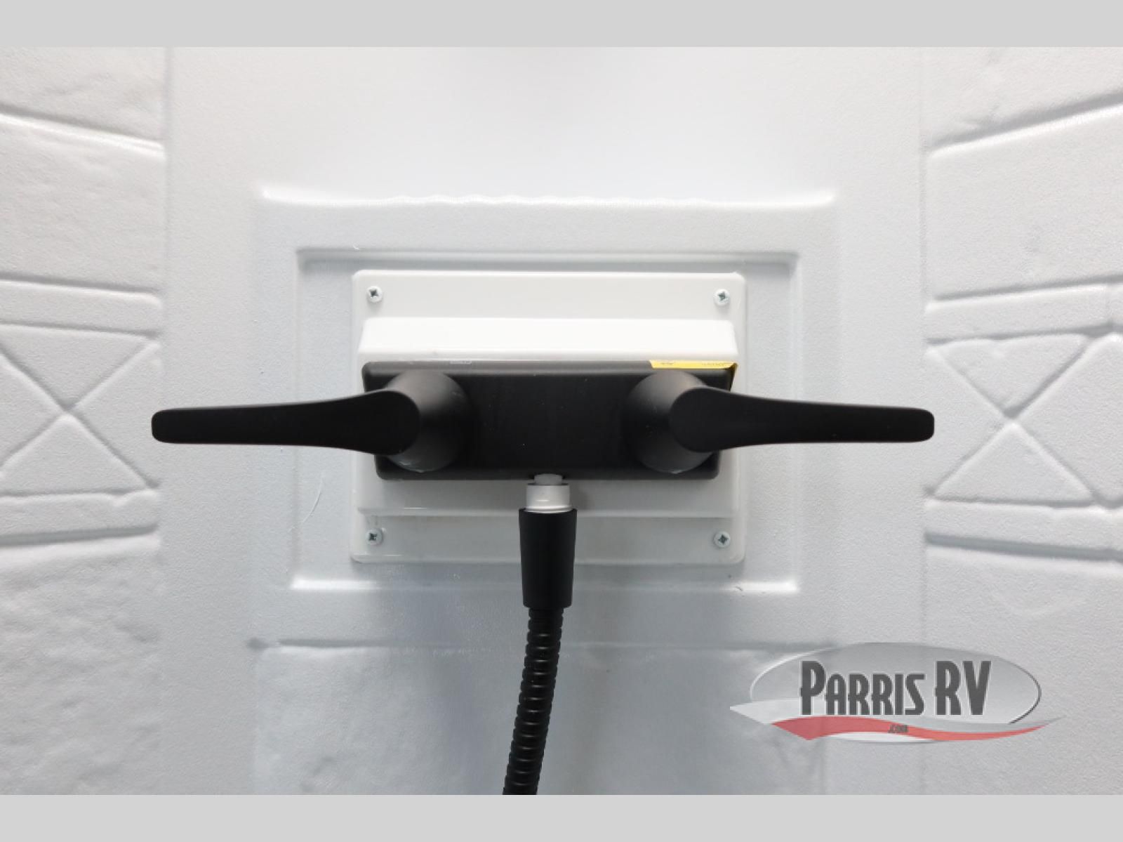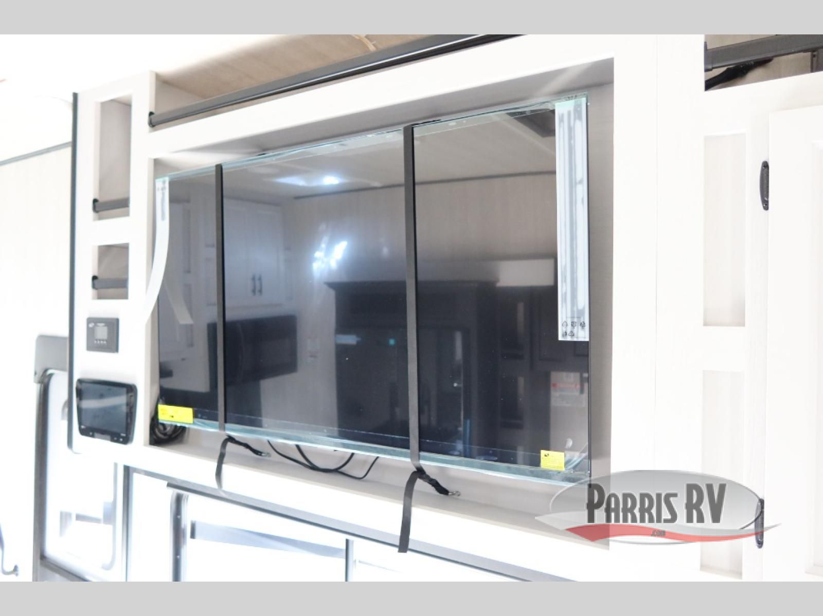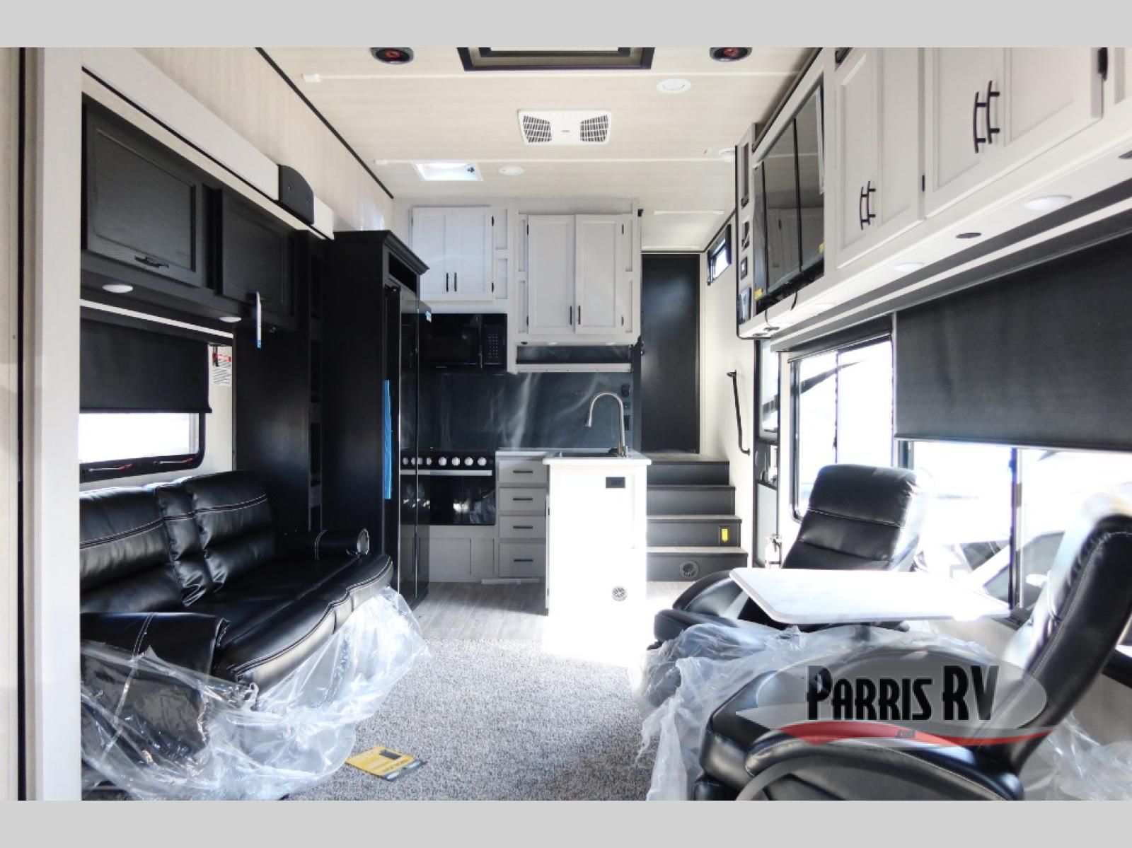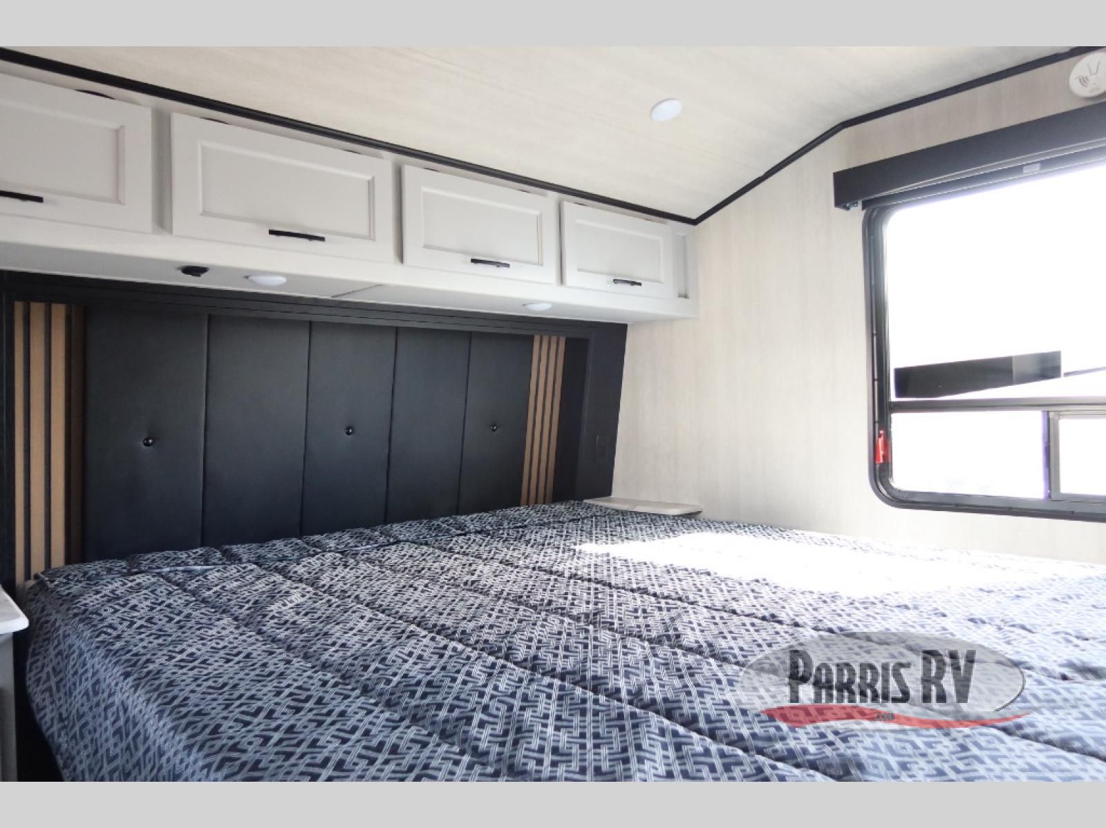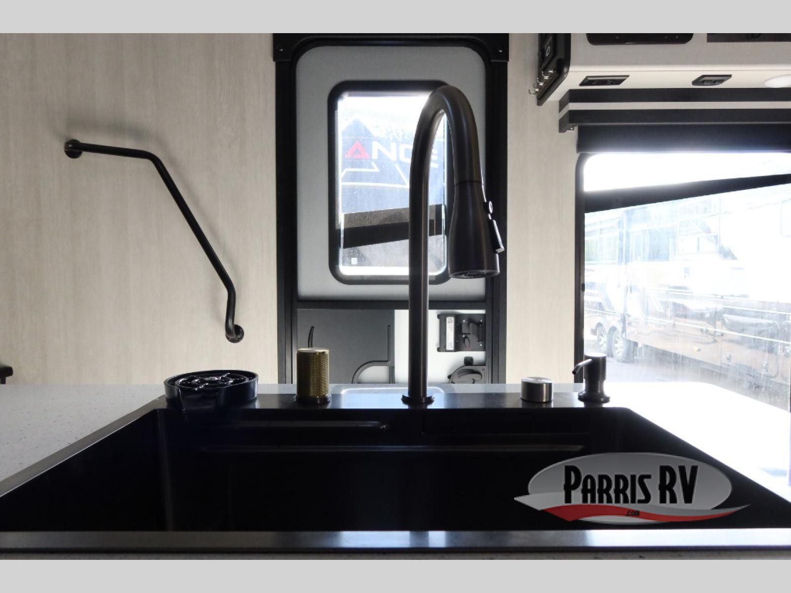 Wherever you decide to camp, this toy hauler is sure to bring fun. There is a front master bedroom with an RV king bed and a nightstand, plus a vanity/wardrobe slide that will provide more space. Your guests can sleep on the power queen bed after the toys are unloaded from the 16' 4" garage, and in the morning, they can relax on the power sofa bed under the top bed. The kitchen includes everything you need each day to prepare meals; a three burner cooktop, microwave oven, and an extra large double door refrigerator. You'll also appreciate the slam-door luggage compartments to store your larger camp gear, the 40 gallon fuel station to keep your toys ready to go, and the power awning with LED lights for an outdoor living space!