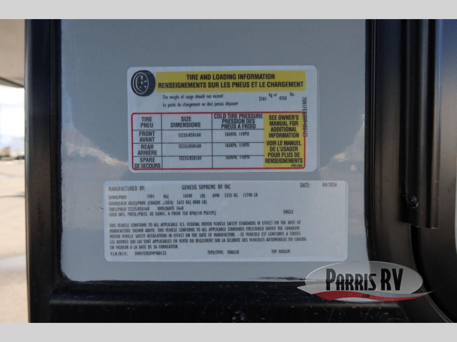 Genesis Supreme Rage'n fifth wheel toy hauler 3016RIKS highlights: