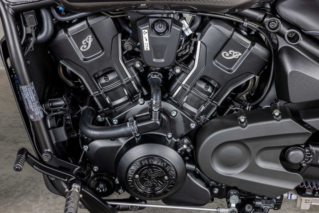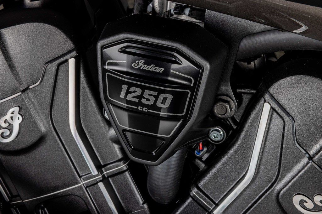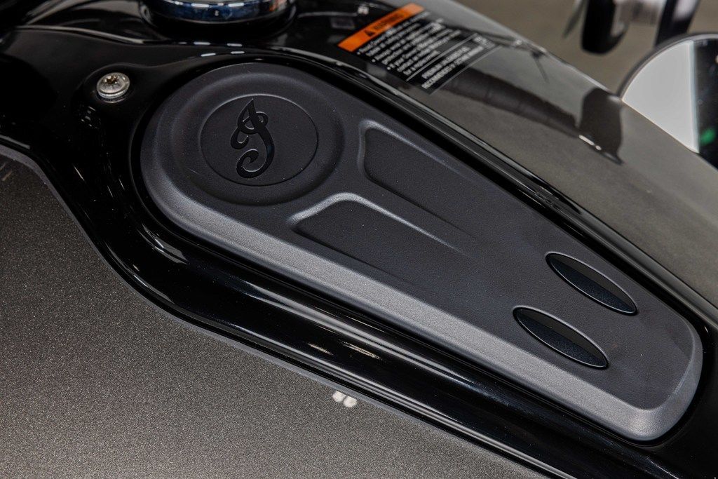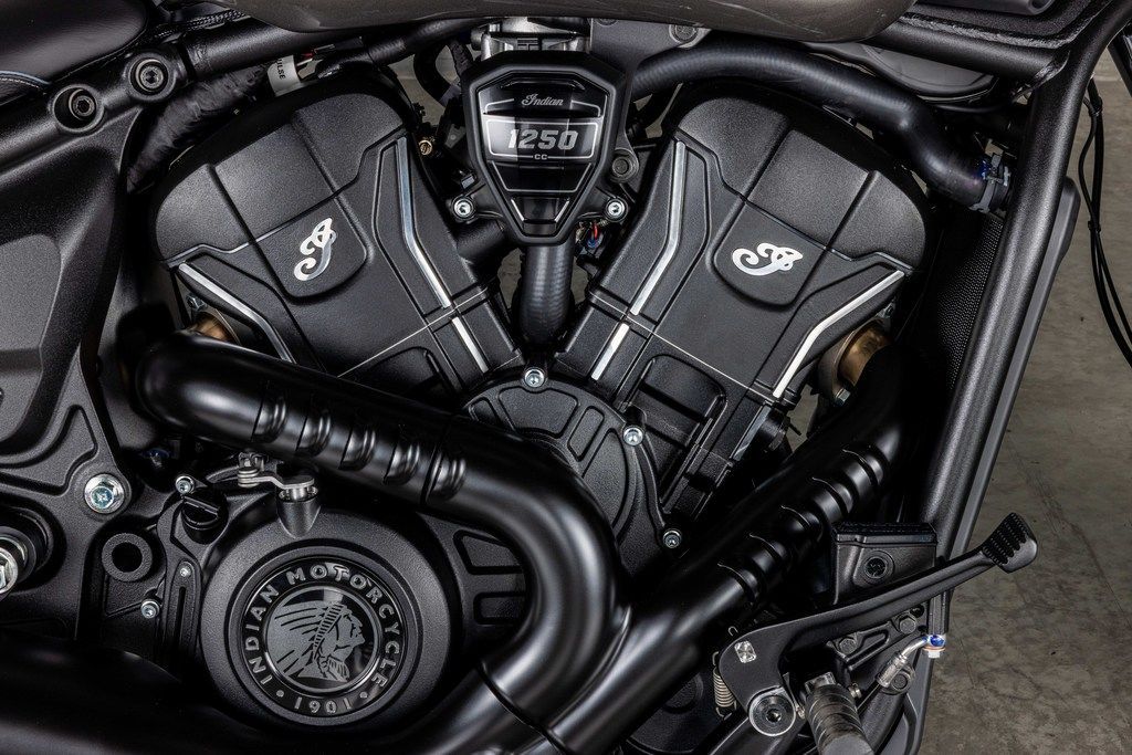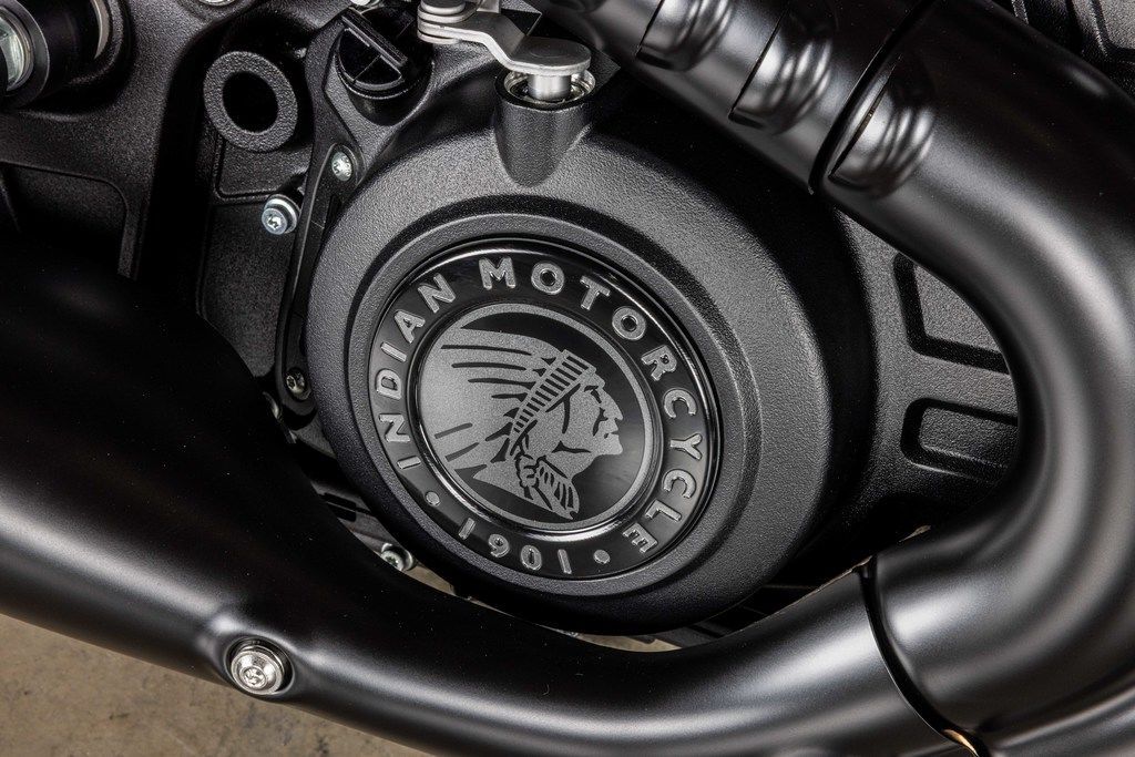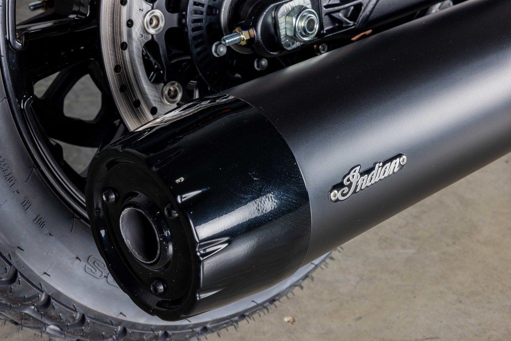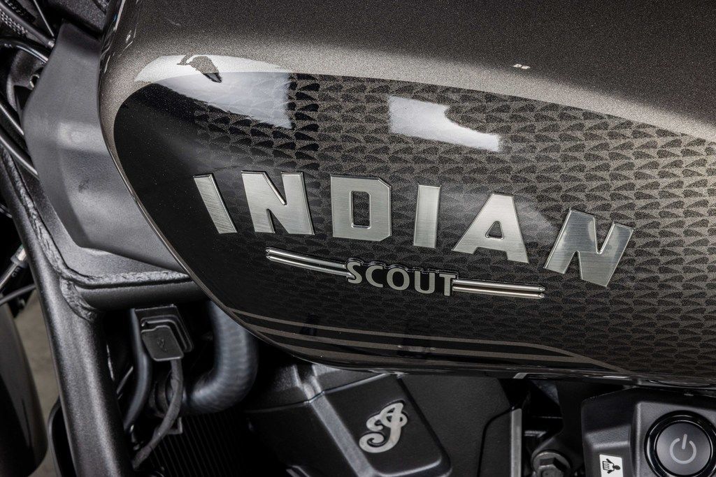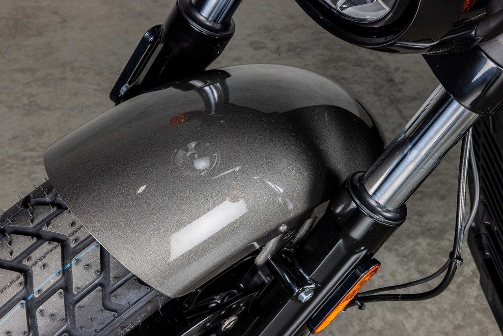 The contour lines on the rear fender seamlessly connect with the modern and dynamic Scout gas tank, creating a unified and premium blacked out aesthetic.
