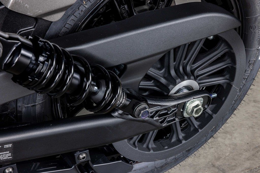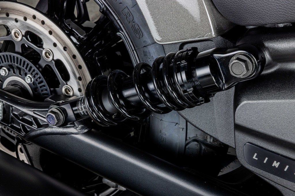 A solo bobber-style seat reinforces a minimalist bobber aesthetic. Slammed 2-inch suspension creates a slightly lower seat height, yet keeps an aggressive, custom look.