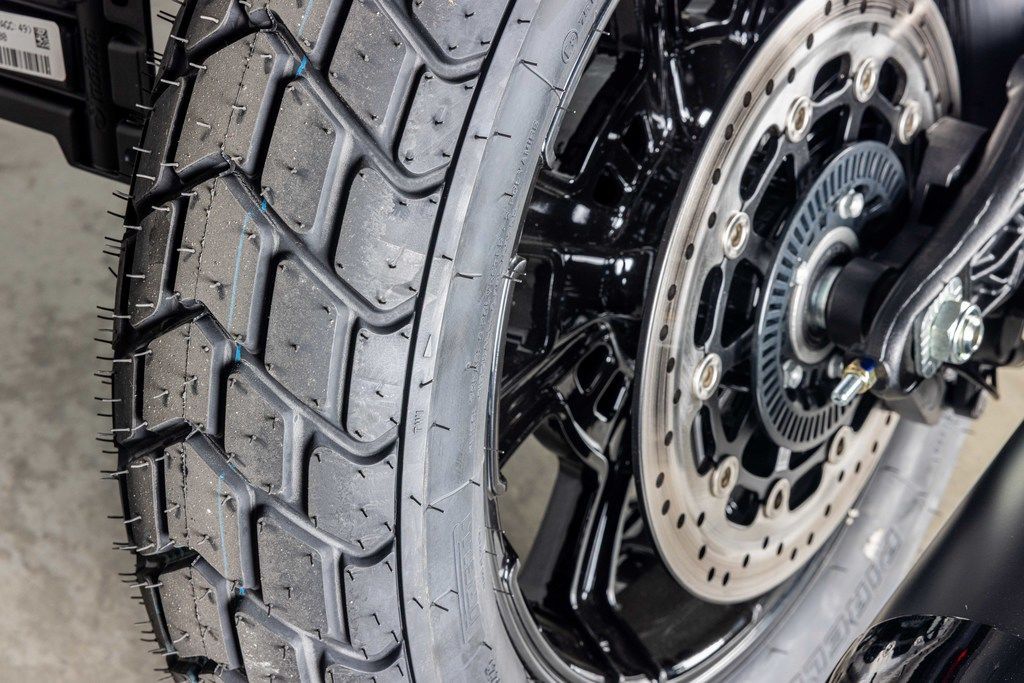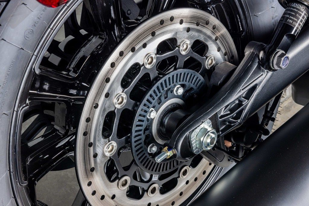 The 16-inch wheels and wide sidewall tires add to the iconic styling of the Scout Bobber, without sacrificing performance, for a smooth ride and distinctive style.