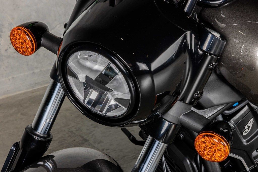 Aggressive bobber design gives an old school look that commands attention. Includes ABS, a 4" Display powered by RIDE COMMAND, Keyless Ignition, Cruise Control, Traction Control, Three Ride Modes, and USB Charger.