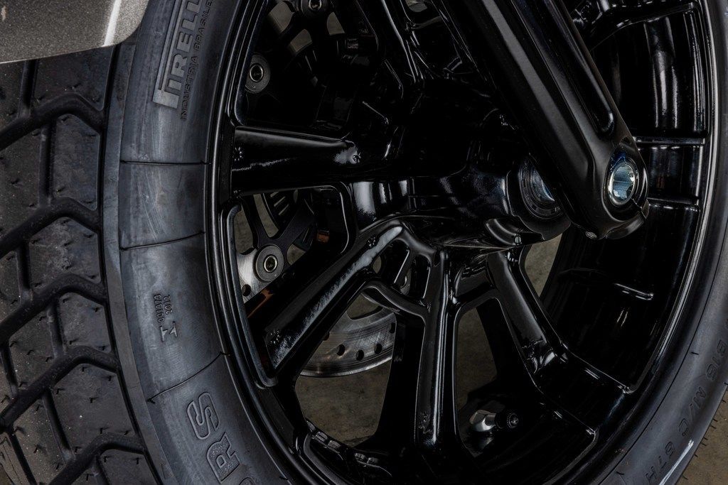 Blacked out front to back with chopped bobber fenders amd Headlight Nacelle, it leans hard into a mean bobber vibe.