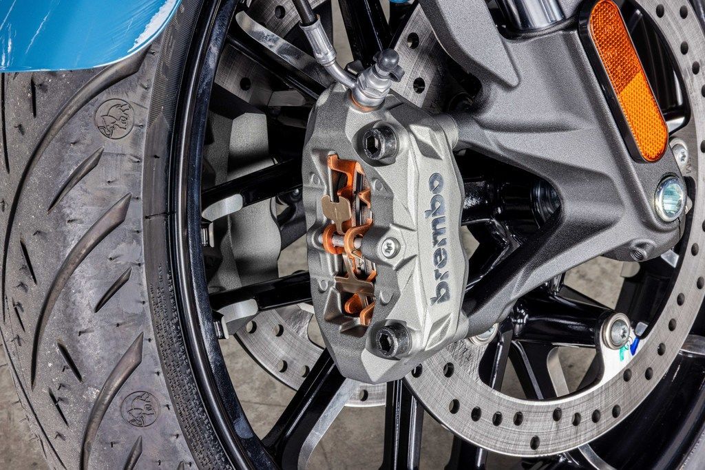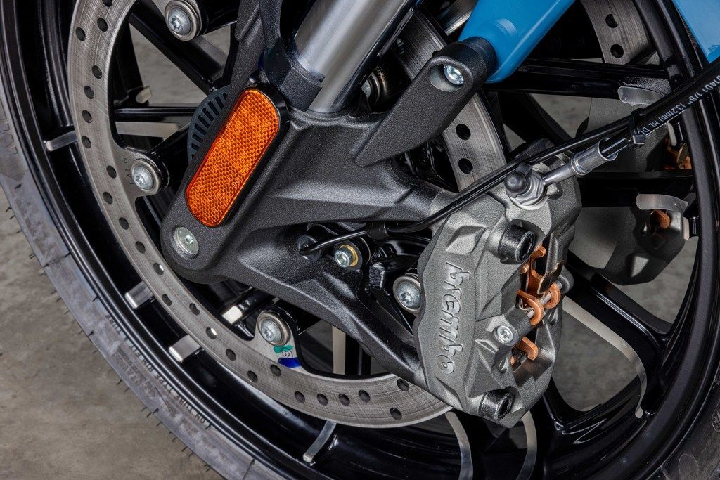 Comes standard with Fox® piggyback rear shocks, 43mm KYB® inverted front forks, and dual Brembo® 4 piston calipers with semi-floating 320mm rotors.
