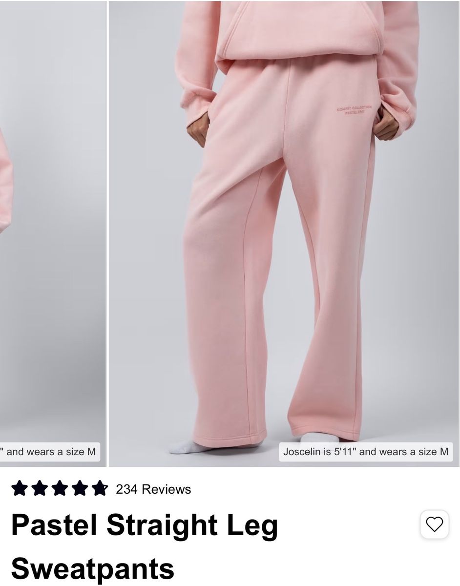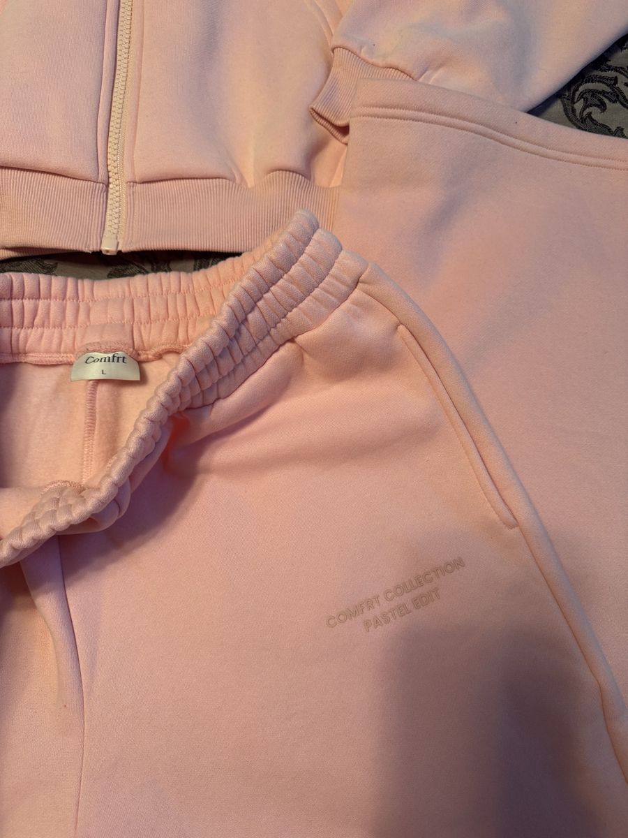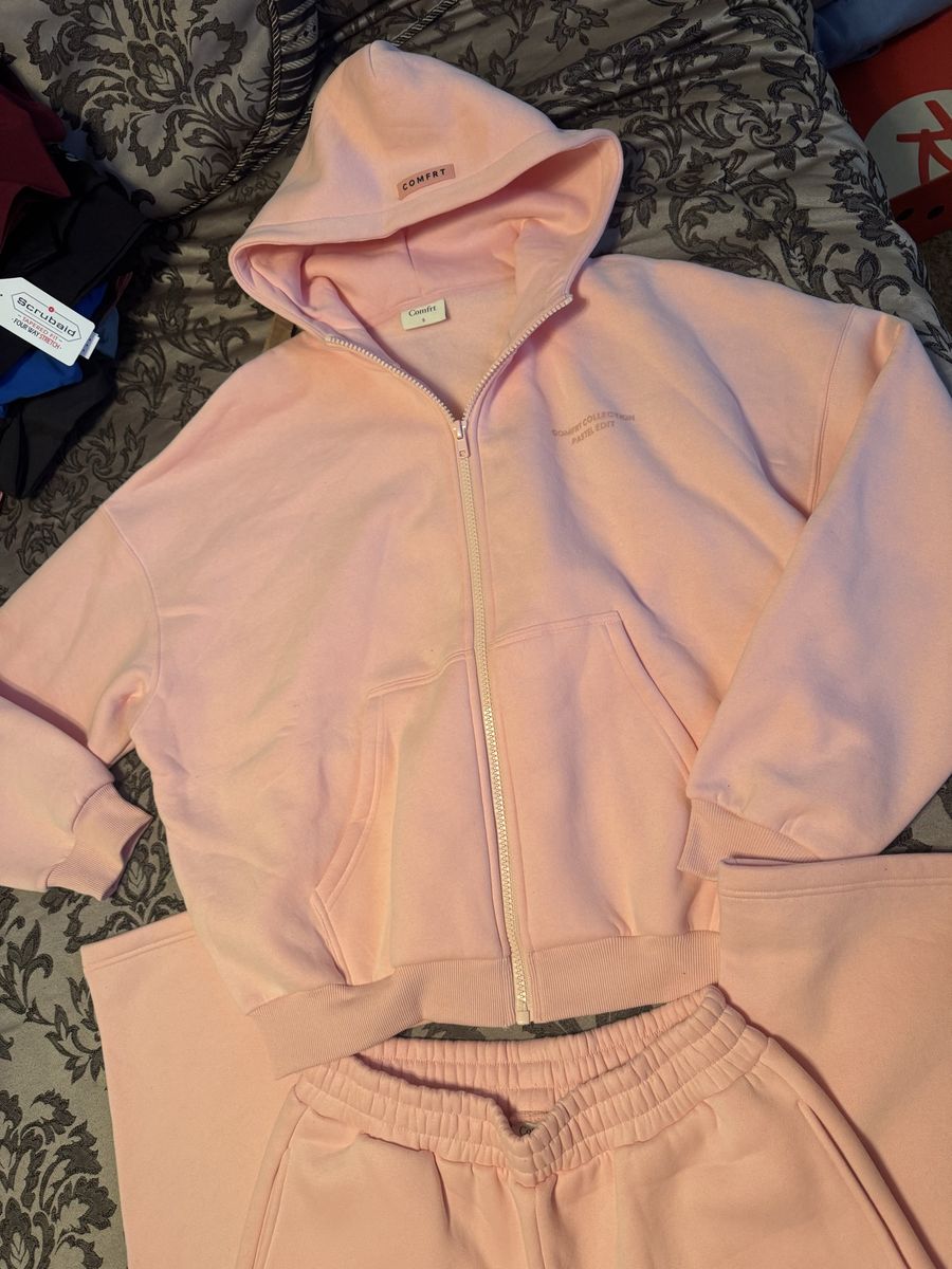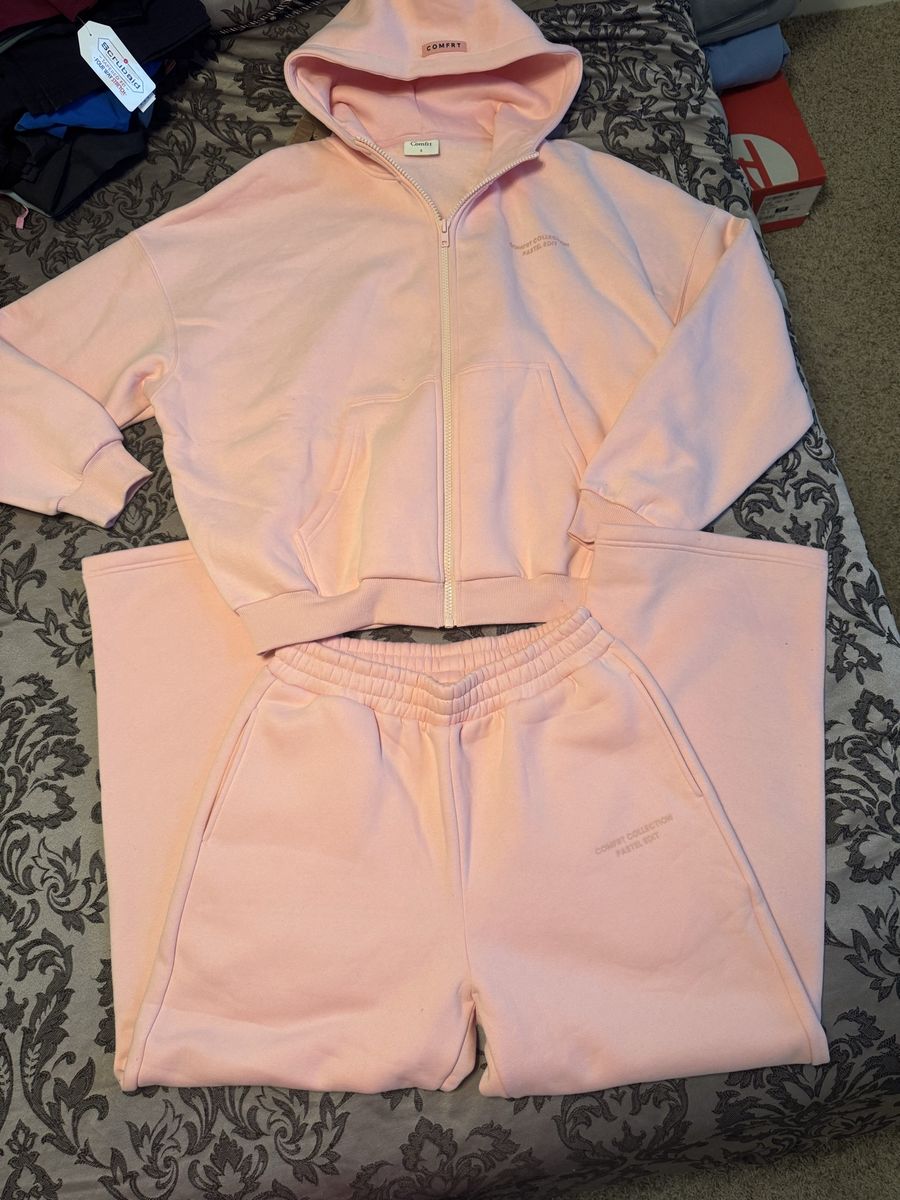 Top size Small (runs big and baggy) zip hoodie Bottom size Large straight leg Color: Limited Edition Pastel Bubblegum