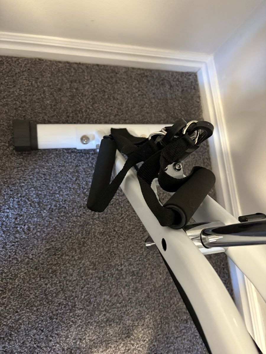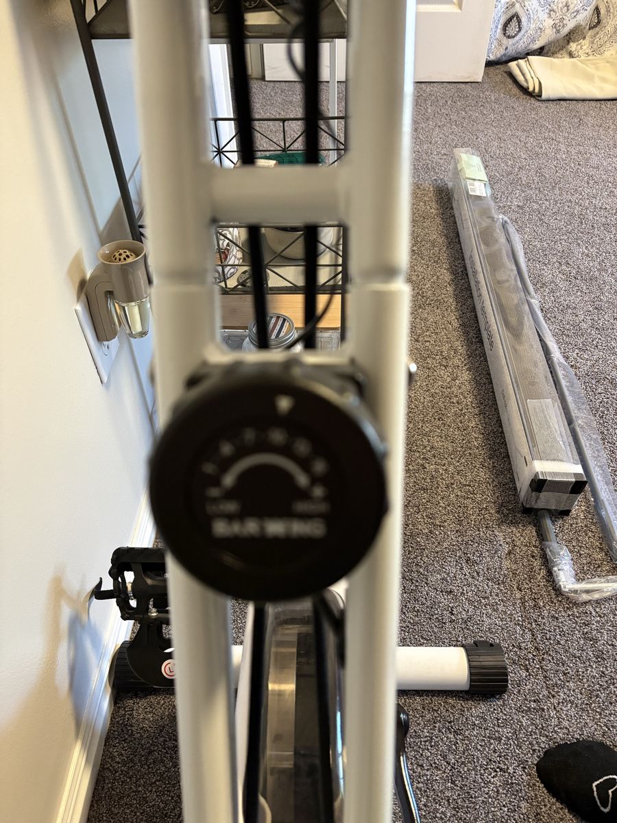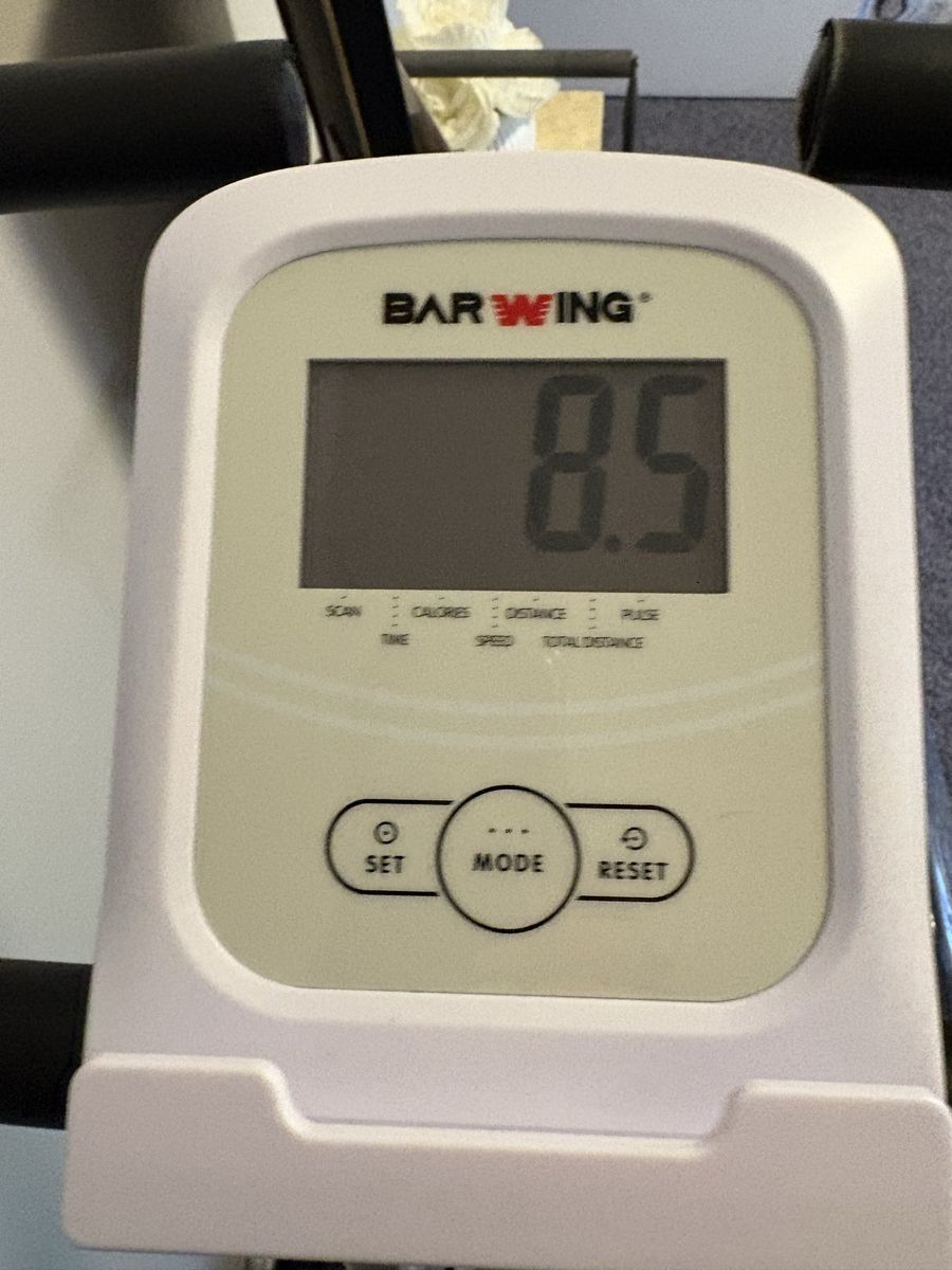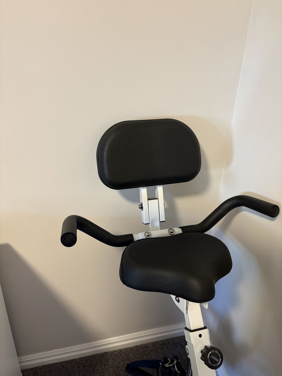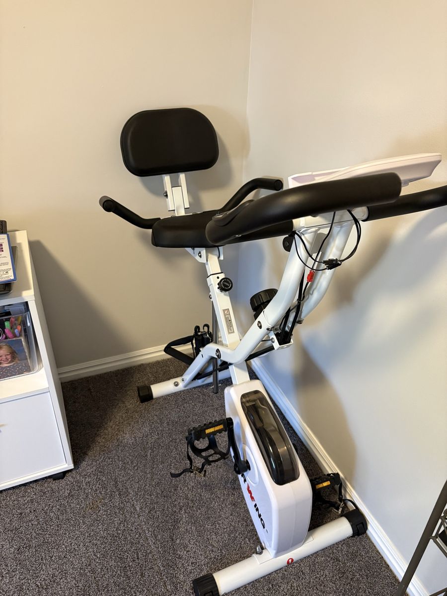 Bar Wing stationary bike. Very comfortable. Tracks calories, distance and pulse. Your time, speed and total distance. Folds for storage.