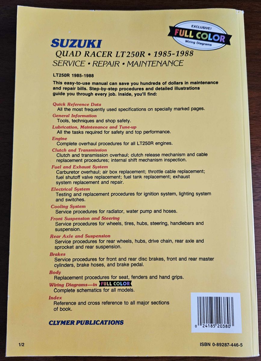 Clymer Suzuki Quad Racer LT250R Service Manual