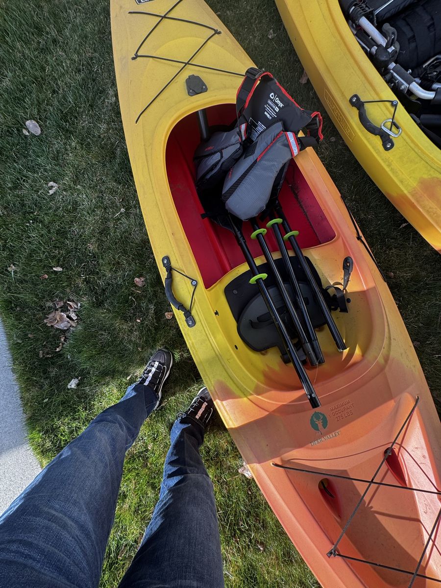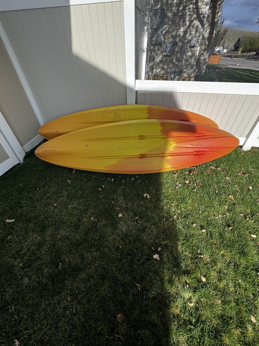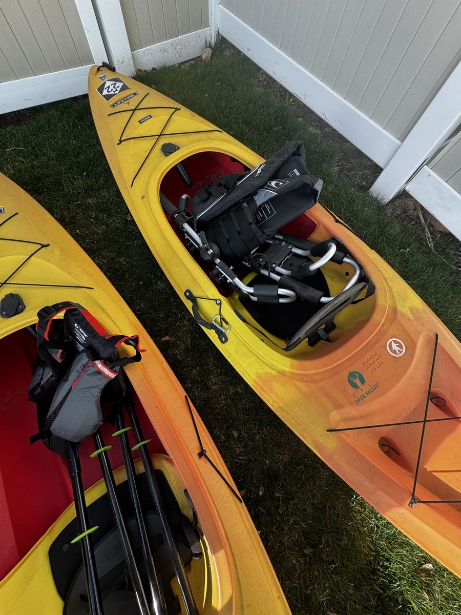 ApplePayUsed only a couple times. Includes 2 8’ kayaks, 2 lifejackets, 2 paddles, and 2-kayak rack.
