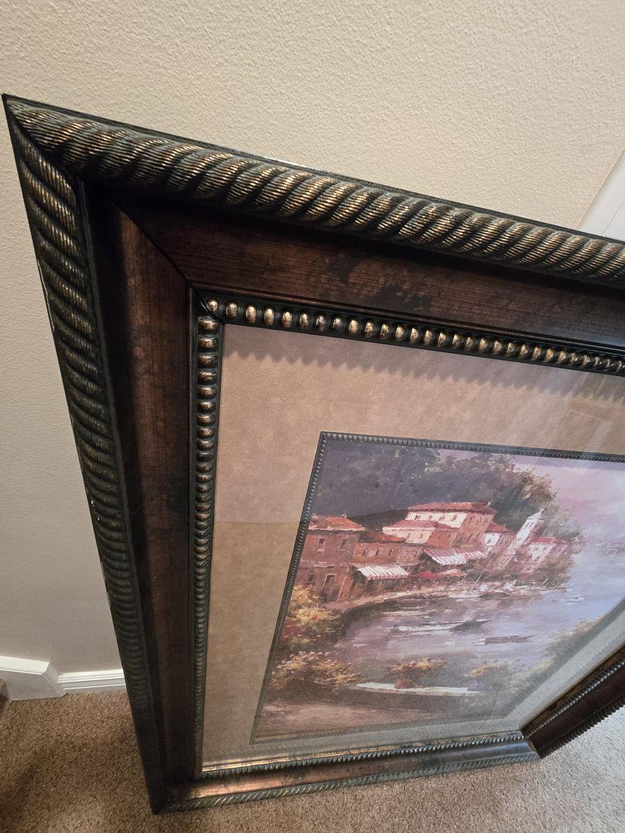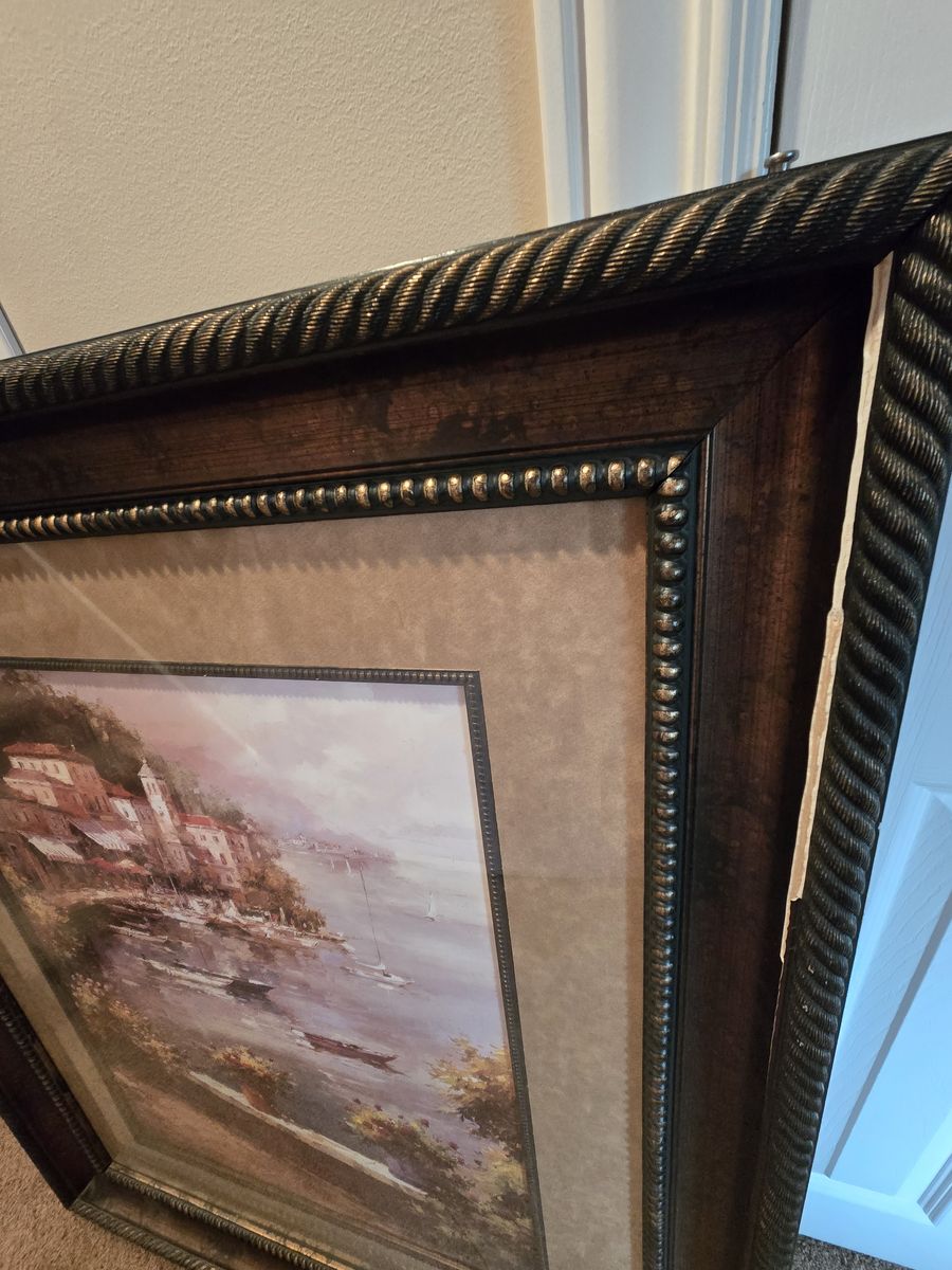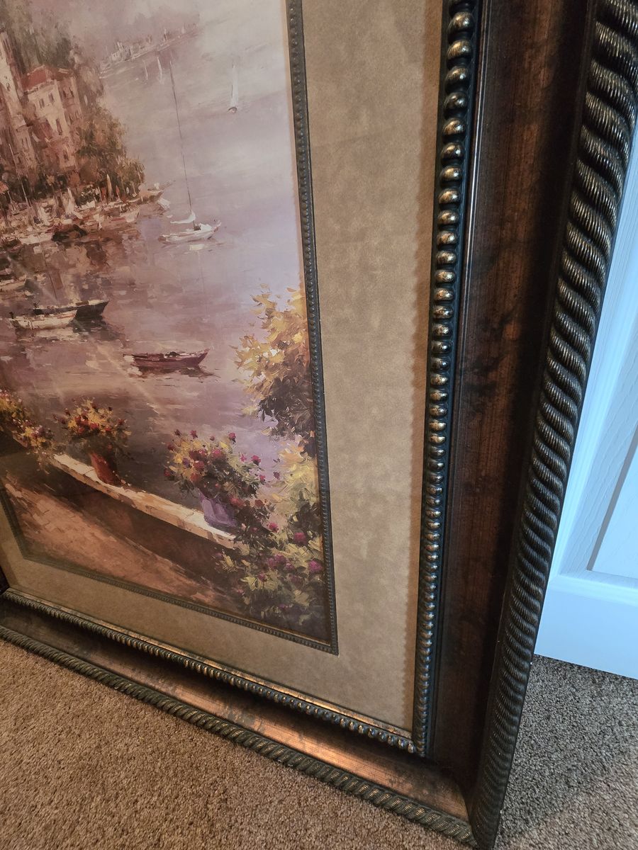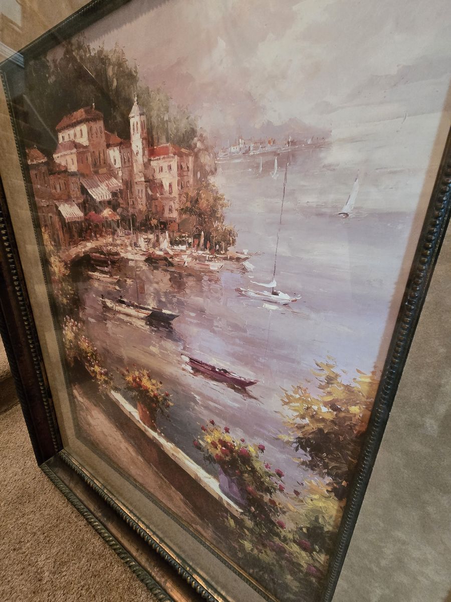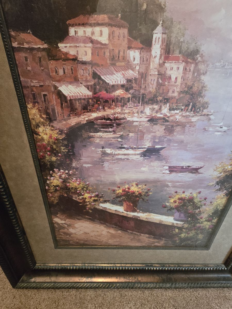 One of Bell's classics, Italian Harbor. Professionally matted and framed with dual hangers on back. The frame measures 42 inches tall and 36 inches wide.