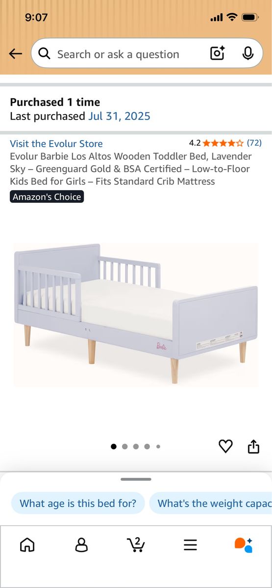 ZelleI purchased this from Amazon about 6 months for my toddler and she will not sleep in the bed. The bed and mattress are brand new. See attached photos I paid $150 for both items combined. I'm asking for $100 for the set. The mattress is waterproof , the bed is super cute has a Barbie sticker , pick up only salt lake Murray area 801-300-8311