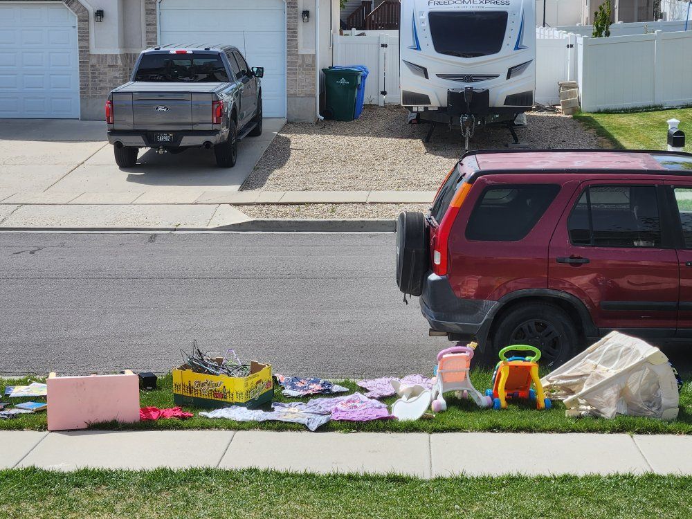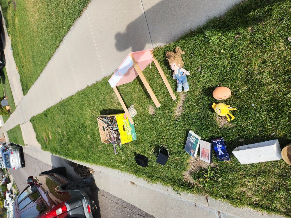 feel free to take anything on the park strip. 5168 w butterfield Peak circle Riverton more is continually being added. speakers, toys, desk(needs new leg), clothes, hangers, etc 5168 w butterfield Peak circle Riverton