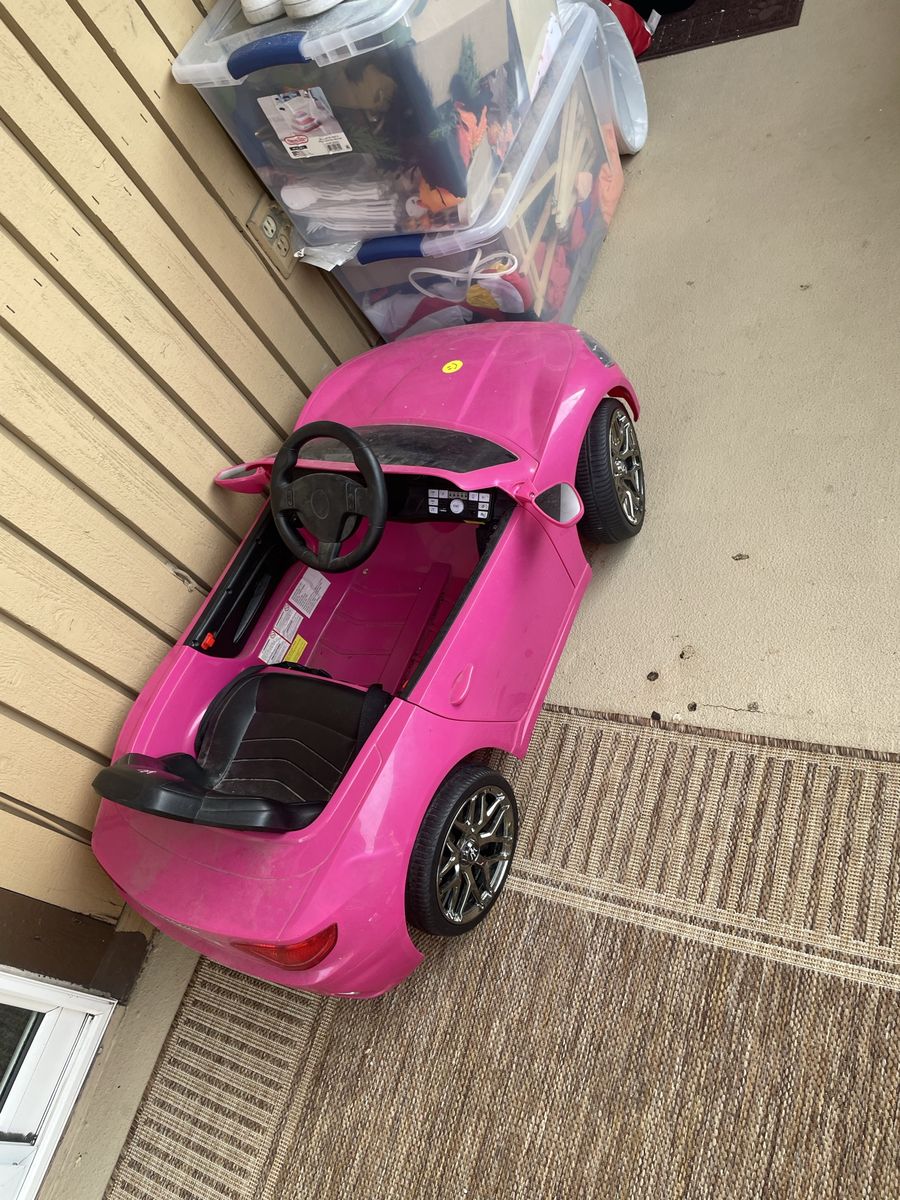 It comes with the charger, remote so the parent can control the car, the lights are kind of broken off due to my daughter running into the wall. She's can't fit the car anymore. It's super cute and clean. Purchased it last summer from Amazon for $150 asking for $50 8013008311