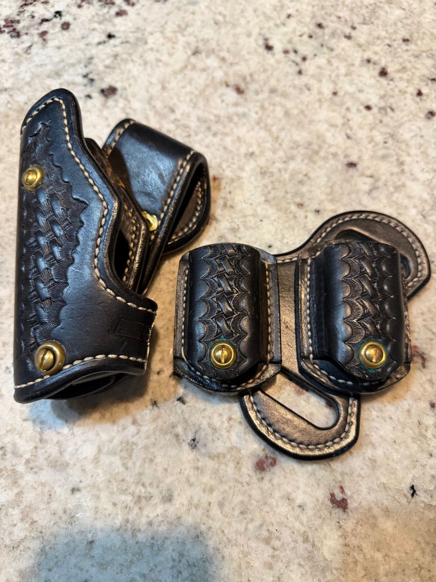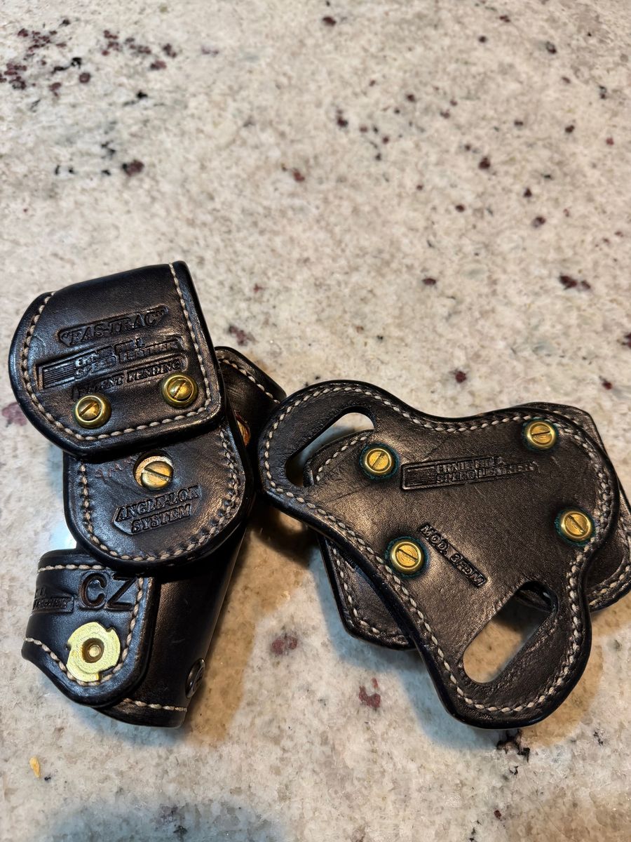 ZelleErnie Hill Left Hand Speed Leather Holster Black Fas-Trac Angle-Lok System and matching