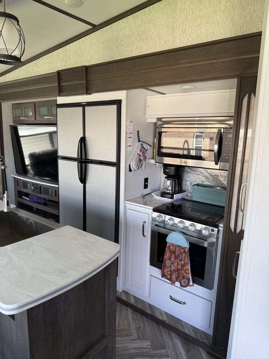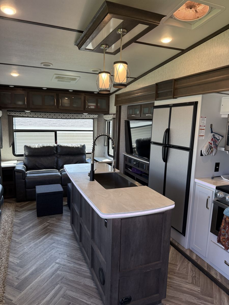 Fifth Wheel Details: •2020 Aerolite Astoria 3553 MBP • Modern, clean, and well maintained •Large living area with comfortable seating •Fully equipped kitchen with ample storage •Private bedroom and additional bunkhouse MBP floor plan •Full size bathroom with two sinks and shower •Perfect for family trips, extended stays, or full-time RV living