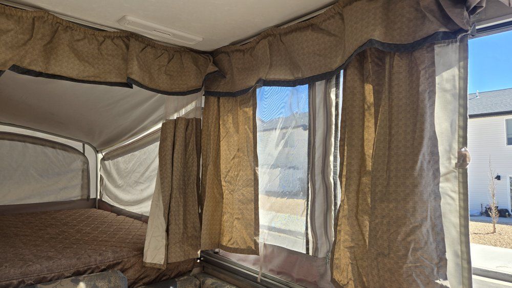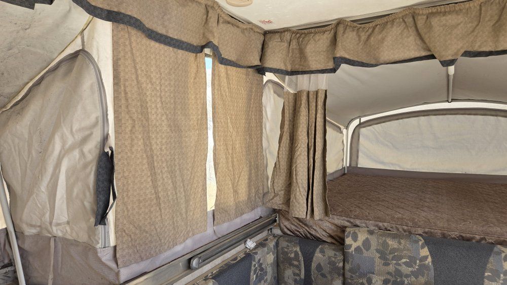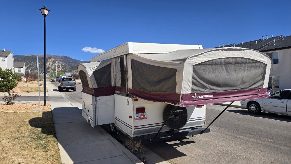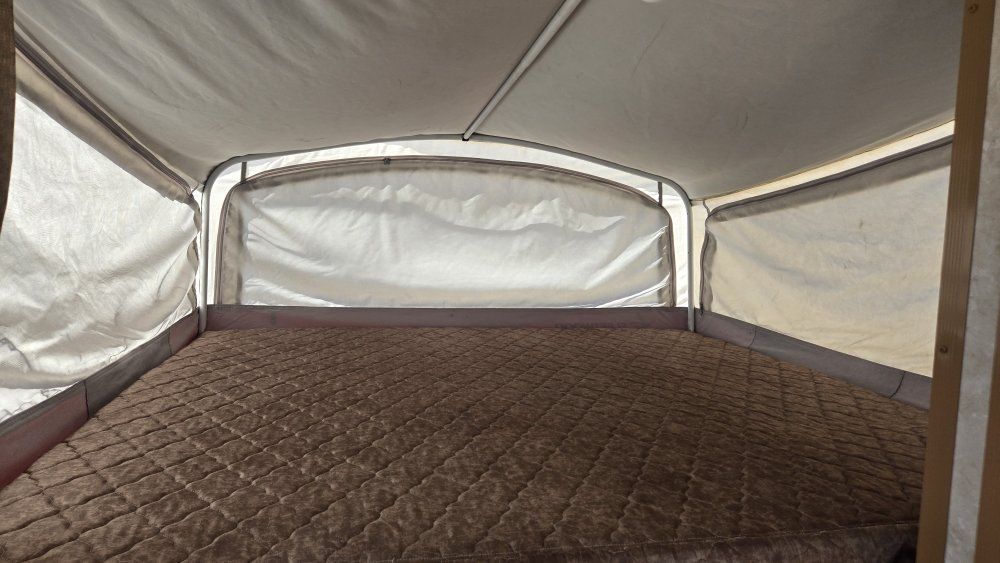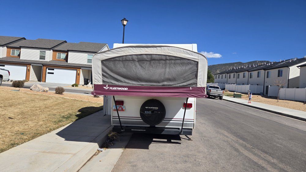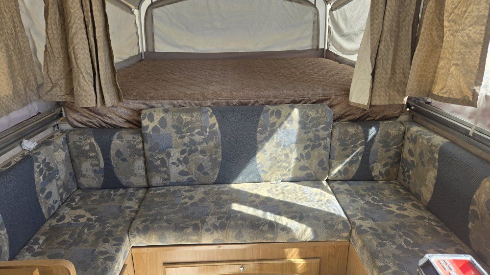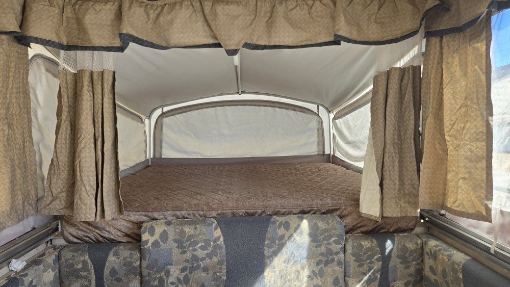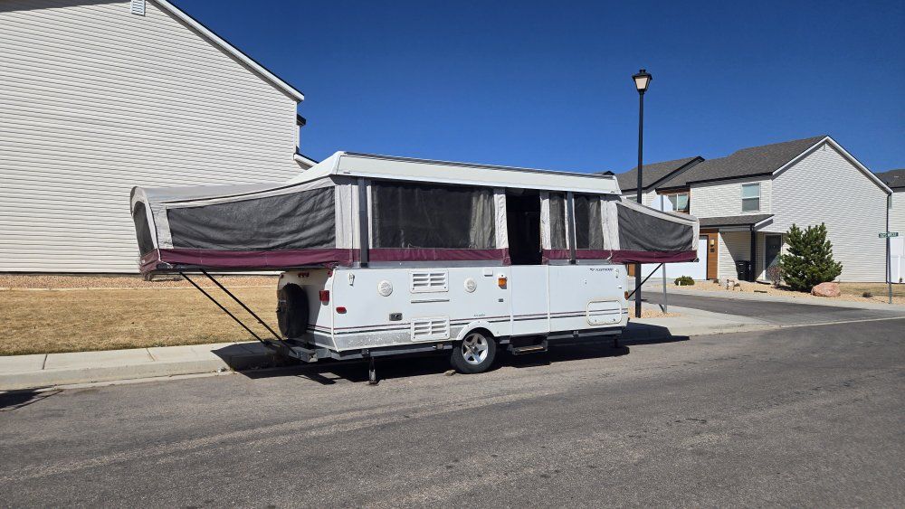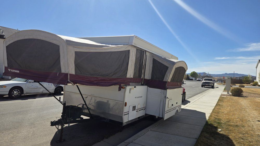 CashAppWe are open to reasonable offers. This camper in great condition. We just don't use it anymore. heater, fridge, water heater, shower, toilet, sink, oven and stove all work! 1 king sized bed, and 1 queen sized bed, table folds down into a bed, and the couch folds down into a bed.Dinete pulls out, lots of storage. It has electric trailer brakes and it tows very smooth. Can be towed with a mid sized SUV. clean title, great tires, no leaks, no mold, canvas is in great condition. call or text for any additional information.