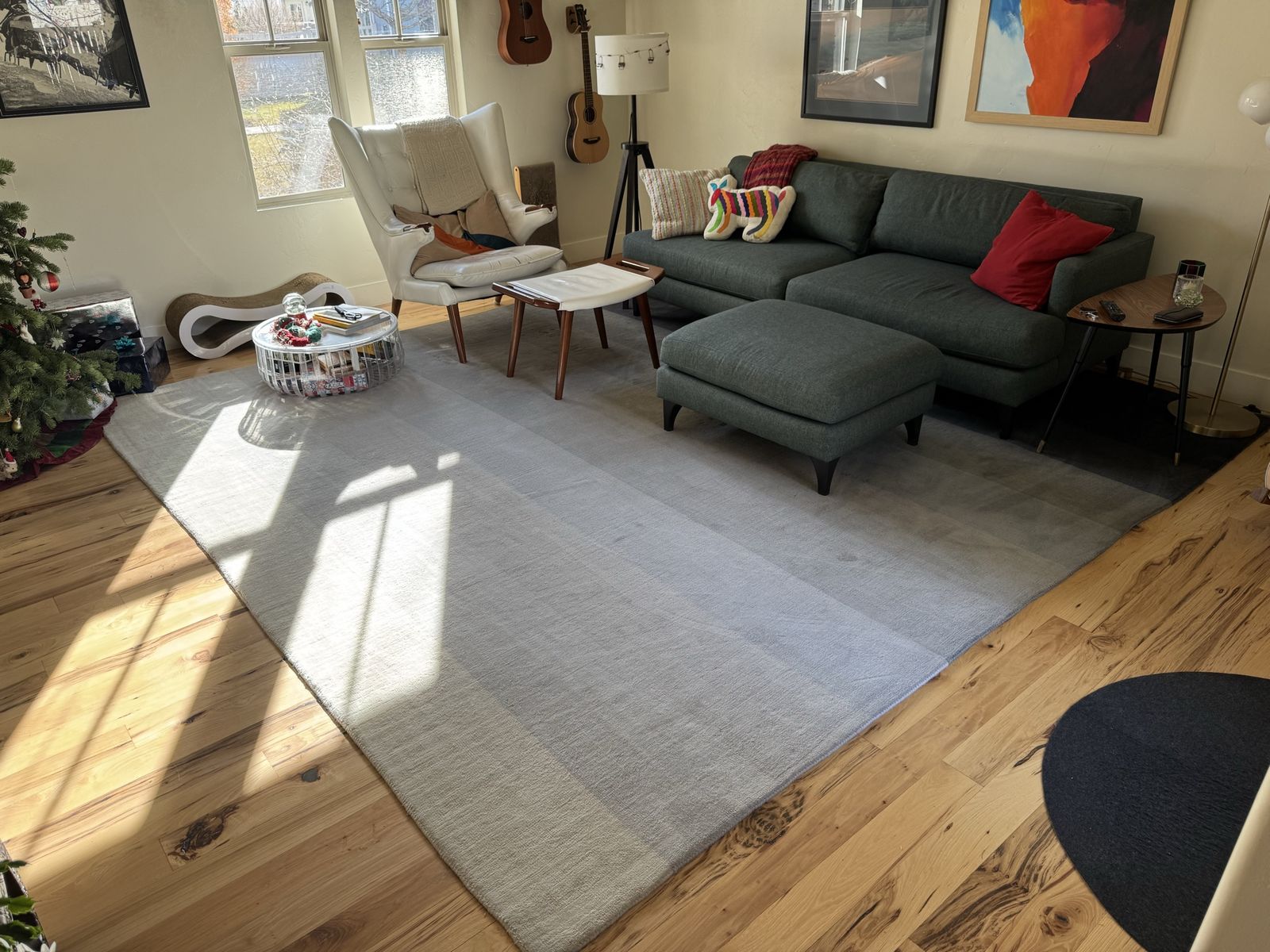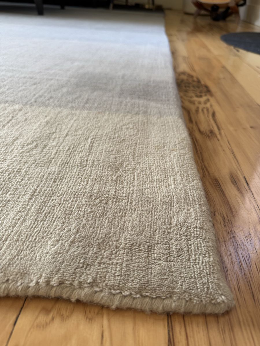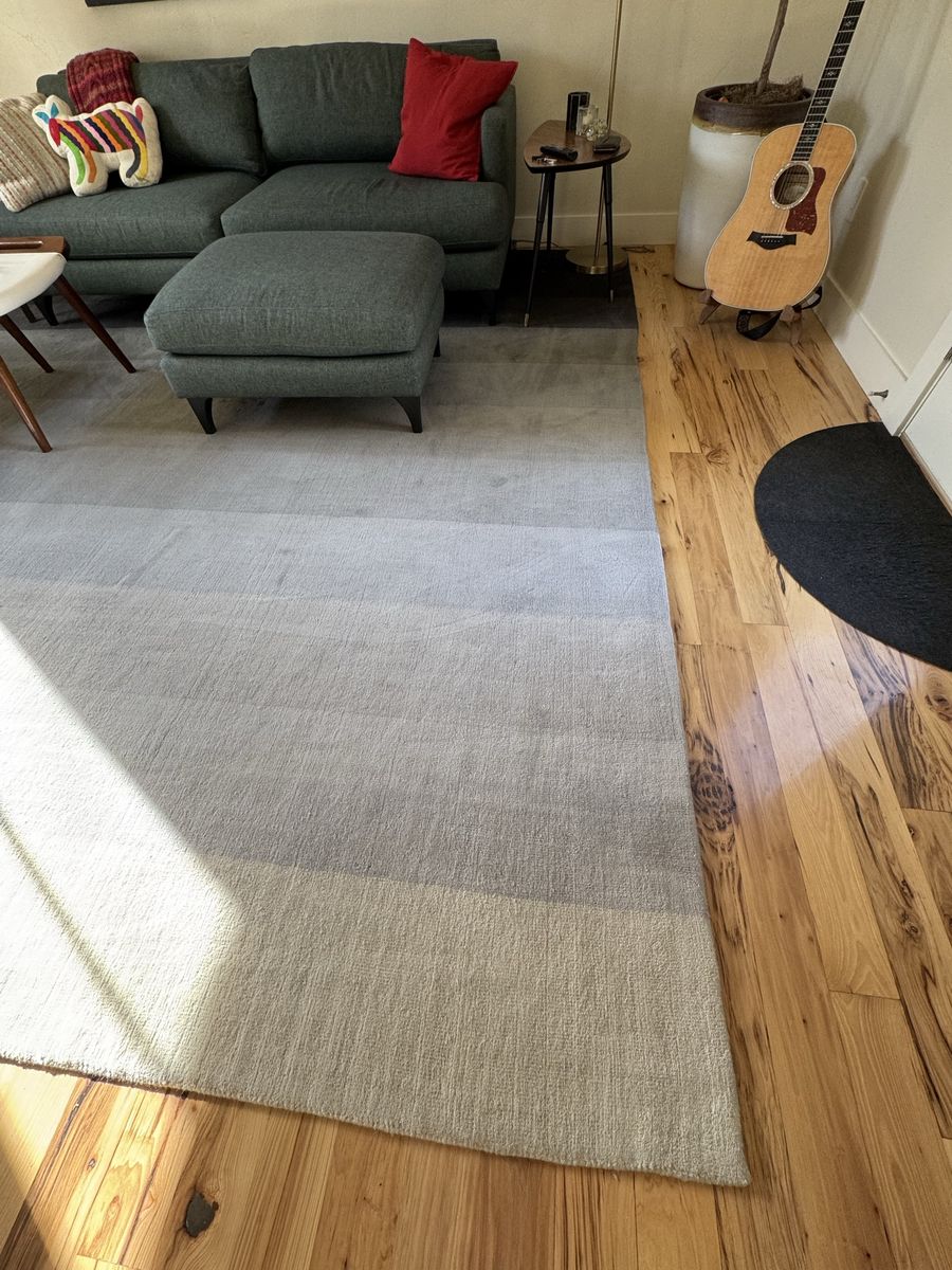 CashApp11 ft by 11 ft 100% wool pile rug with corresponding rug pad. Beautiful and modern hombre color pattern.