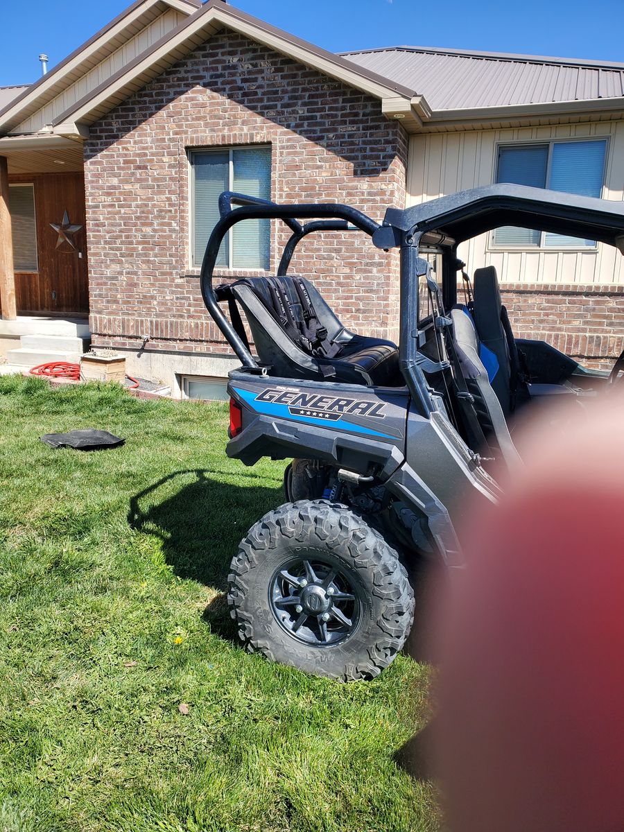 Rear seat for a polaris general. Harness' and all hardware included as well as a canvas top and screen sides. $200 obo