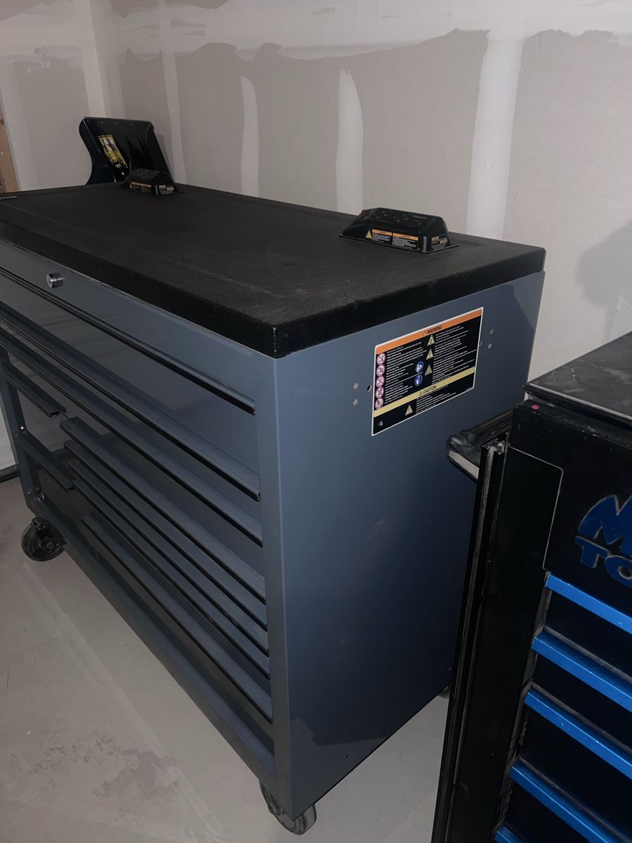 Selling my Snap-on 55” Roll Cab Tool Box with Bedliner PowerTop Specs: • Model: KCP1422 Roll Cab • Size: 55” W x 43” H x 24” D • Top: Snap-on KWSP2455ABL Powered Work Surface