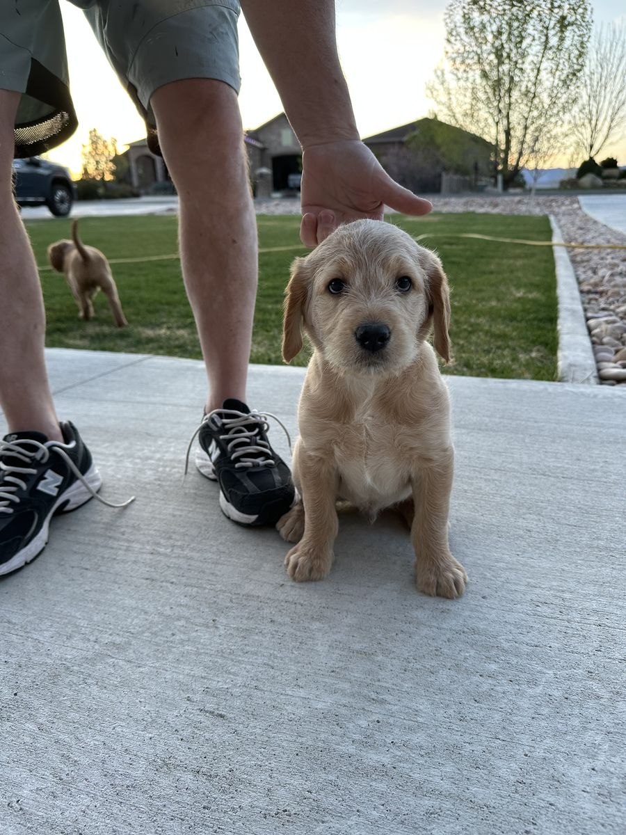 We have two Irish labradoodle puppies that we are selling. They are just over 8 weeks old and have received their first shots and had their dew claws removed.