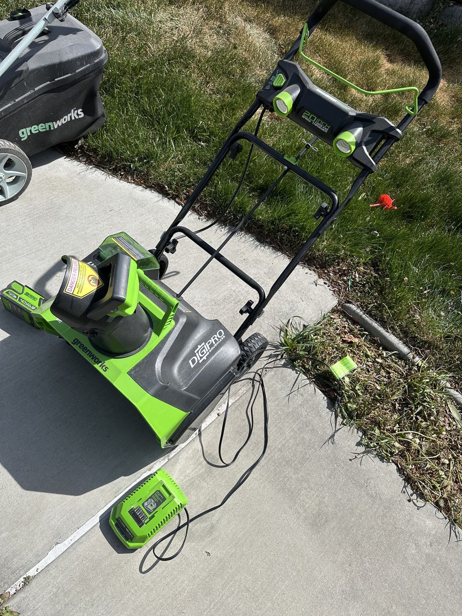 Greenworks DigiPro 40V 20-inch cordless snow blower for sale. Includes Greenworks battery and charger so it is ready to use.